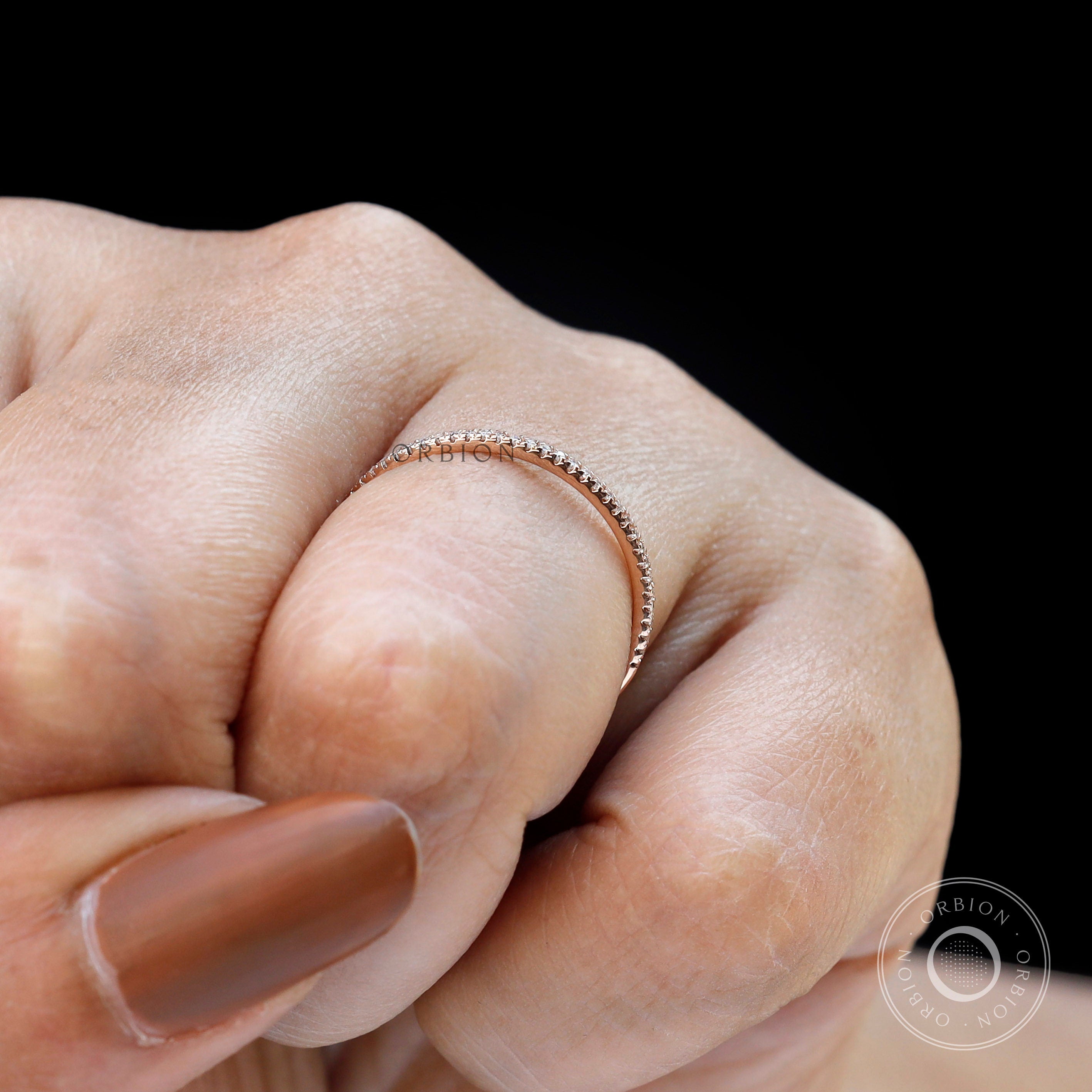 0.8 MM Micro Pave Half Eternity Wedding Band, 14K Rose Gold Moissanite Diamond Band, Classic Stacking Matching Band, Delicate Thin Gold Band