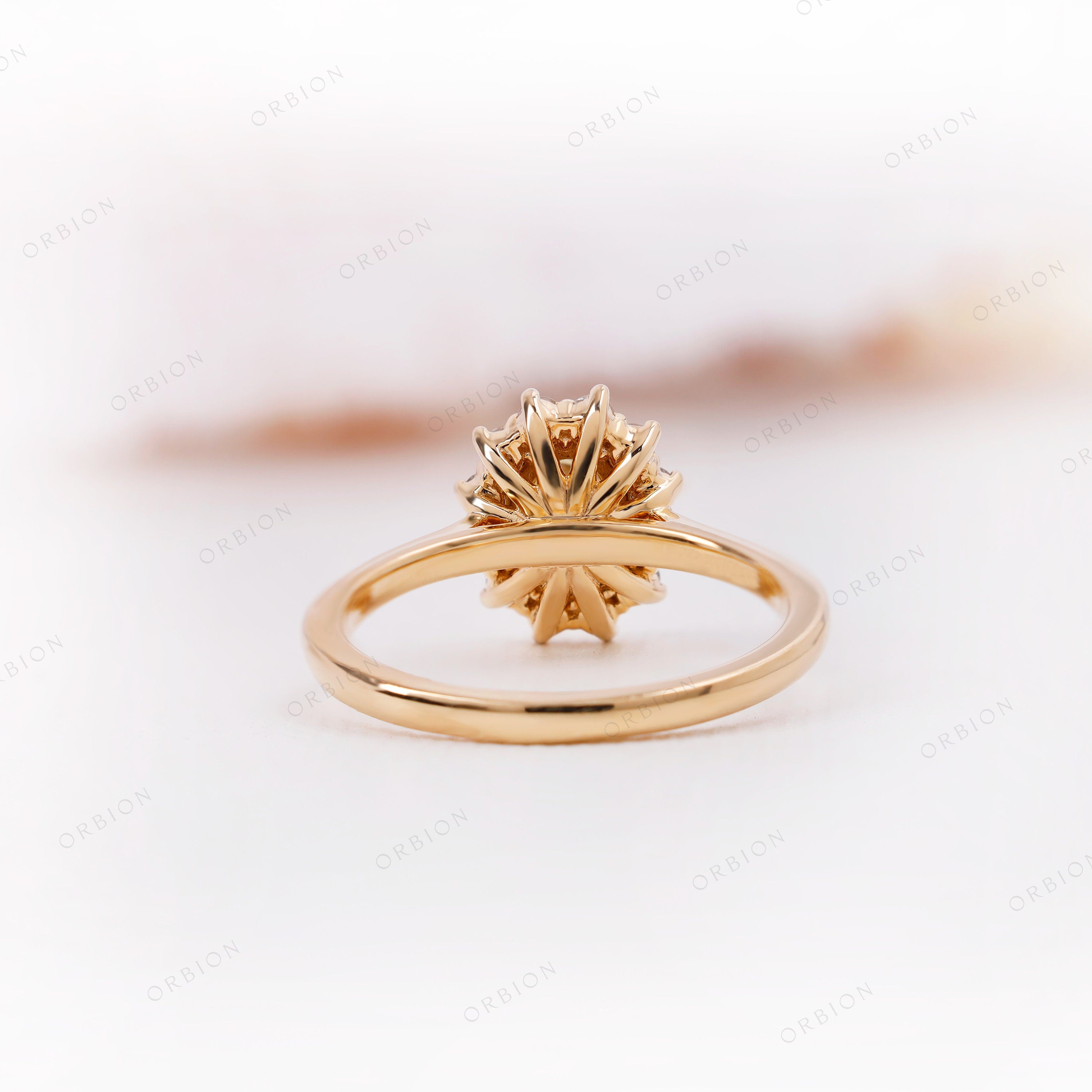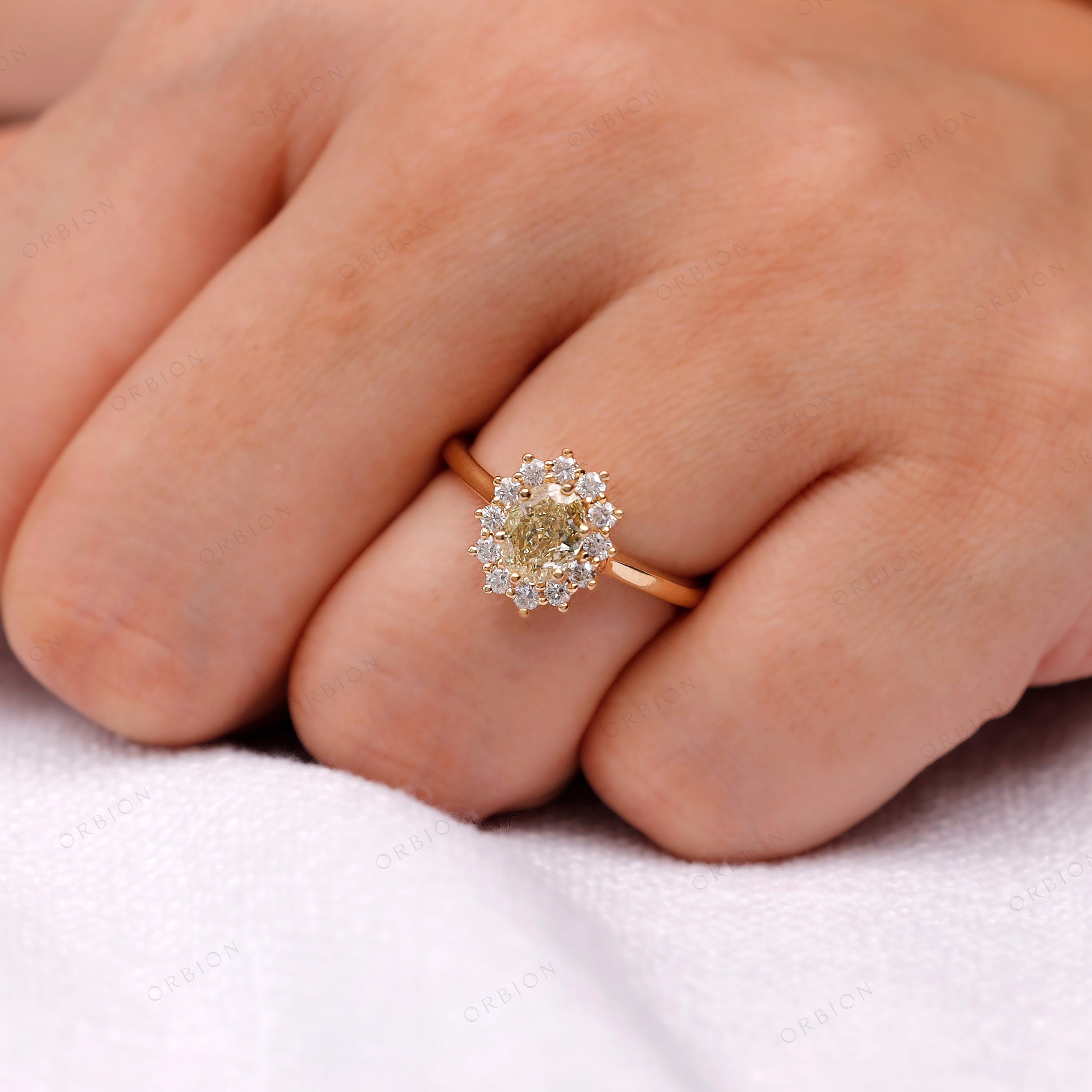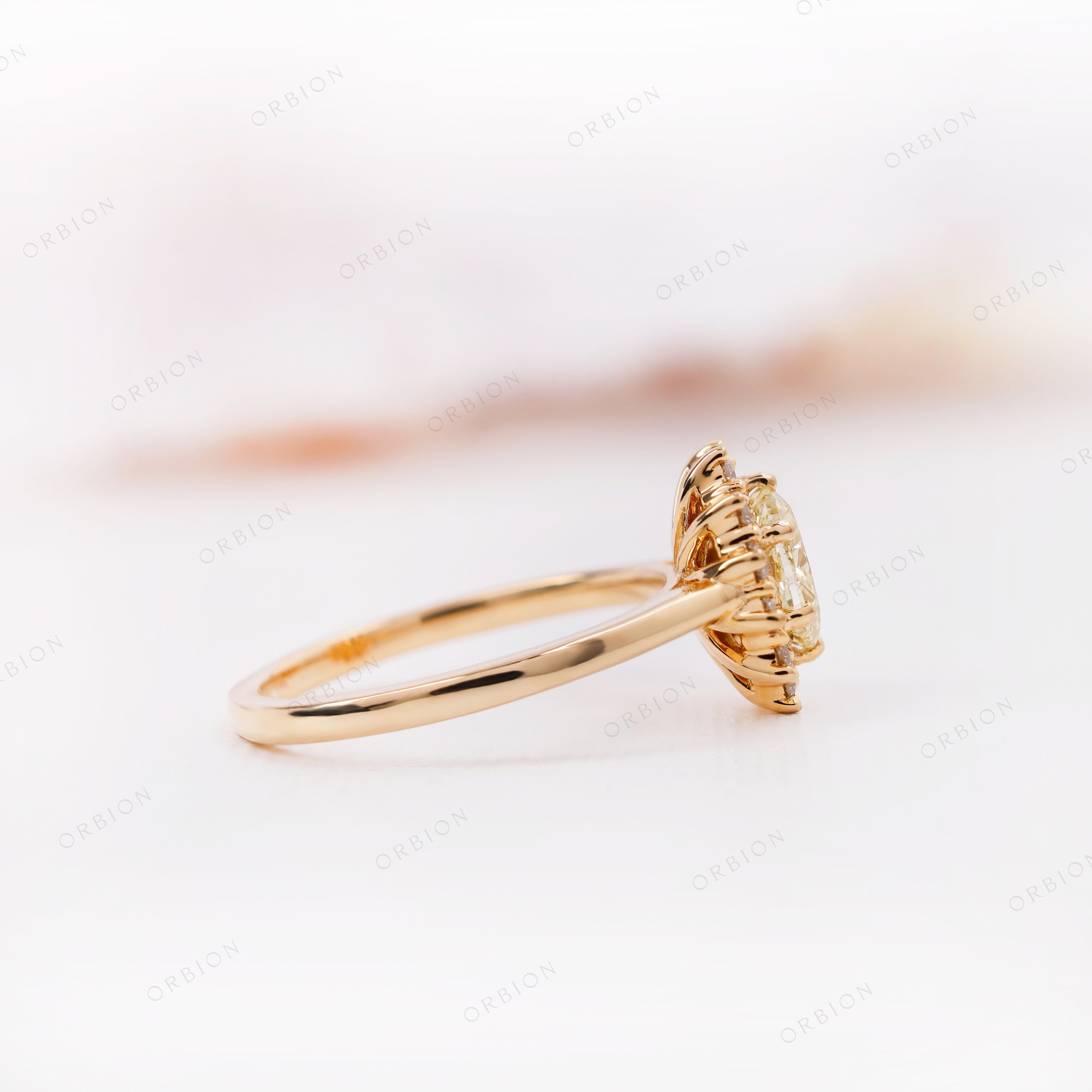 0.90CT Fancy Yellow Oval Cut Natural Colour Diamond Engagement Ring, Starburst Halo Diamond Ring, 14K Mirror Finished Yellow Gold Ring