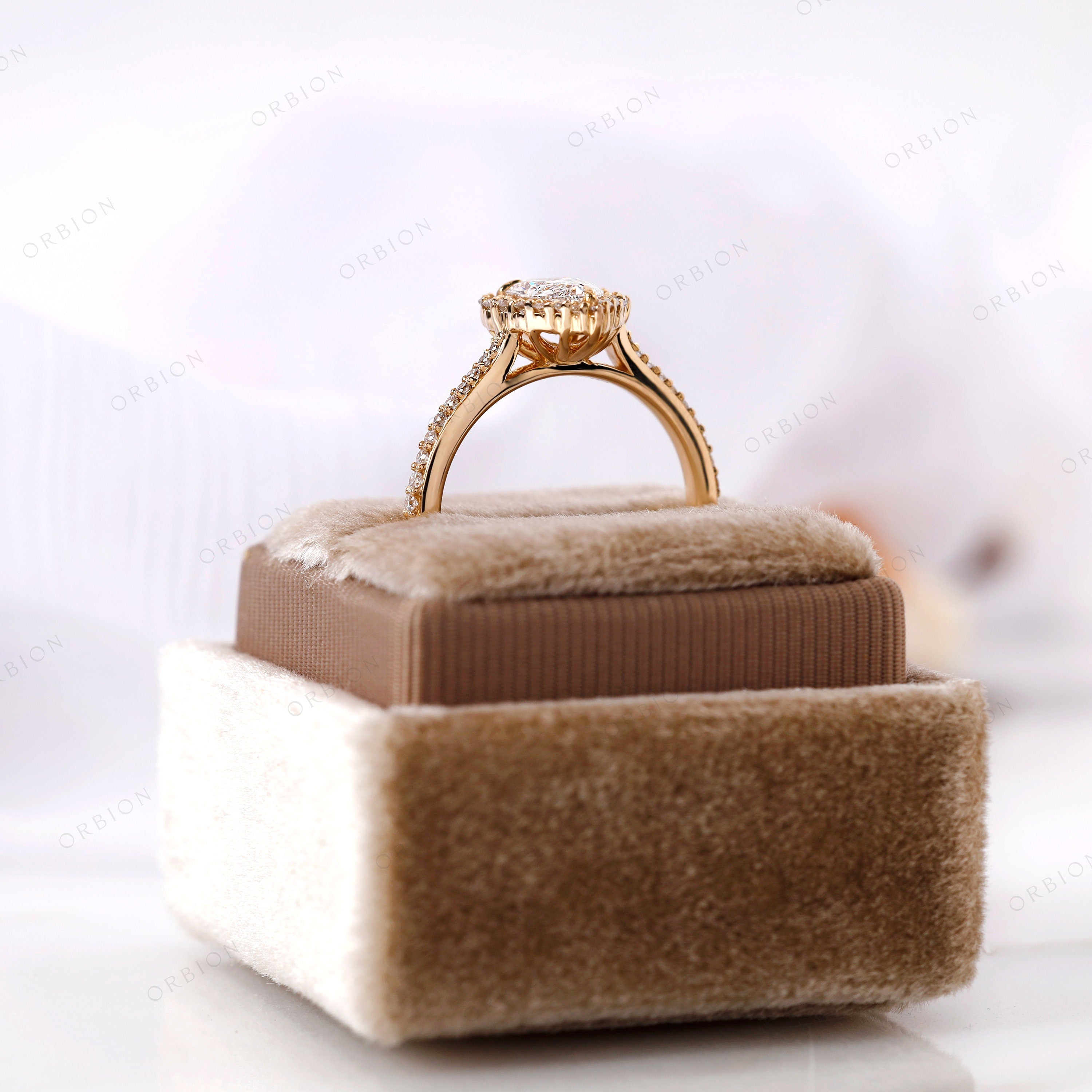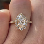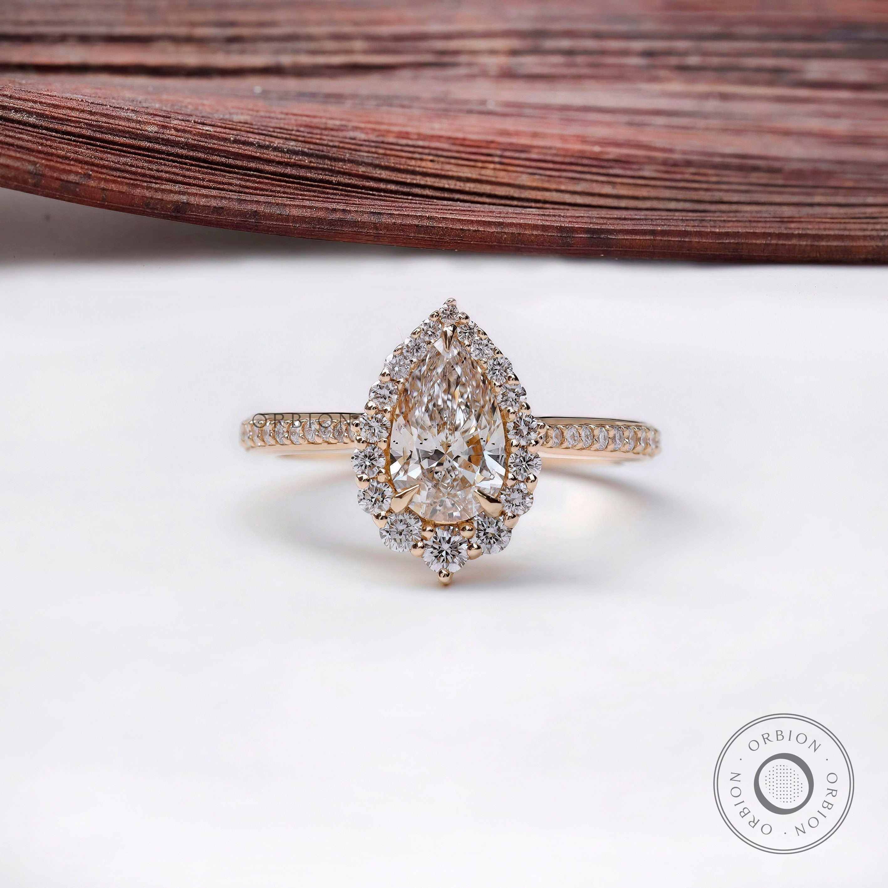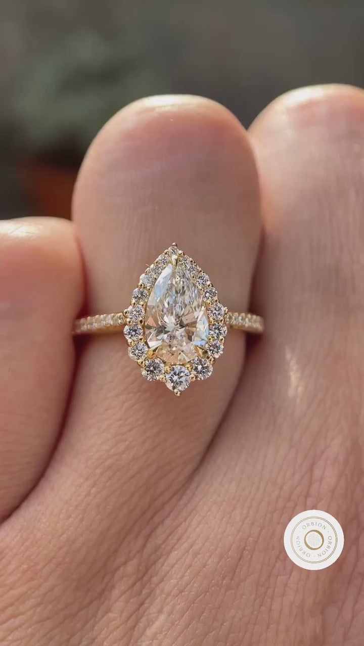 1.0 CT Pear Shaped Lab Grown Diamond Halo Engagement Ring, Unique 14K Solid Gold Vintage Style Ring, Antique Pear Diamond Ring