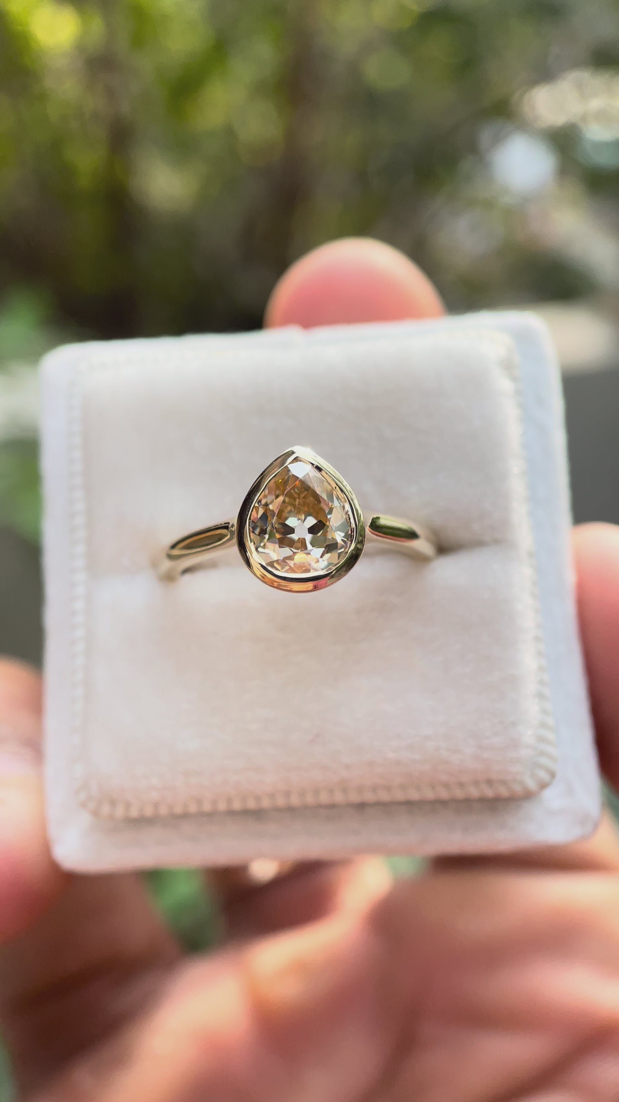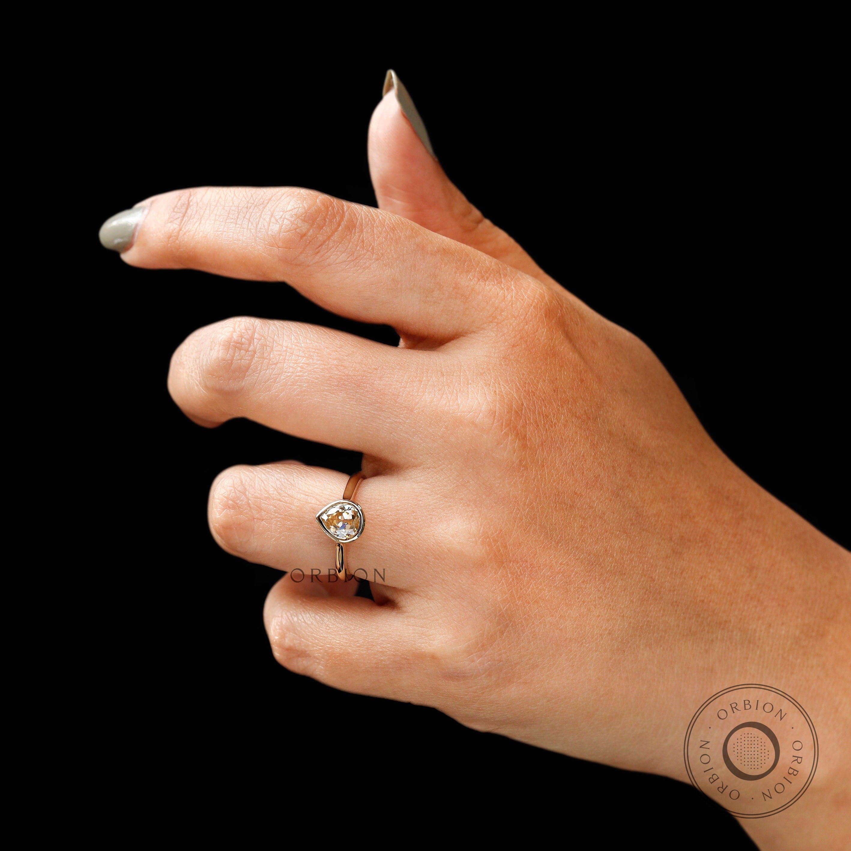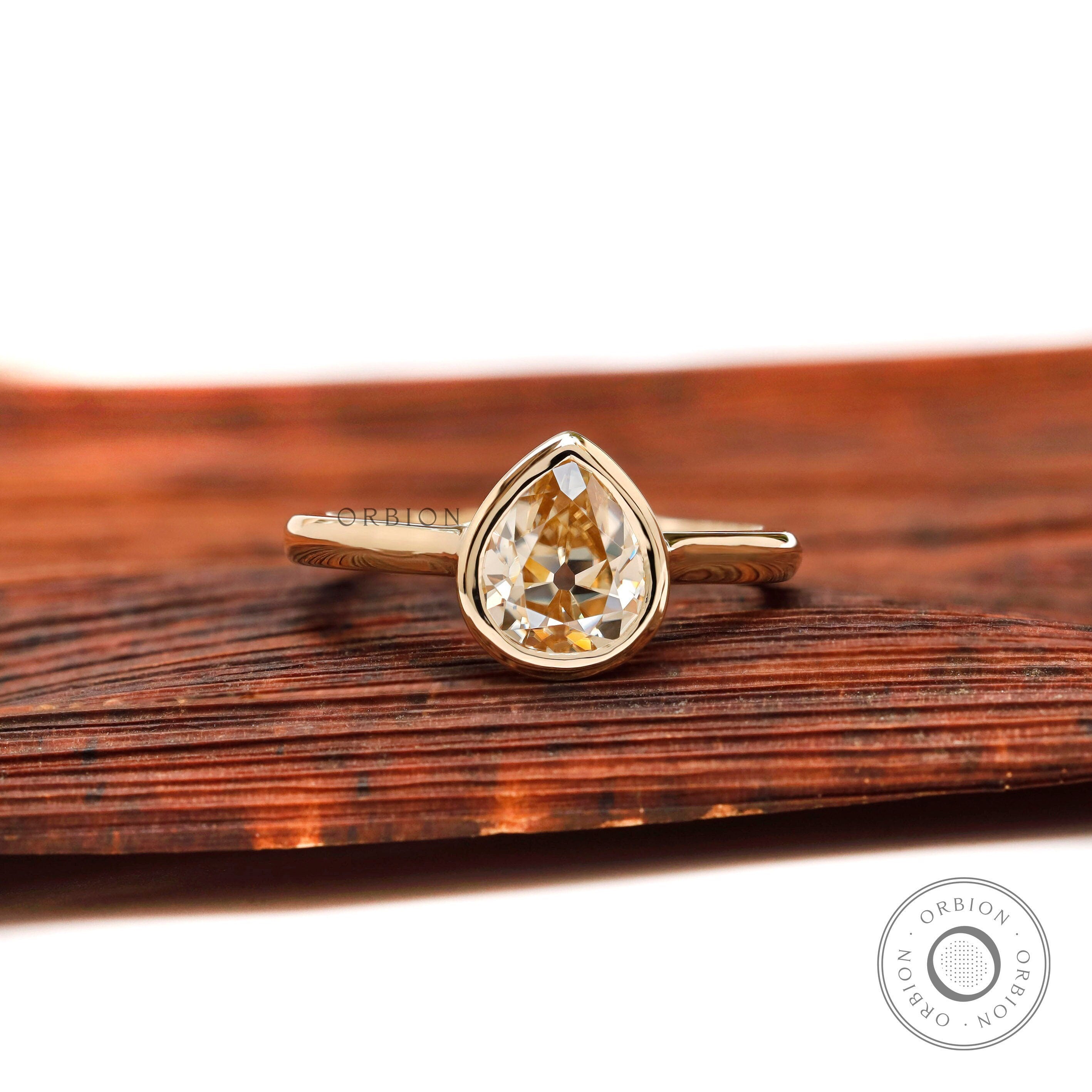 1 CT Old Mine Cut Pear Champagne Moissanite Ring, Bezel Set Ring, Antique Champagne Ring, Teardrop Ring, Minimalist Ring, Color Stone Rings, Vintage Engagement Ring, 10k/14k/18k Gold Ring, Unique Wedding Ring, Handmade Jewelry, Unique Ring For Her, Antique Style Ring, Anniversary Gift, Proposal Ring, Solid Gold Ring, Solitaire Pear Ring, Low Profile Set Ring