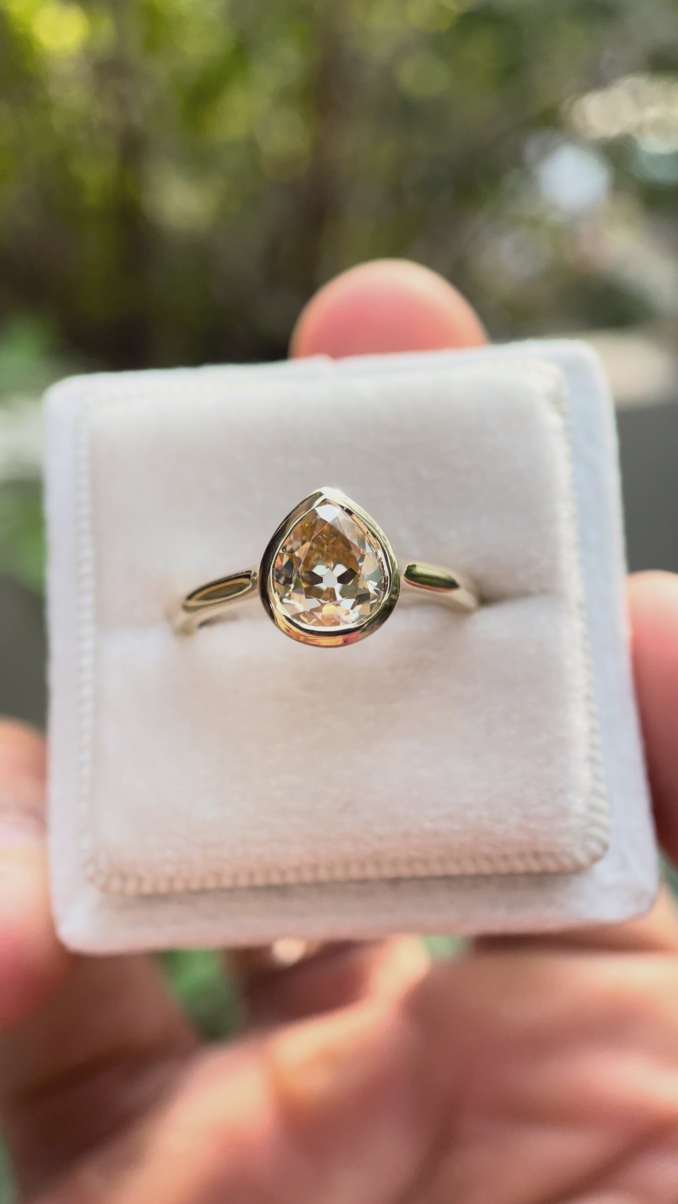 1 Ct Pear Champagne Moissanite Bezel Engagement Ring Old Mine Cut Fat Pear Solitaire Ring Yellow Gold Color Moissanite Ring Dainty Pear Ring