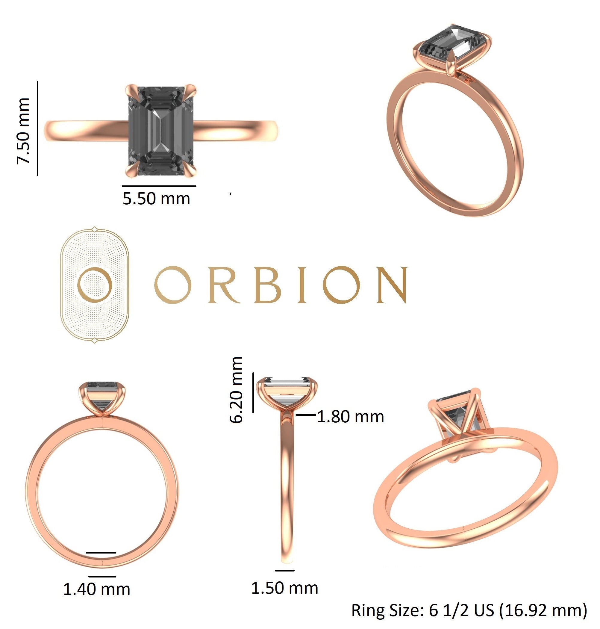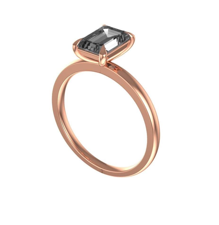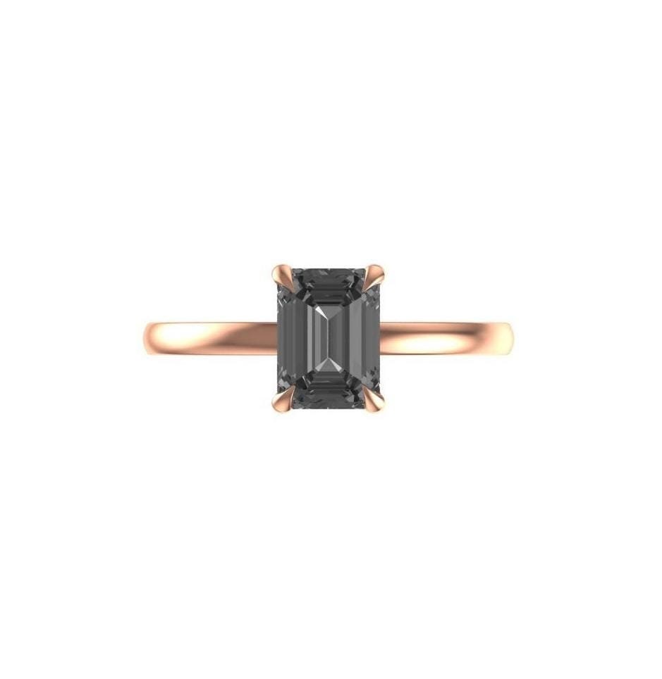 1.5 CT Emerald Cut Solitaire Grey Moissanite 14K Rose Gold Engagement Ring, Wedding Ring, Dainty Ring Gold, Minimalist Moissanite Ring