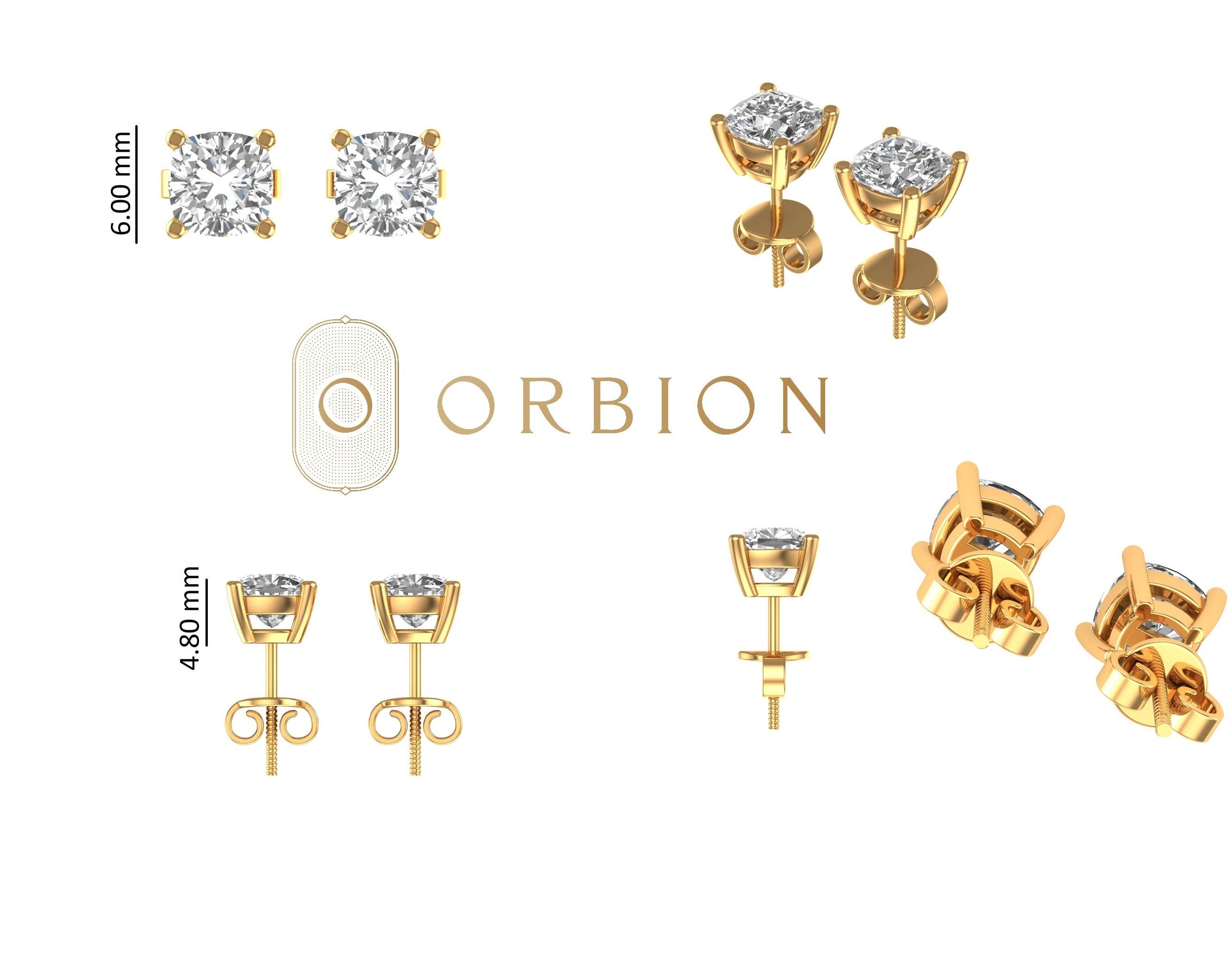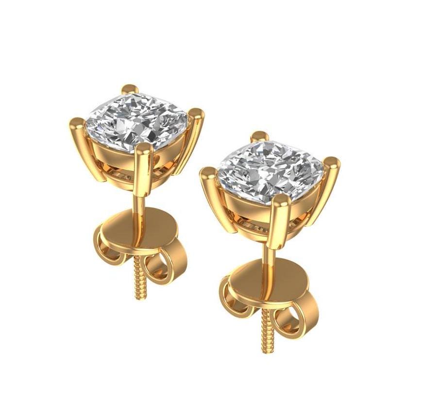 1.5 TCW GHI Cushion Old Mine Cut Screw Back Ear Studs in 14K Yellow Gold, Moissanite Stud Earrings, Stud Earrings For Women, Gold Earrings