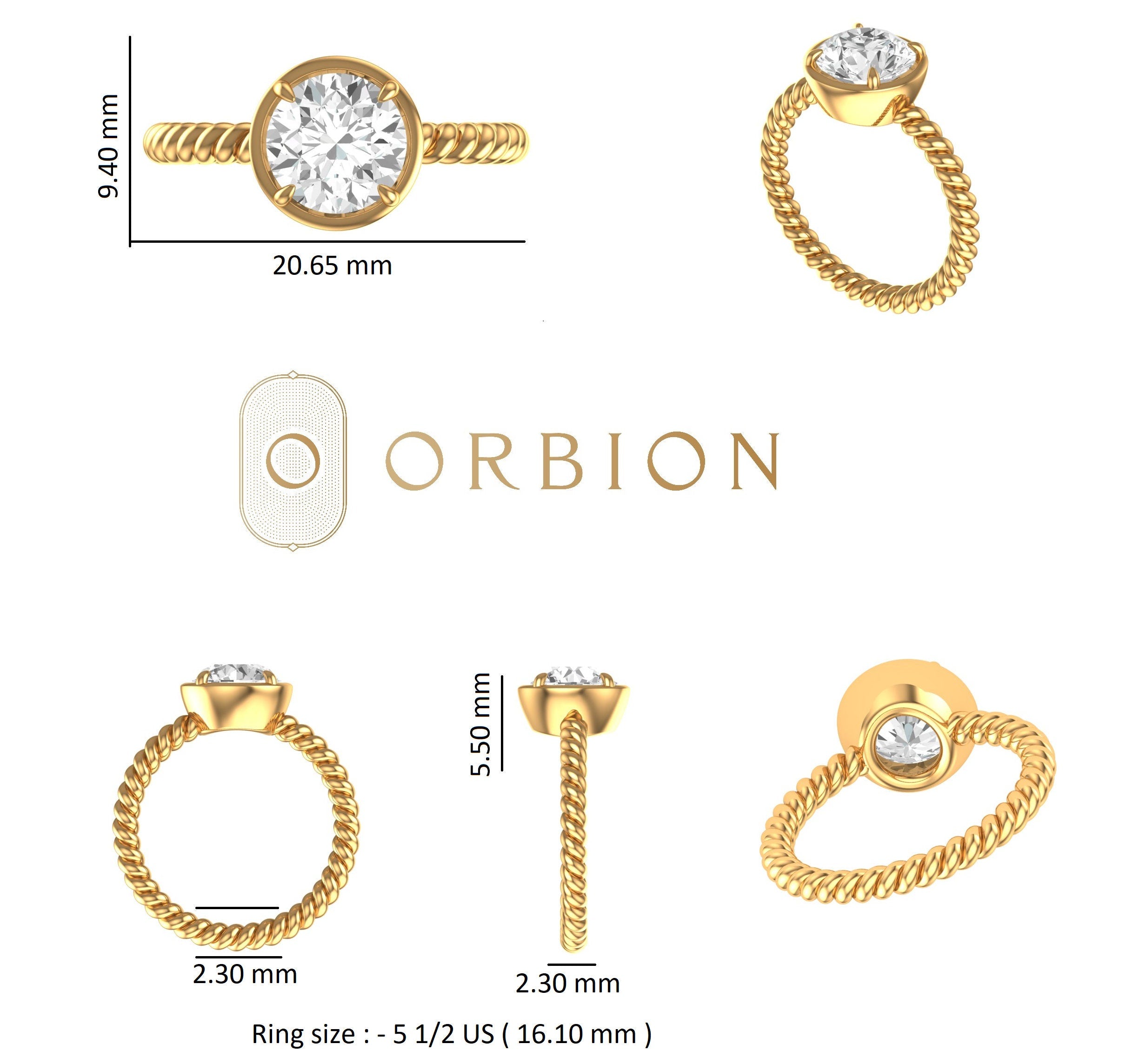 Off White OEC Moissanite Georgian Style Ring 14K Yellow Gold Twisted Rope Shank Wedding Ring Unique Engagement Ring Solitaire Ring Gold