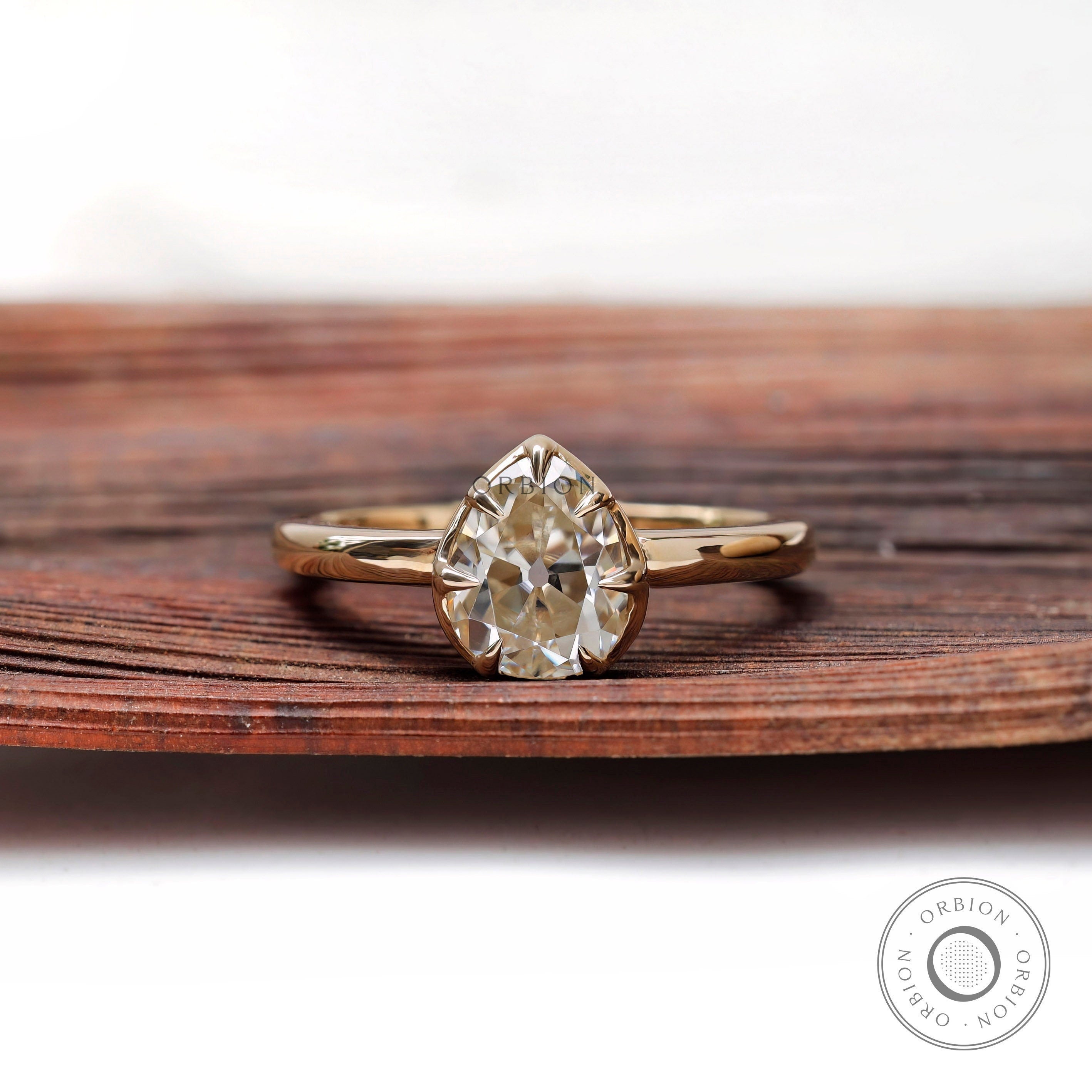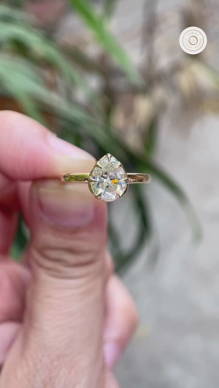 Old Mine Cut Pear Moissanite Ring, GHI Pear Moissanite Ring, Pear Cut Georgian Ring, 10k/14k/18k Solid Gold Ring, OMC Vintage Ring, Vintage Jewelry, Antique Wedding Ring, Estate Jewelry, Handmade Jewelry, Claw Prong Set Ring, Unique Wedding Ring, Pear Cut Off White Moissanite Ring, Old Mine Cut, Proposal Ring, Old Cut Pear Ring, Anniversary Gift