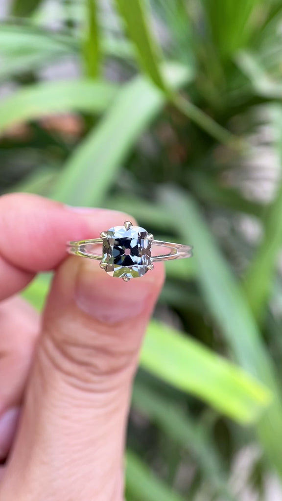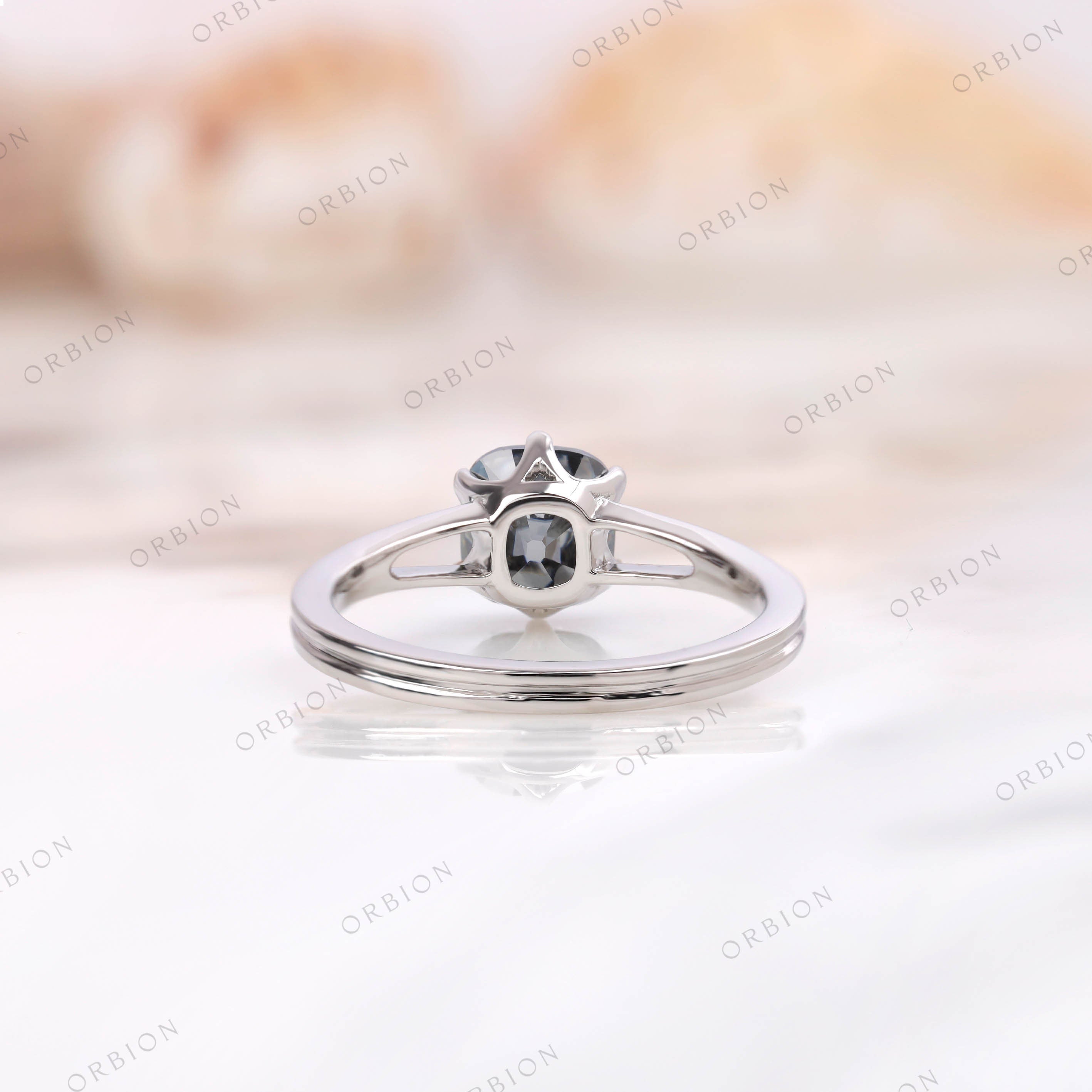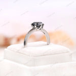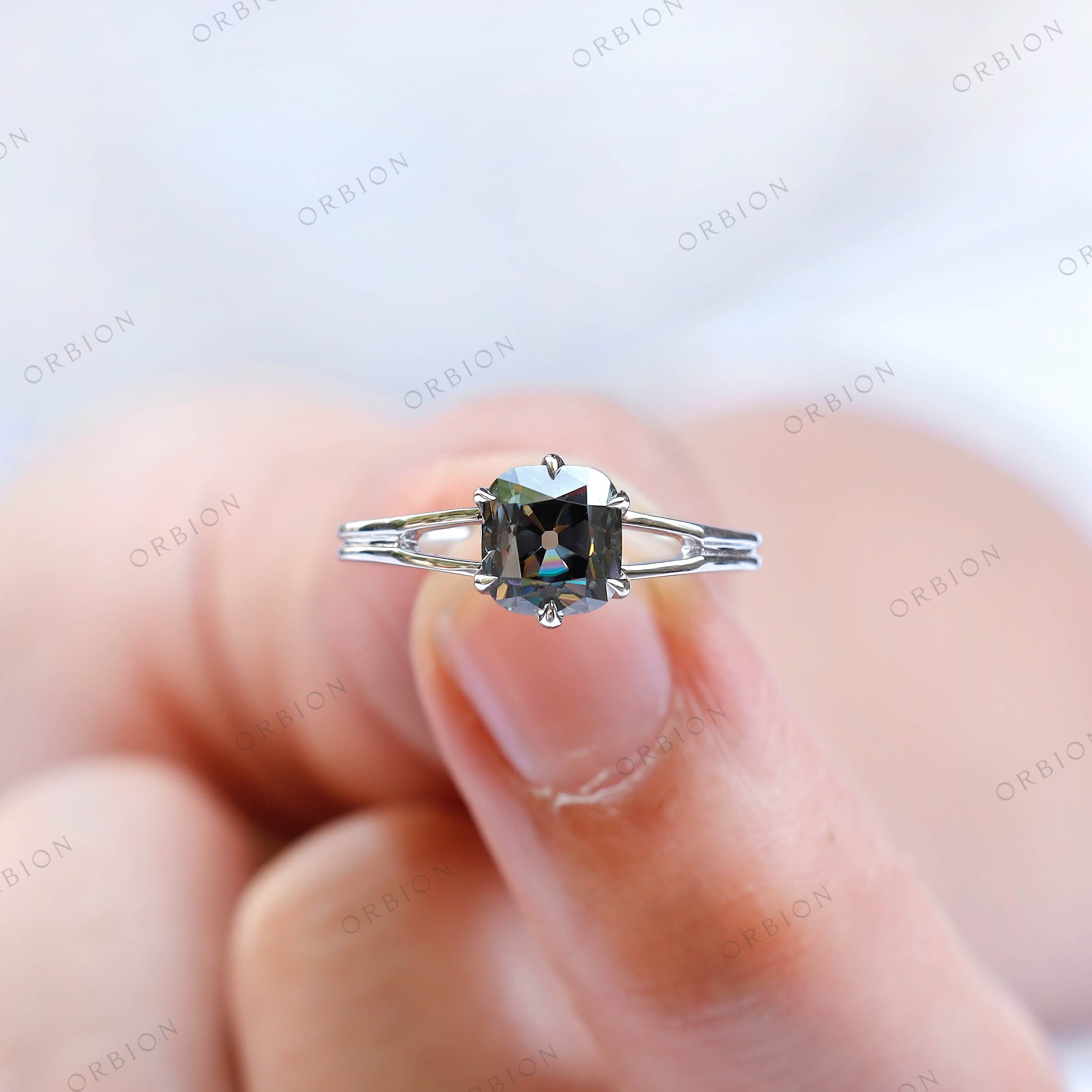 Vintage Engagement Ring, 10k/14k/18k White Gold Ring, Old Mine Cut Grey Moissanite Ring, Antique Jewelry, Wedding Ring, Handmade Jewelry, Anniversary Gift, Unique Engagement Ring, Bridal Ring, Promise Ring, Proposal Ring, Elongated Cushion, OMC Moissanite Collection, Solitaire Rings, Low Profile Set Ring, Split Shank Ring.