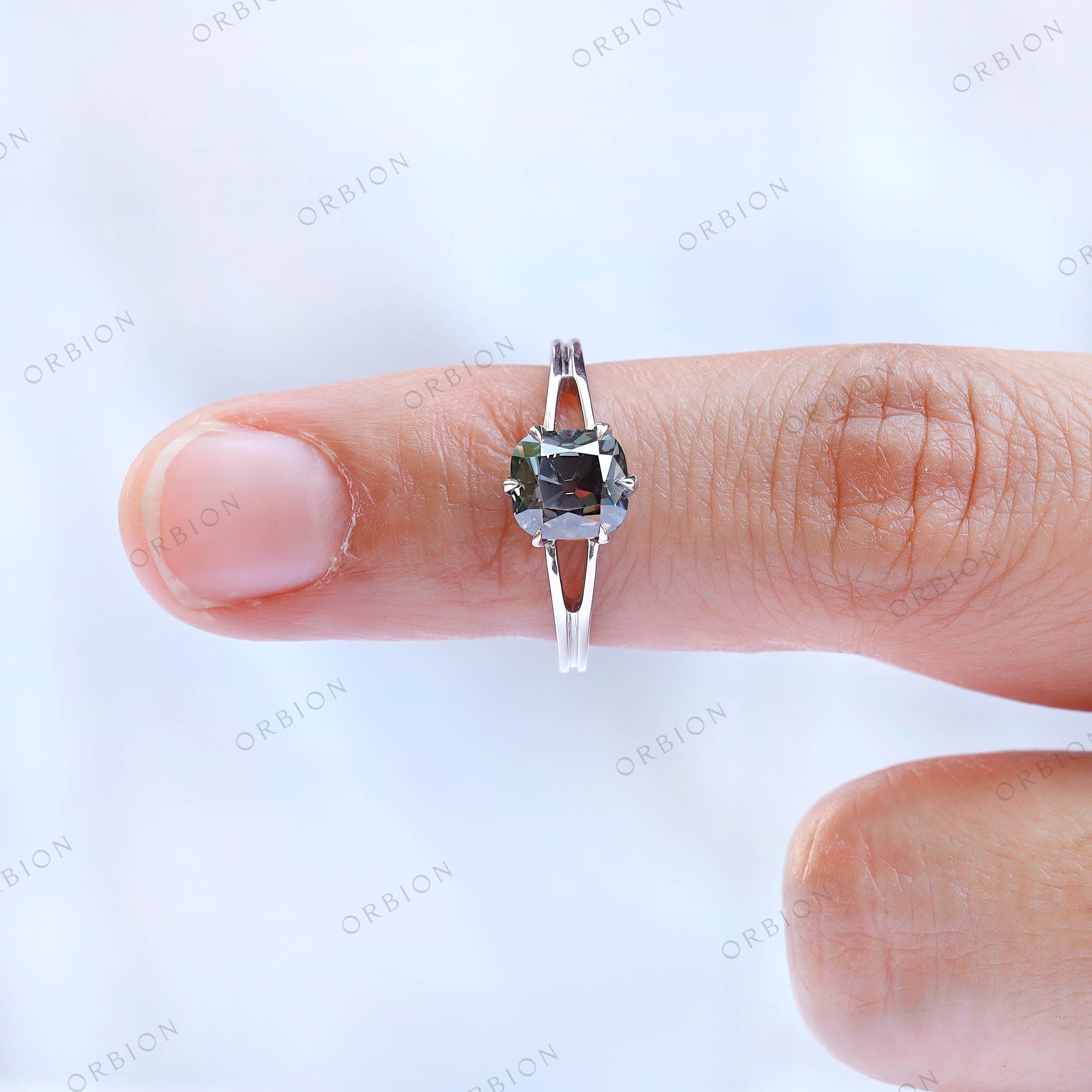 1.7 CT Old Mine Cut Elongated Cushion Grey Moissanite Vintage Engagement Ring for Her, Solitaire Ring, 18K White Gold Ring, Split Shank Ring