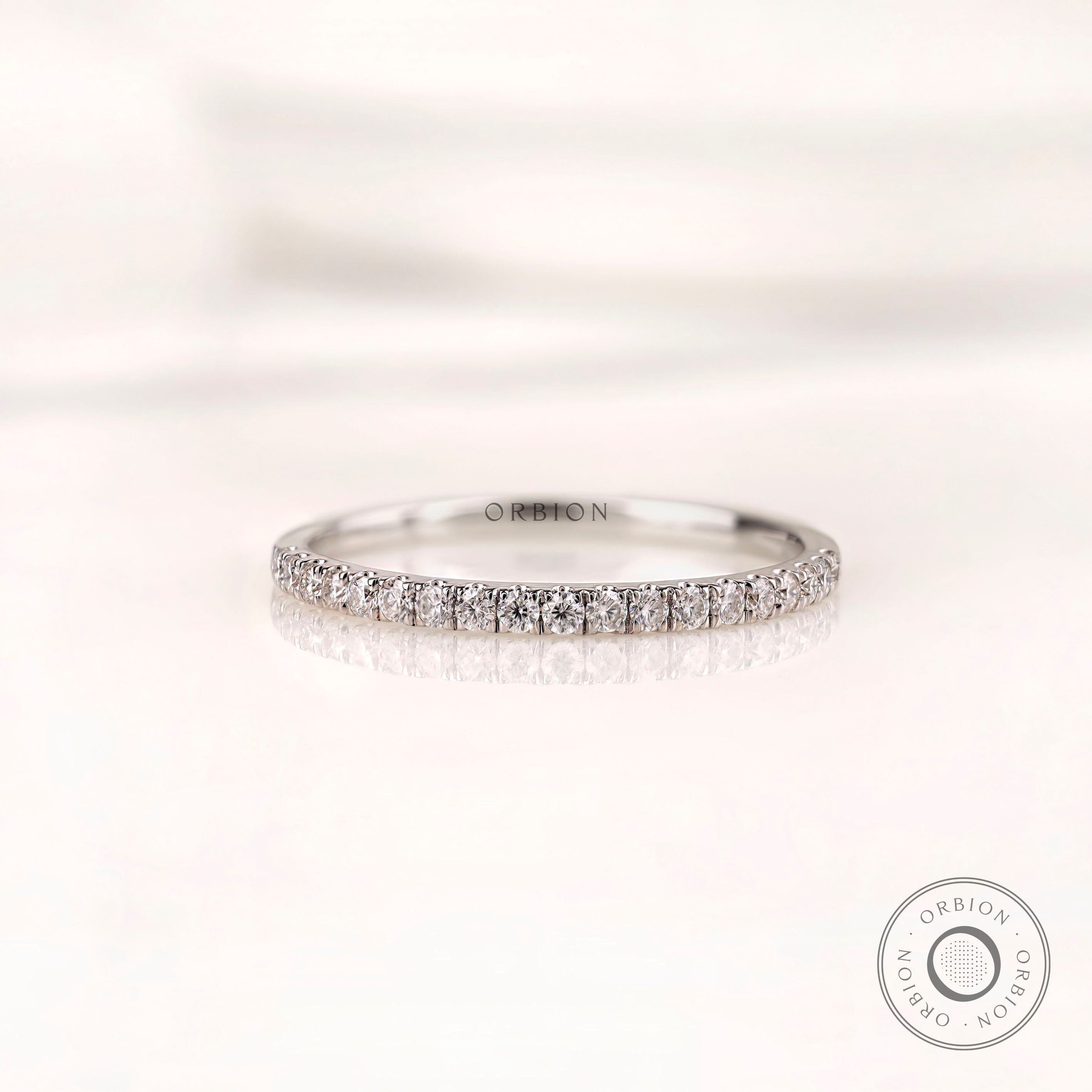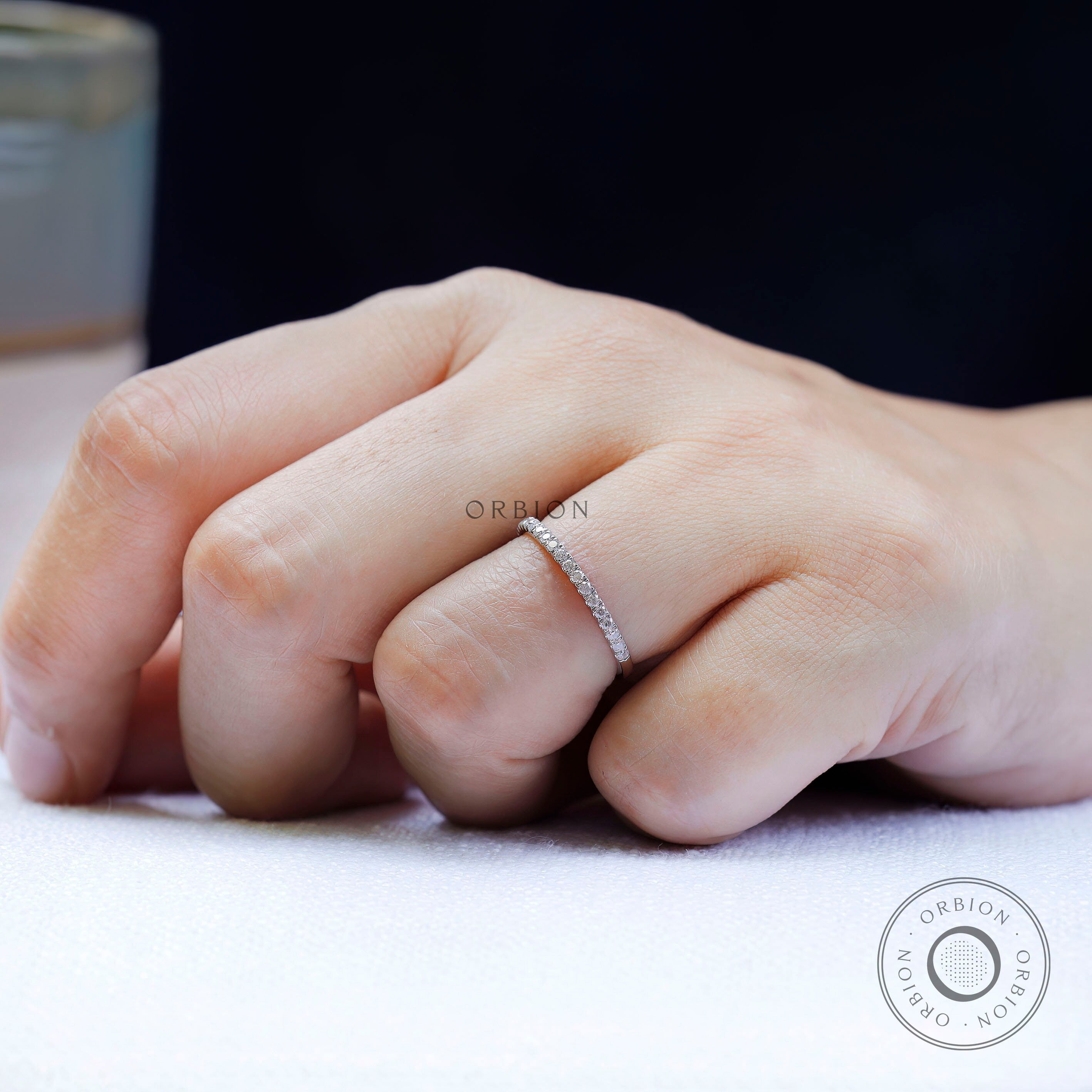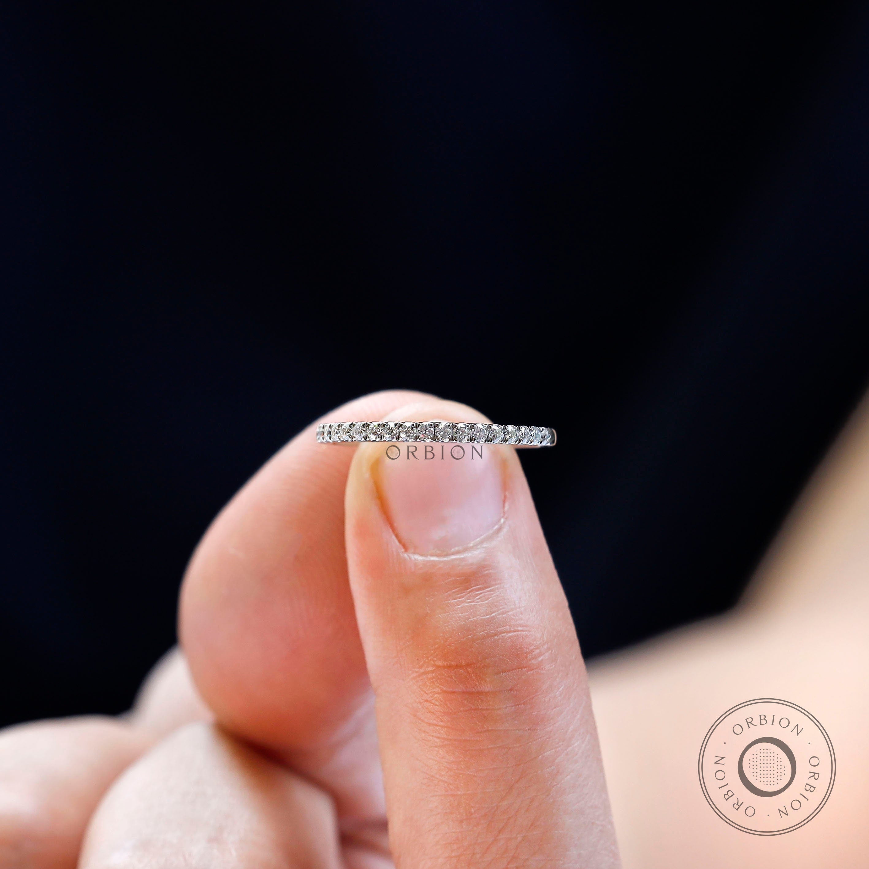 Half Eternity Moissanite Wedding Band, Minimalist Pave Set Wedding Band, Dainty Stacking Anniversary Band, Matching Stack Band