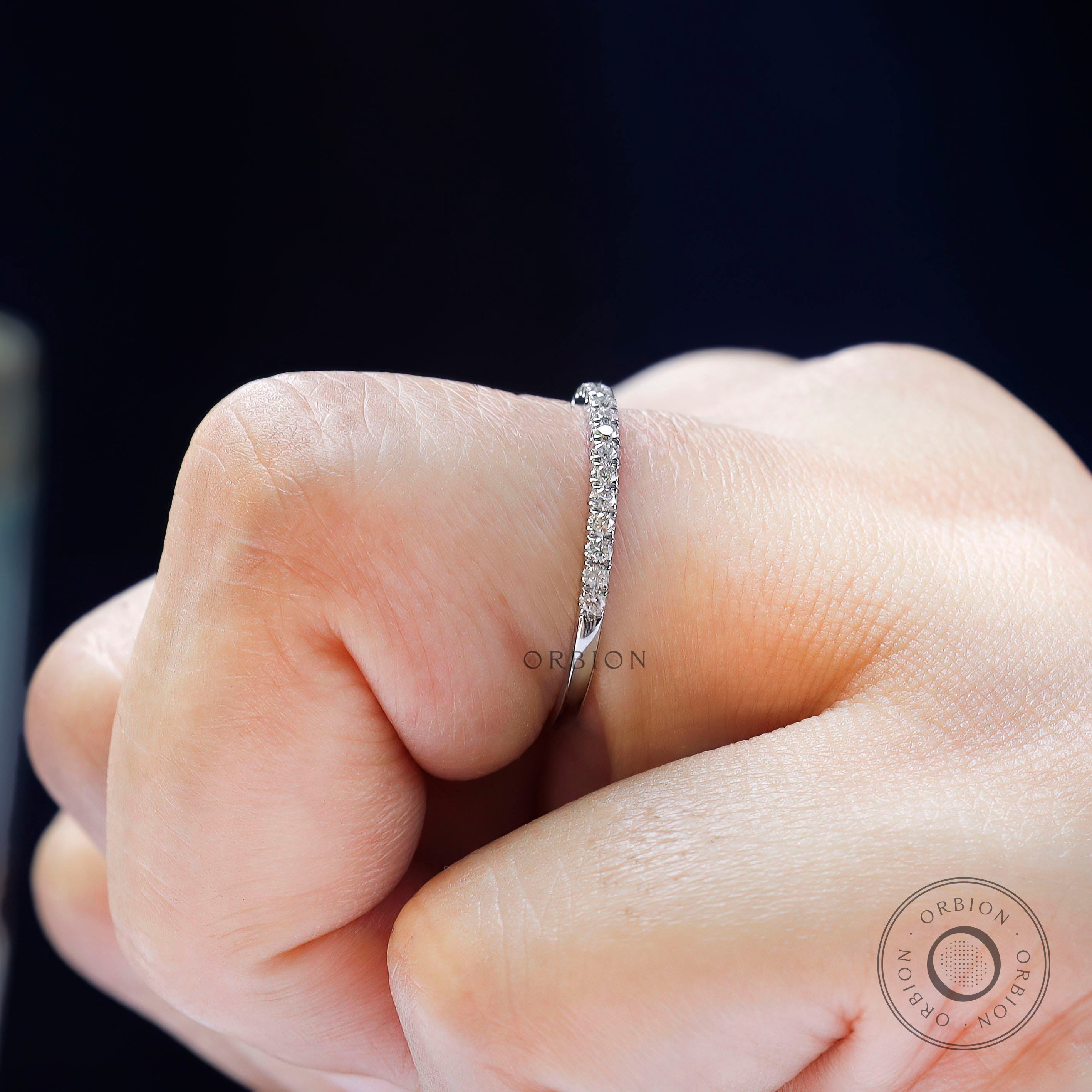 Half Eternity Moissanite Wedding Band, Pave Wedding Band, Minimalist Ring, Dainty Stacking Ring, Anniversary Band, Matching Band Bridal Ring, 10K/14K/18K Solid Gold, Women's Band, Fish Tail Setting, Micro Pave Band, Customized Moissanite Ring, Stacking Ring For Women, Wedding Set, Handmade Moissanite Jewelry