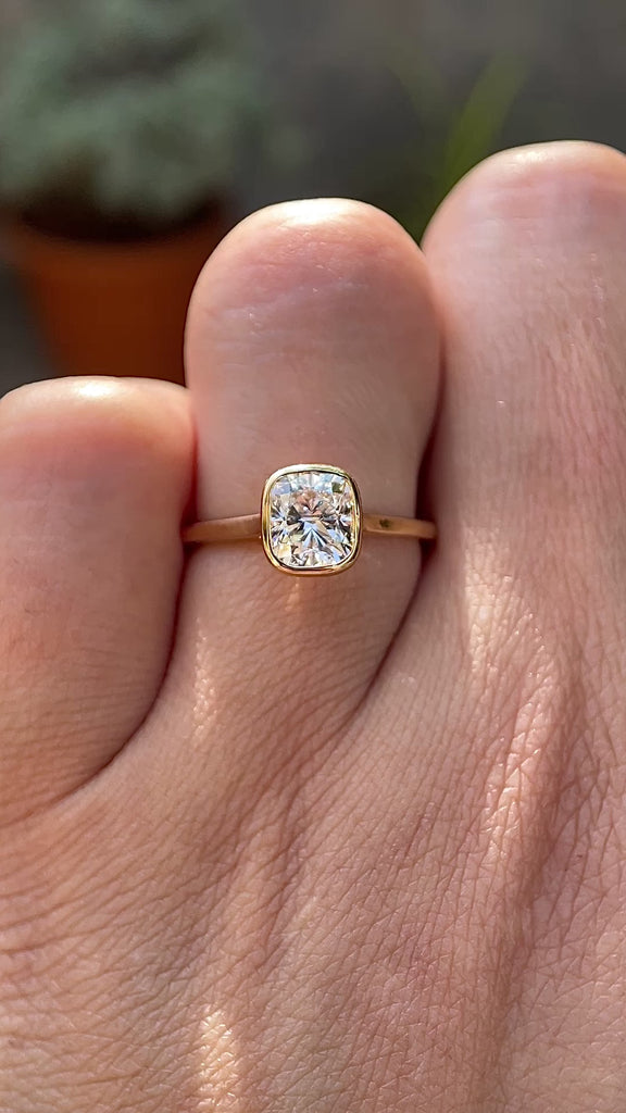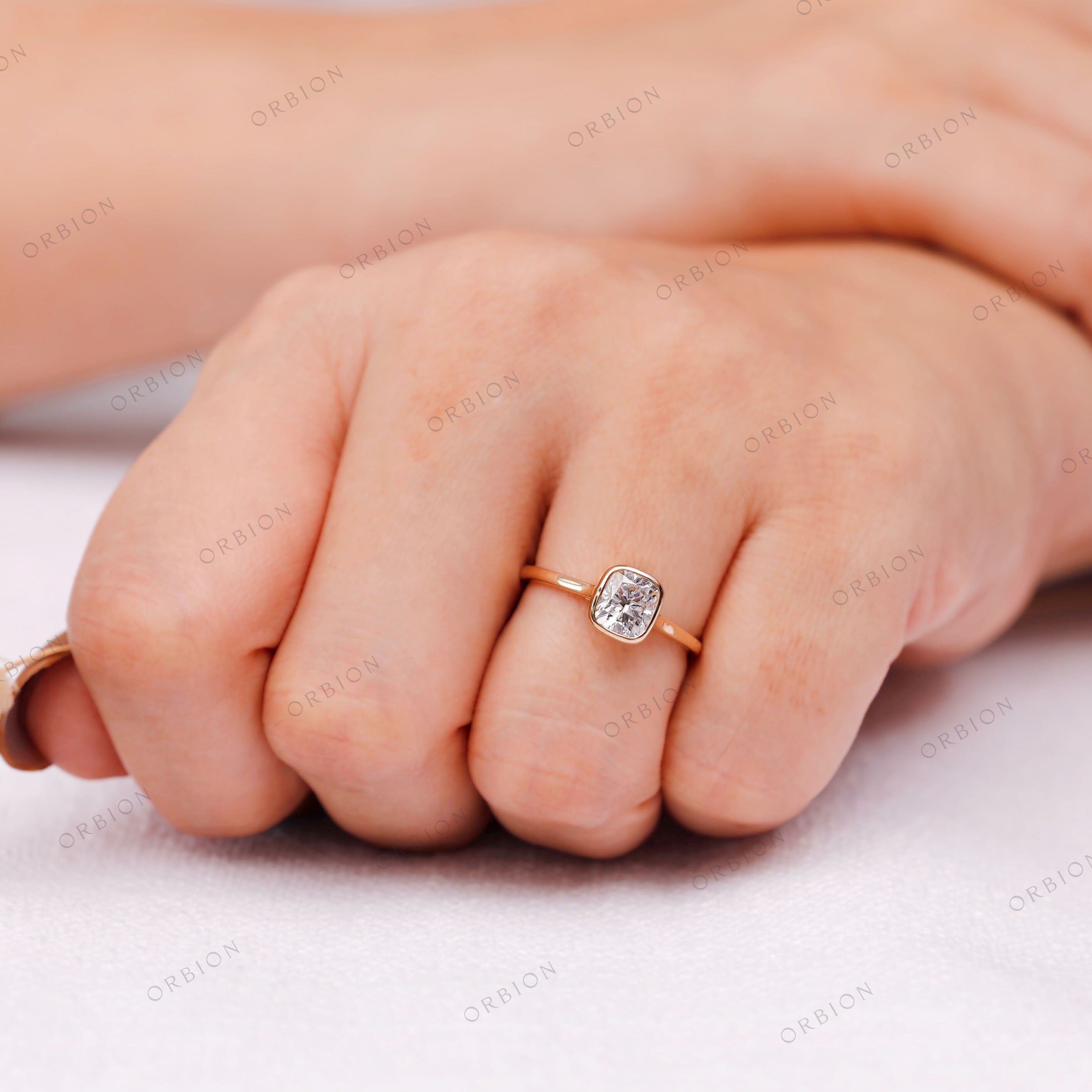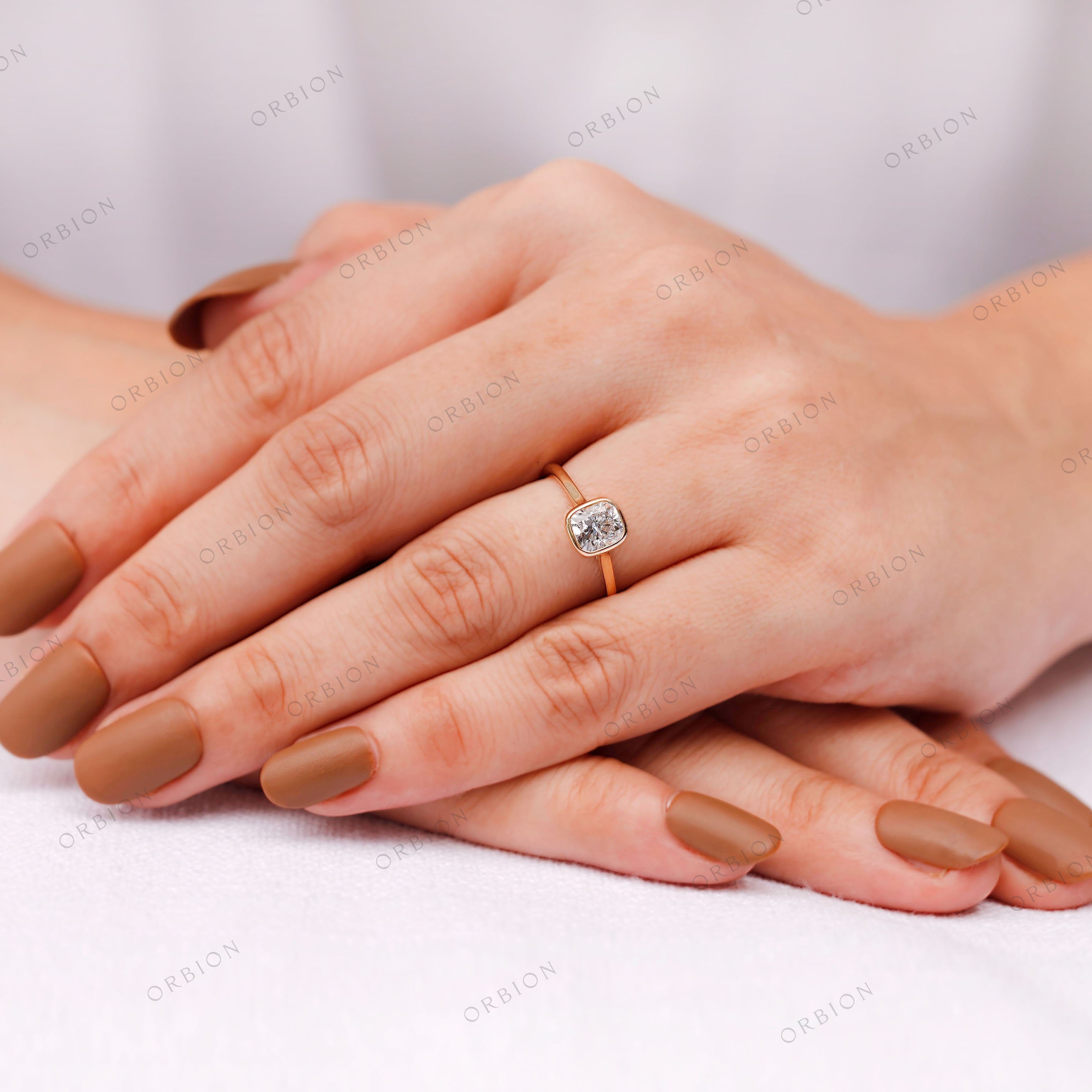 1 CT Brilliant Cut Cushion Lab Grown Diamond Engagement Ring, IGI Certified, Solitaire Ring Gold, Bezel Set Ring, 1 Carat Lab Diamond Ring