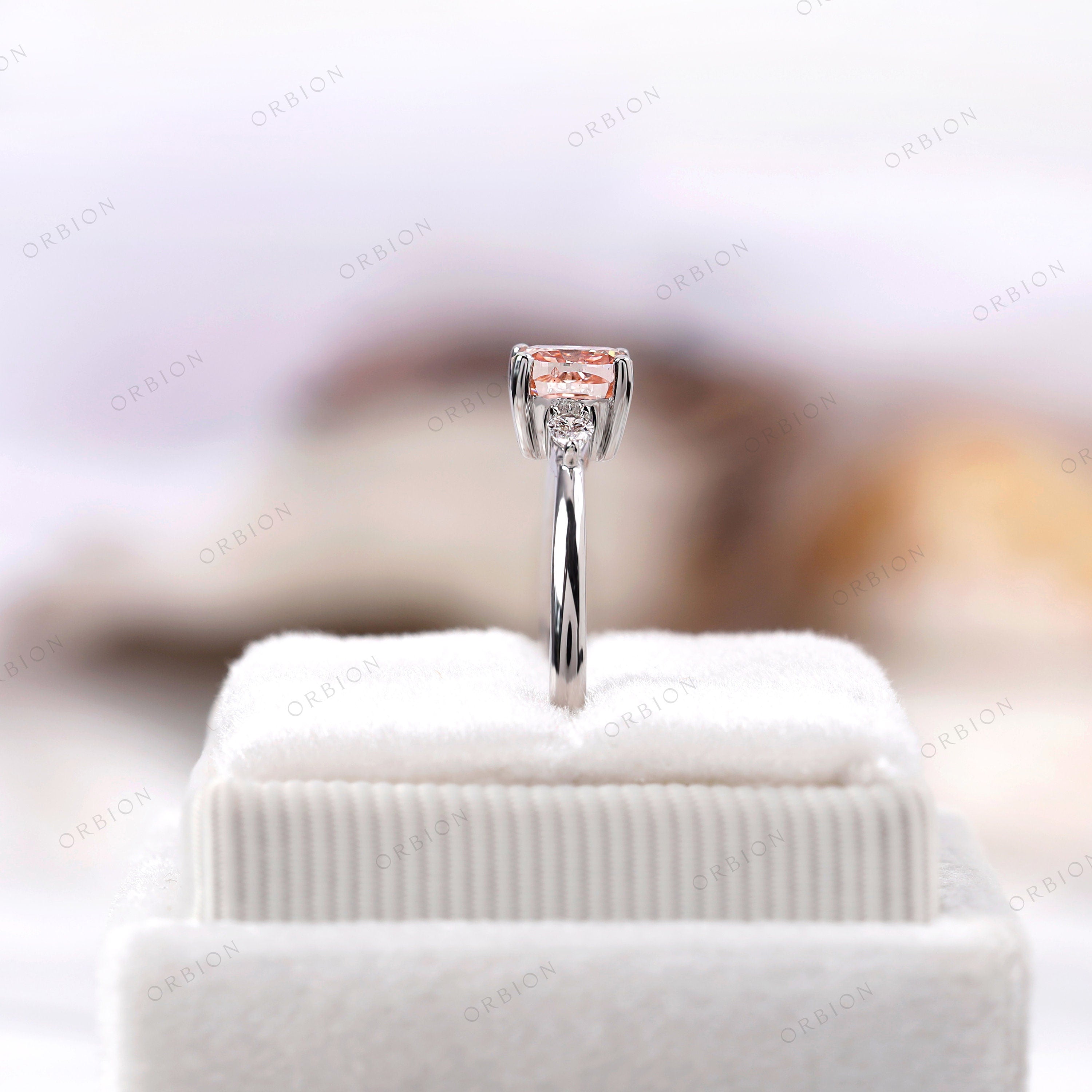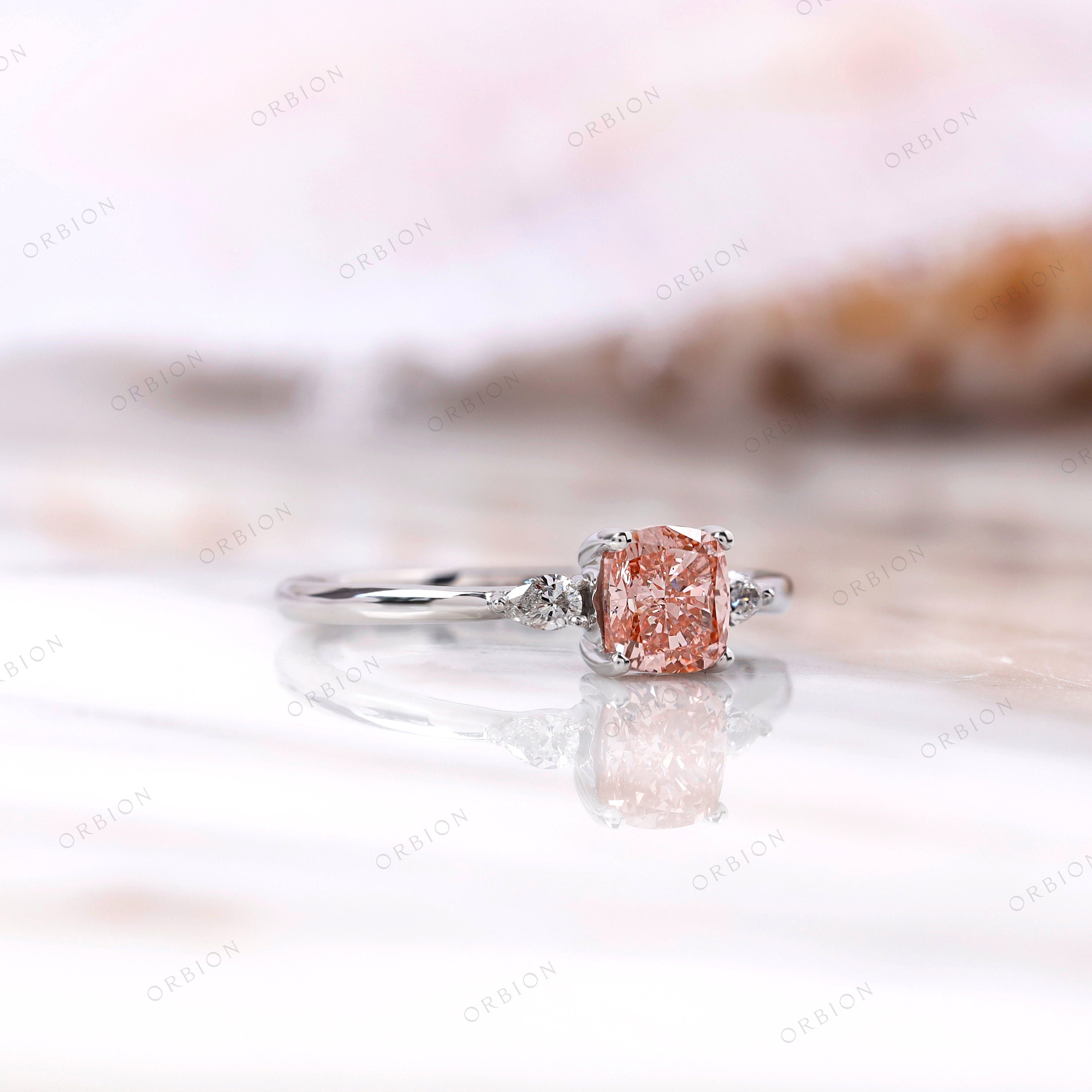 1 CT Fancy Intense Pink Cushion Lab Grown Diamond Engagement Ring, IGI Certified 14k Gold Three Stone Ring, Wedding Solitaire Ring
