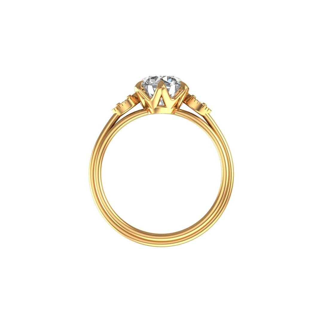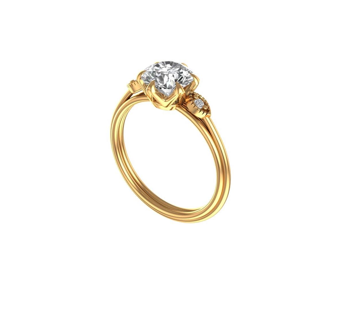 1 Ct Old European Cut Moissanite Engagement Ring, Classic Satin Finish Rings For Women, Vintage Ring Gold, 10K/14K/18K Gold Art Deco Ring