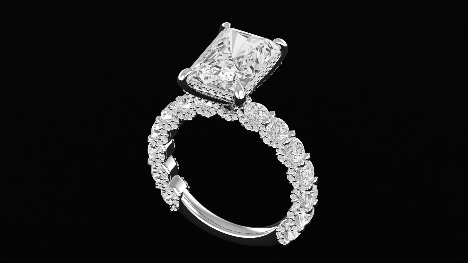 4 Ct Radiant Cut Moissanite Round Cut Accents Engagement Ring For Women, Solitaire Ring Gold, Anniversary Ring For Her, Unique Wedding Ring