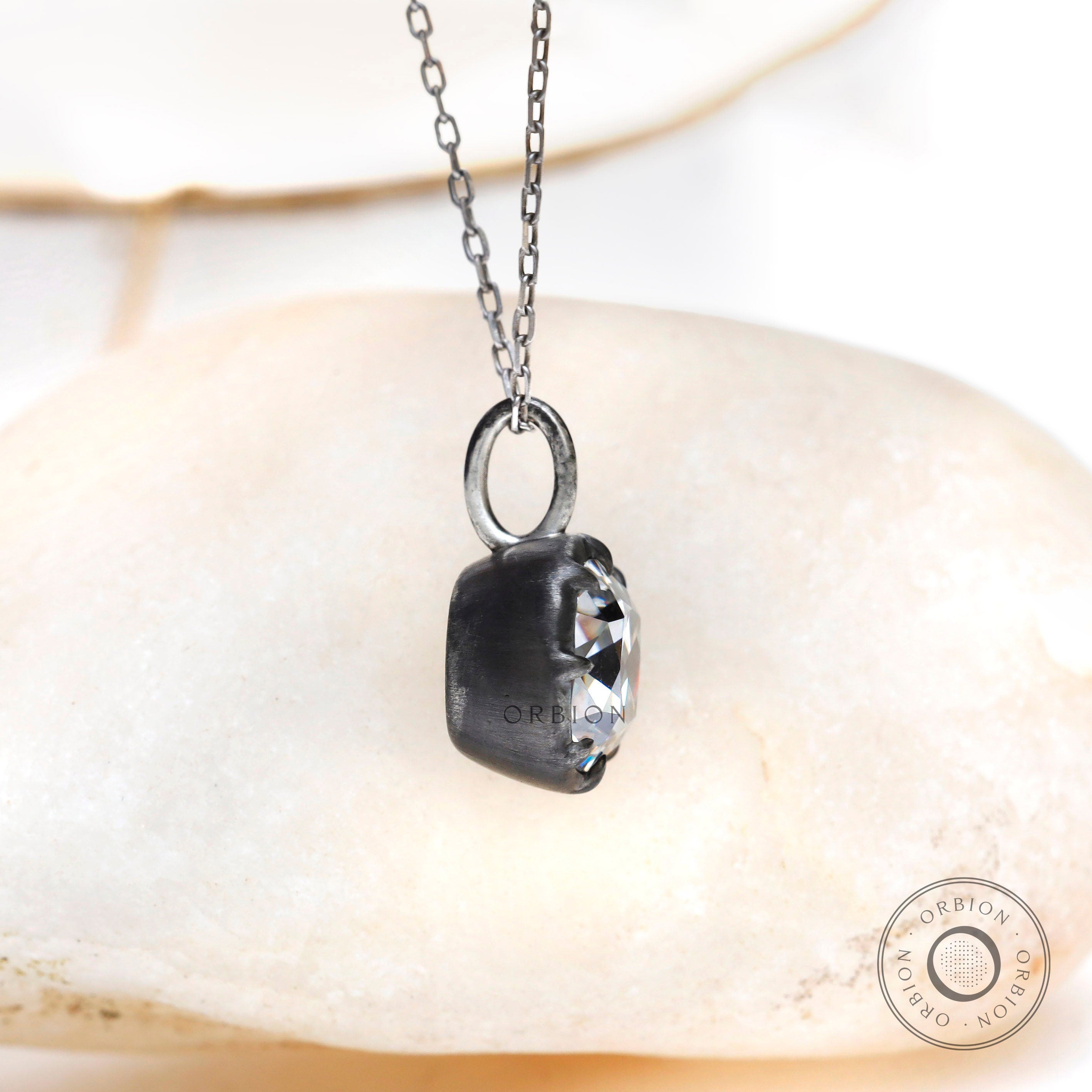 10 MM Old Cut Cushion Moissanite Pendant, Oxidized Silver Matte Finish Georgian Pendent, Claw Prong, Antique Cut Gold Pendant For Women