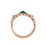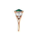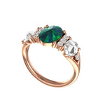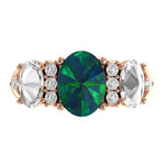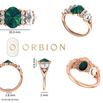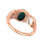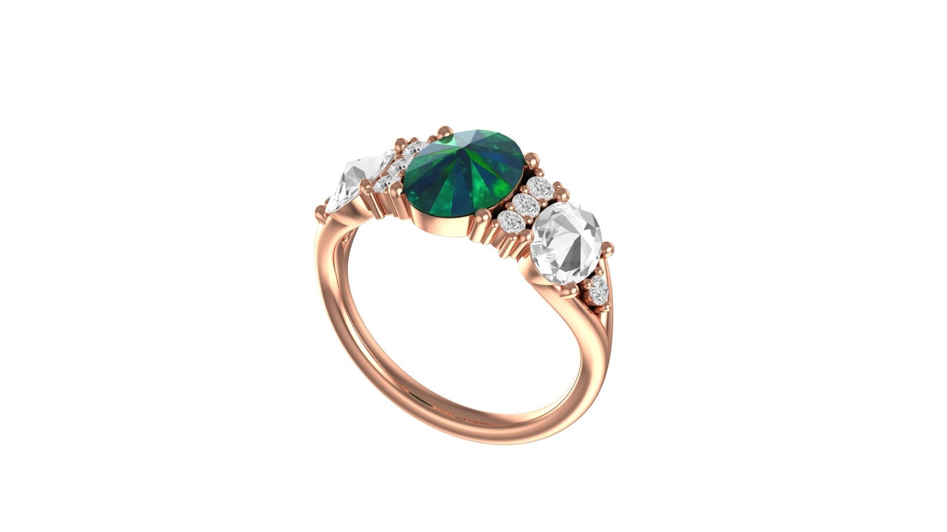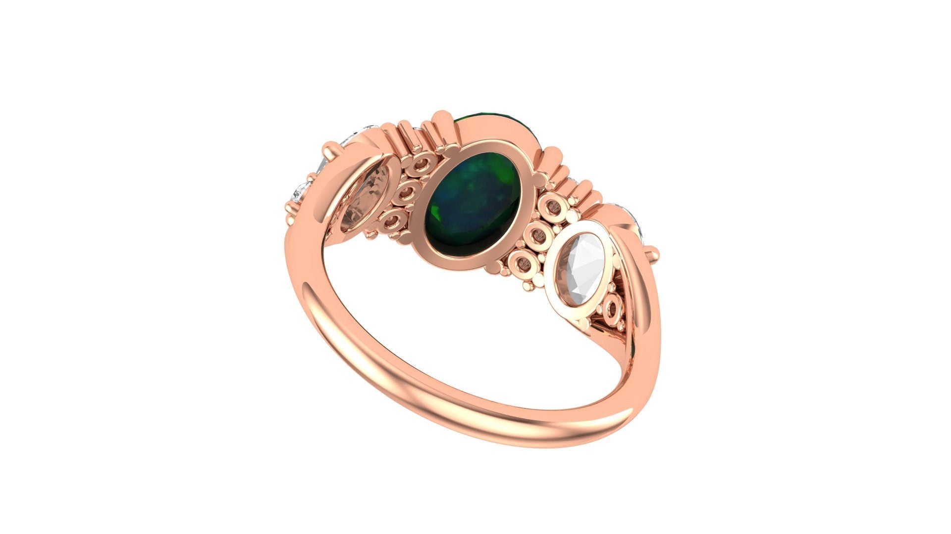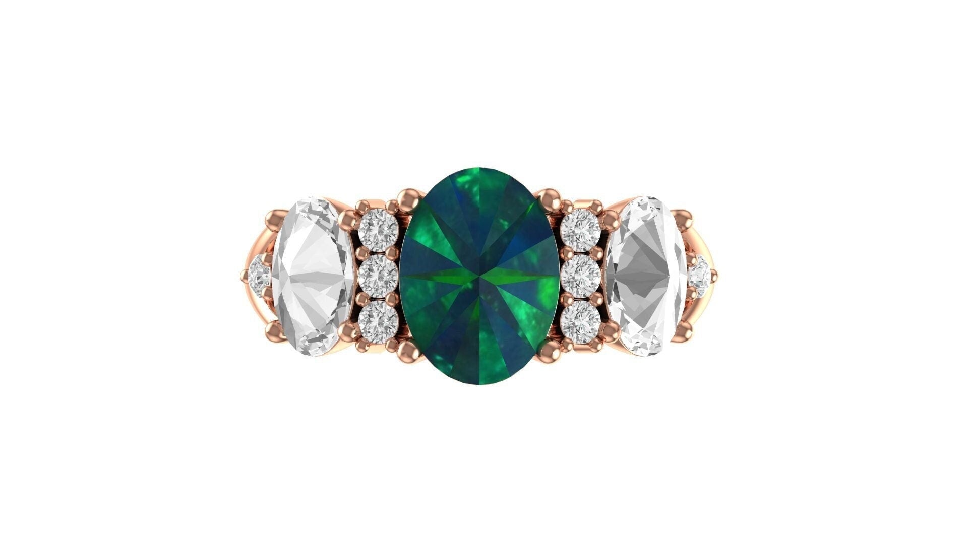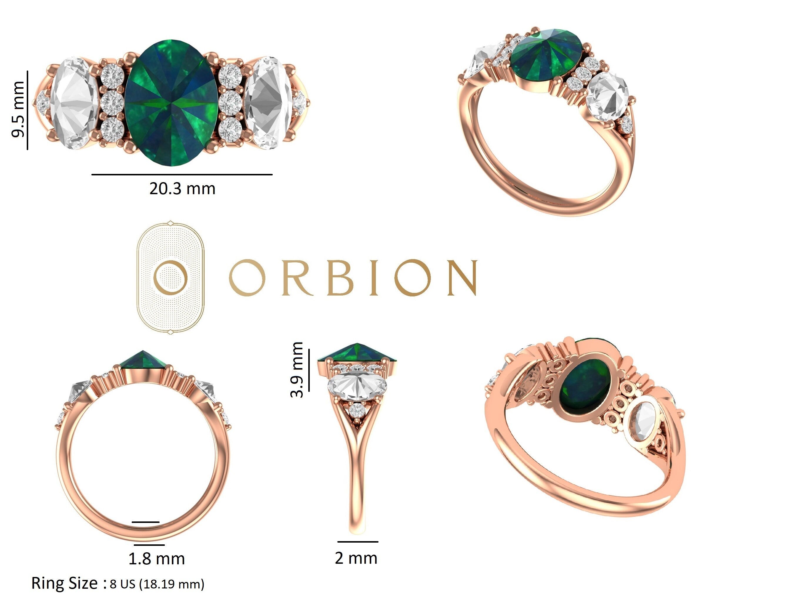 10K/14K/18K Solid Rose Gold Blue Green 3 Stone Engagement Ring, Side Grey Oval Rose Cut Moissanite Wedding Ring, Wedding Ring, Bridal Ring
