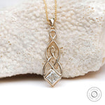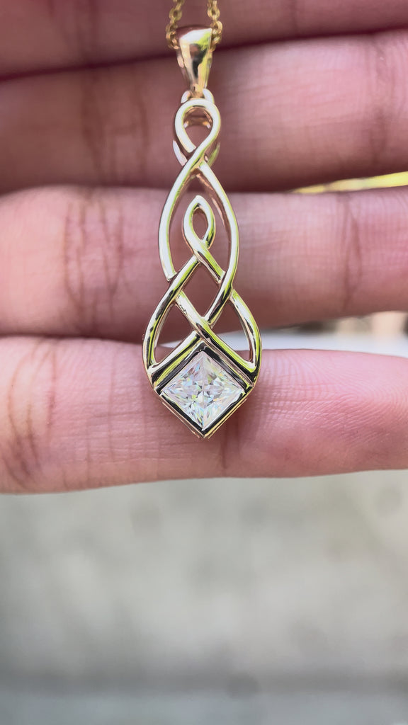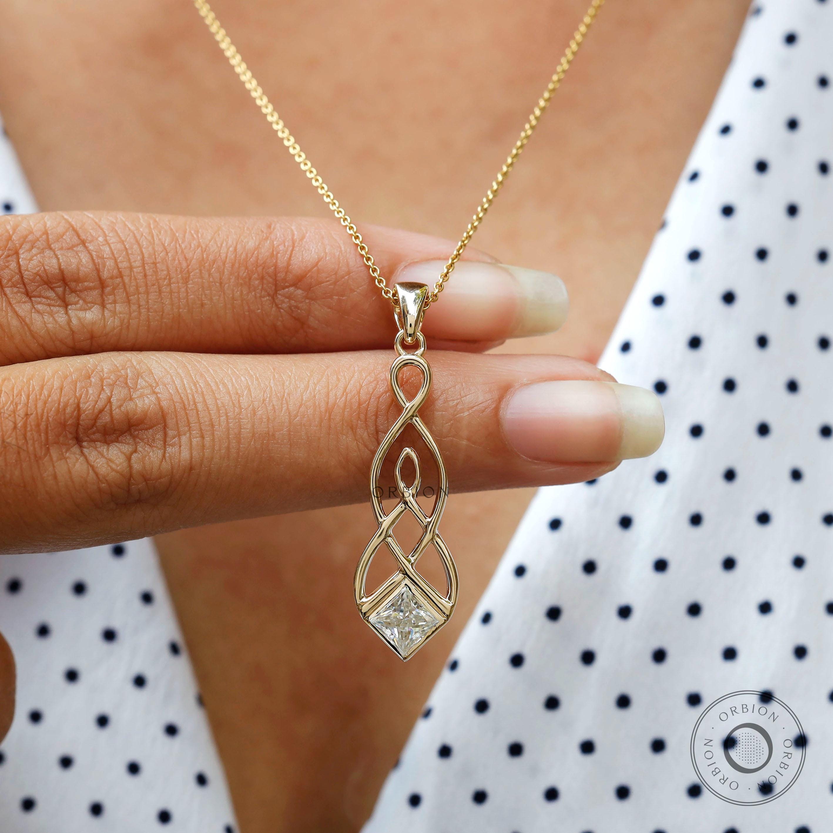 Celtic Knot Pendant Yellow Gold 5 MM Princess Cut Moissanite Pendant Statement Pendant for Women Unique Pendant For Chain Celtic Jewellery