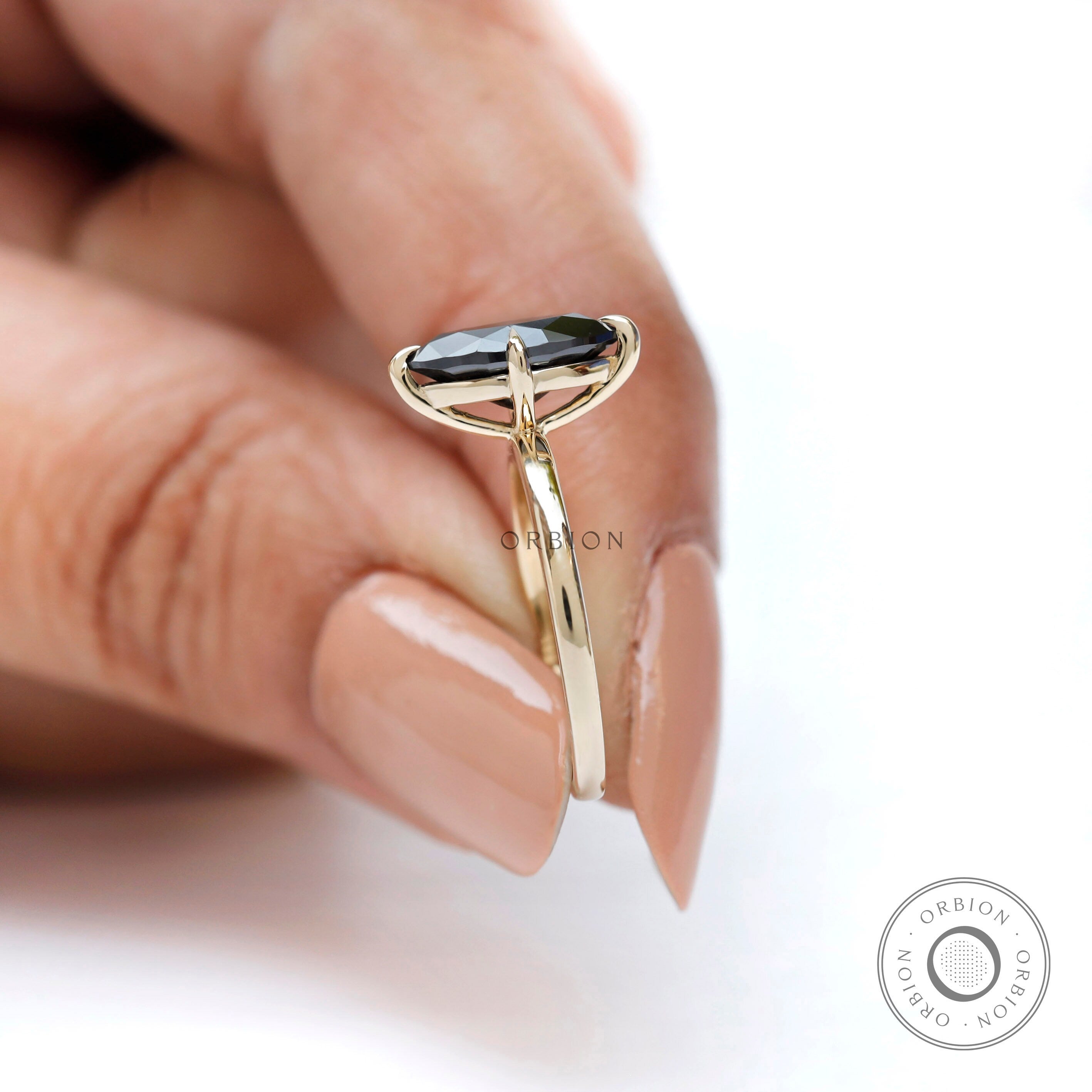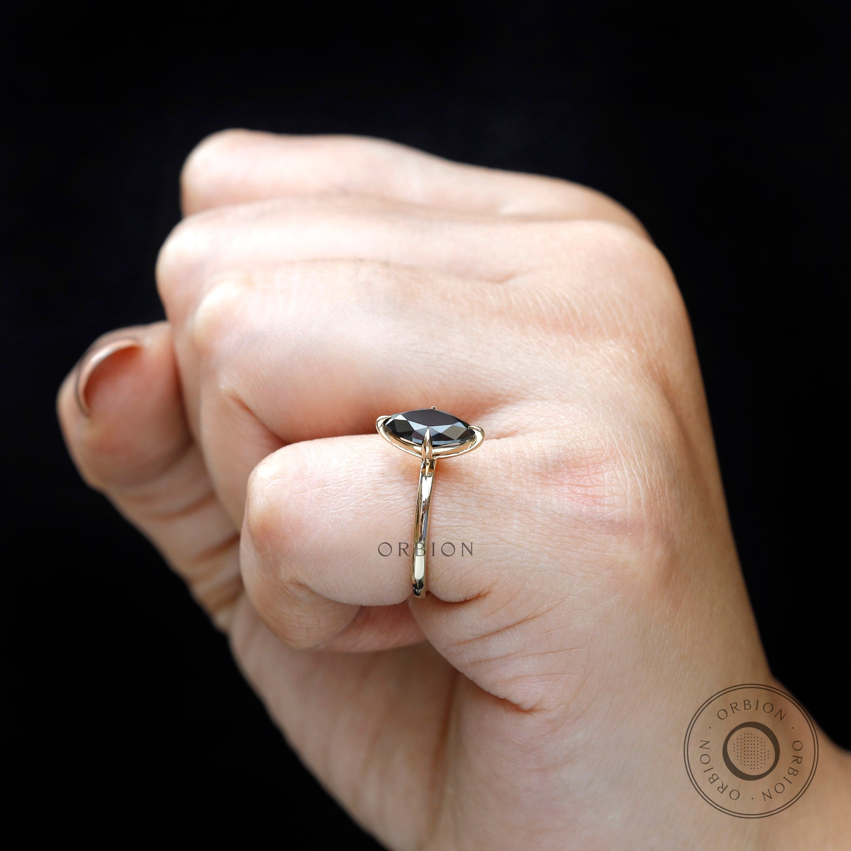Marquise Black Moissanite Engagement Ring, 10k/14k/18k Solid Gold Ring, Simple Wedding Ring, Anniversary Gift, Promise Ring For Her