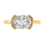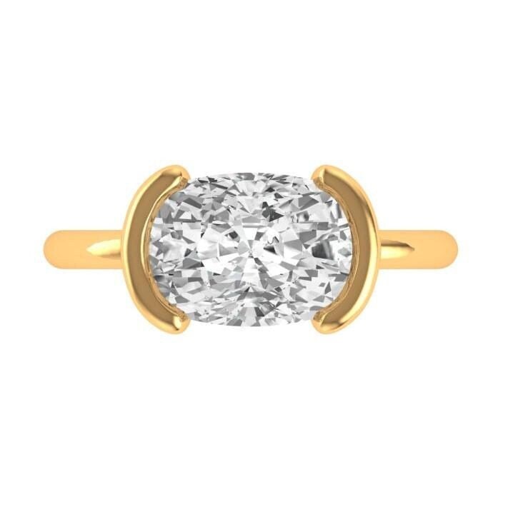 Old Mine Cut Elongated Cushion East-West Set Moissanite Ring, 10K Yellow Gold Half Bezel Set Ring, Unique Engagement Ring