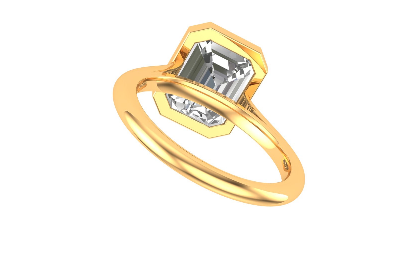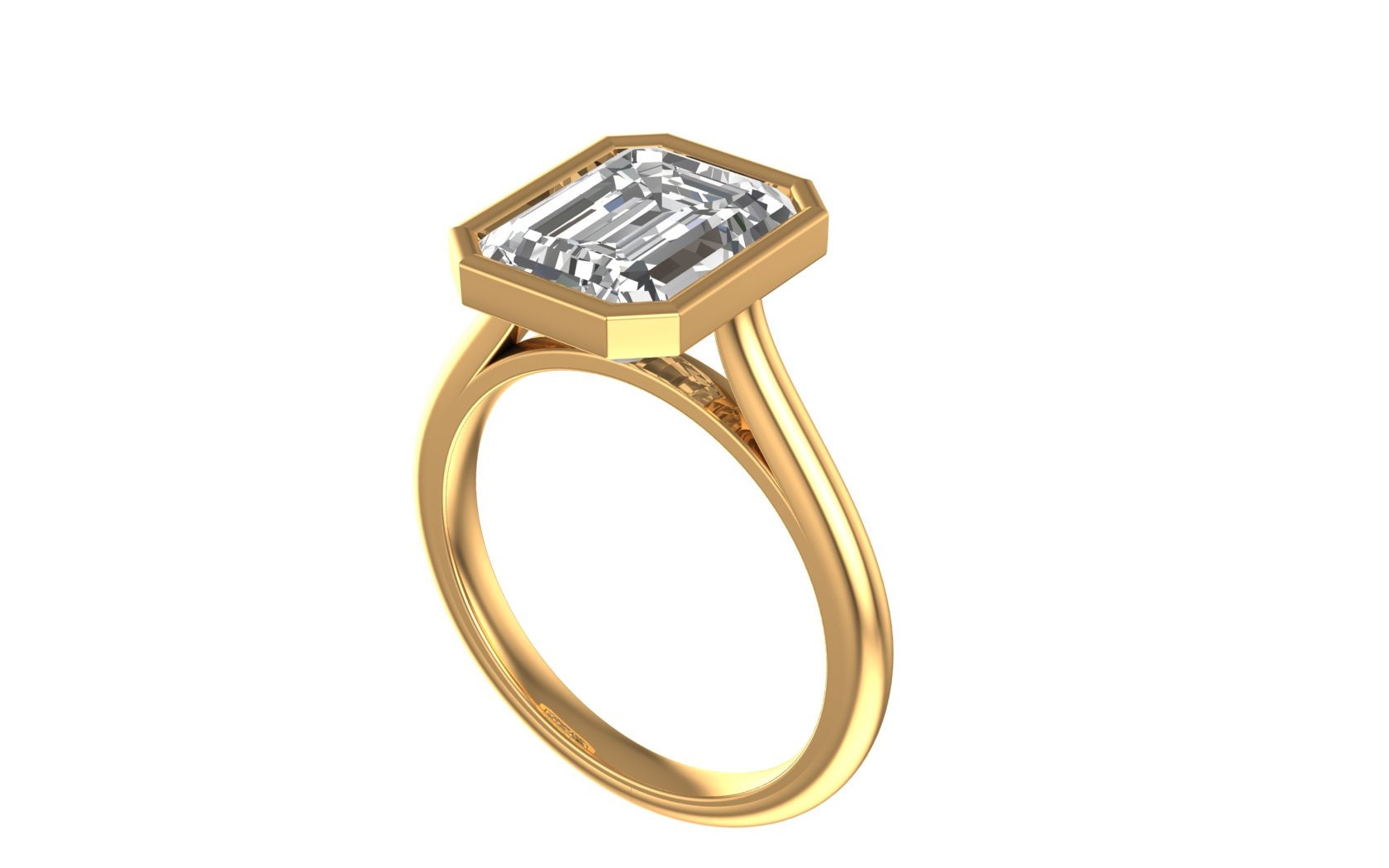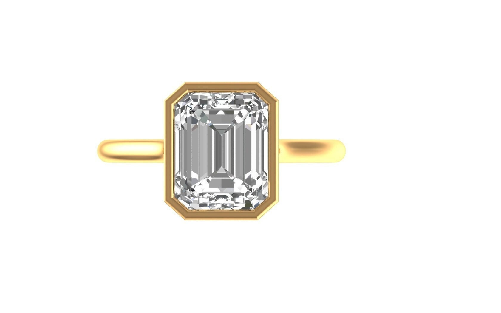 Emerald Cut Bezel Set Moissanite Engagement Ring, 10K/14K/18K Yellow Gold Ring, Solitaire Ring Gold, Wedding Ring For Her