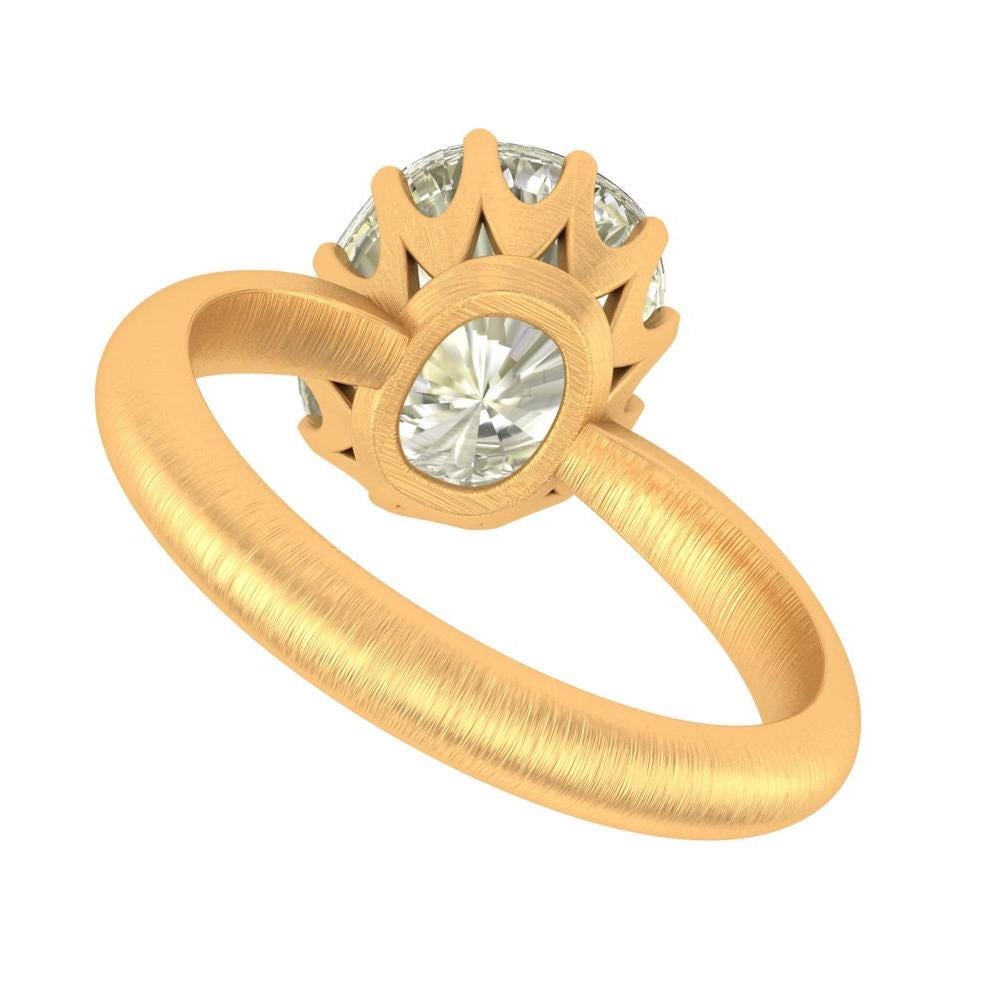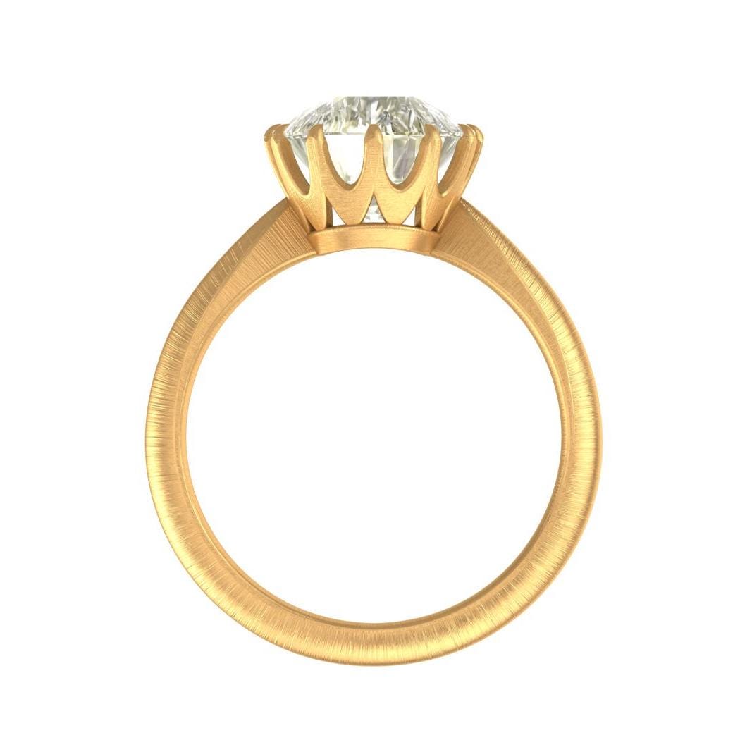 OMC Off white Moissanite 14K Yellow Gold Satin Brush Finish Setting, Solitaire Engagement Ring, Unique Wedding Ring, Art Deco Ring