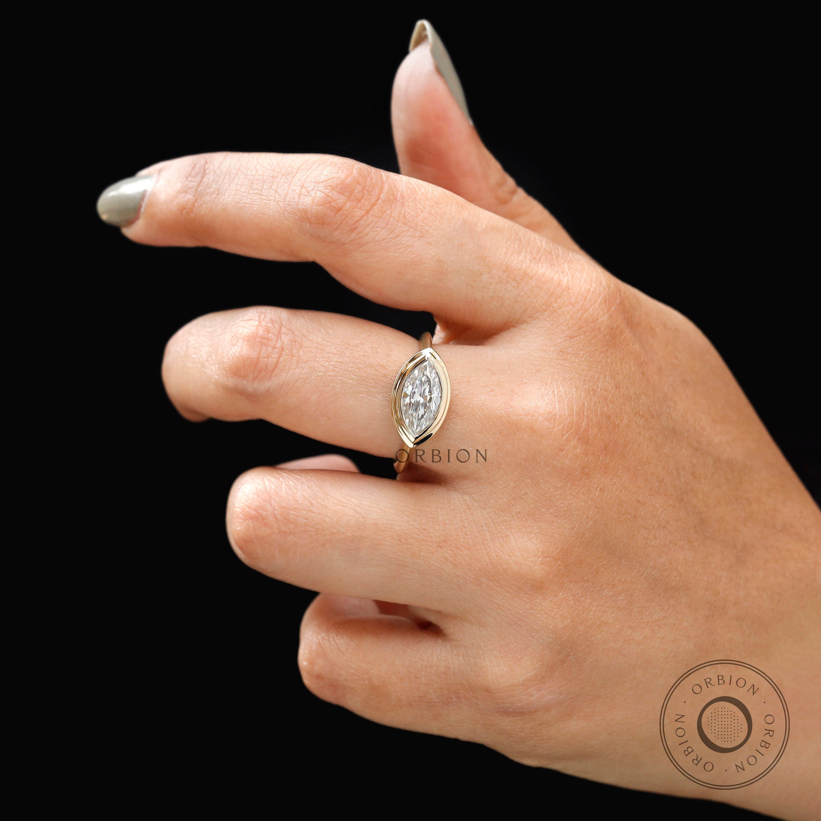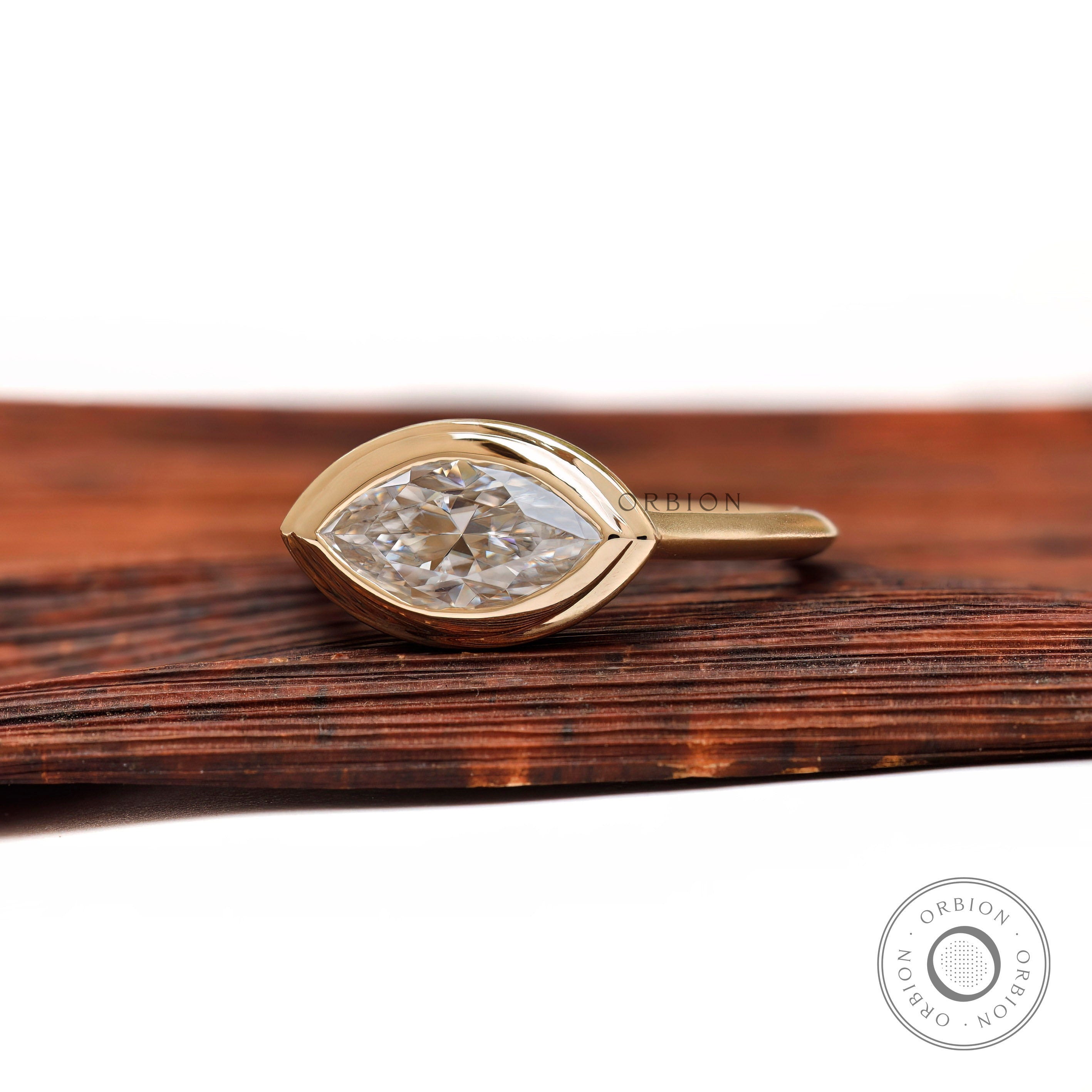 East West Marquise Ring, Marquise Engagement Ring, Marquise Bezel Ring, Moissanite Engagement Ring, Spray Matte Finish Double Bezel Set Ring, Vintage Solitaire Ring, Vintage Moissanite Ring, 10k/14k/18k Yellow Gold Ring, Unique Wedding Ring, Marquise Promise Rings, Proposal Ring, Large Moissanite Rings, Solid Gold Ring, Solitaire Marquise Ring, East West Set Ring.