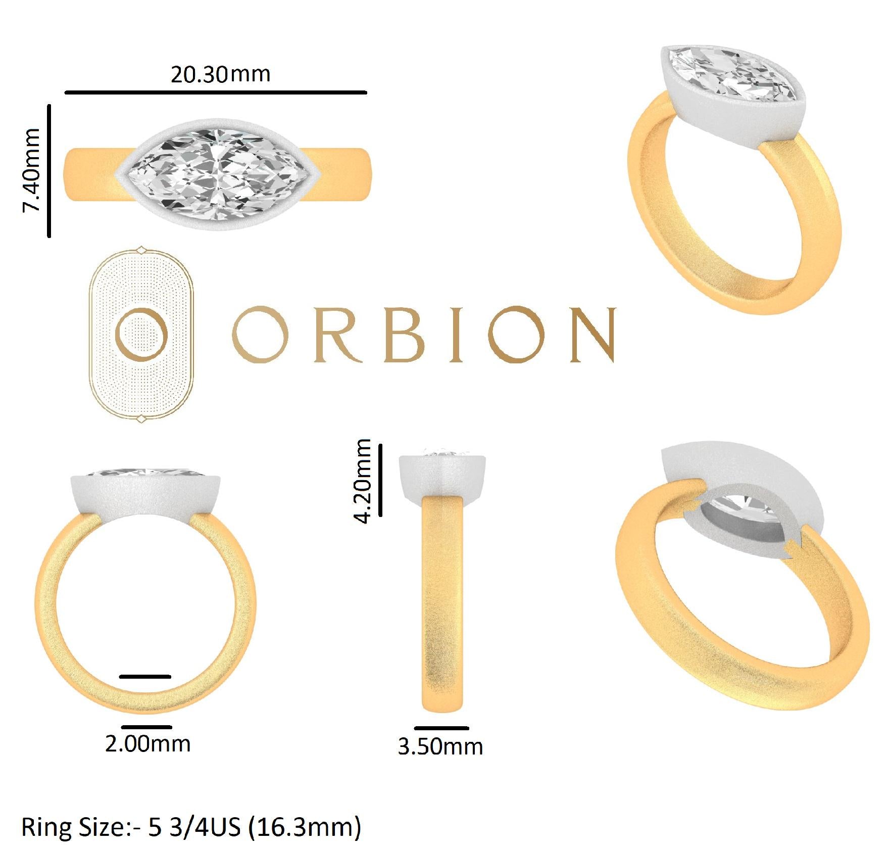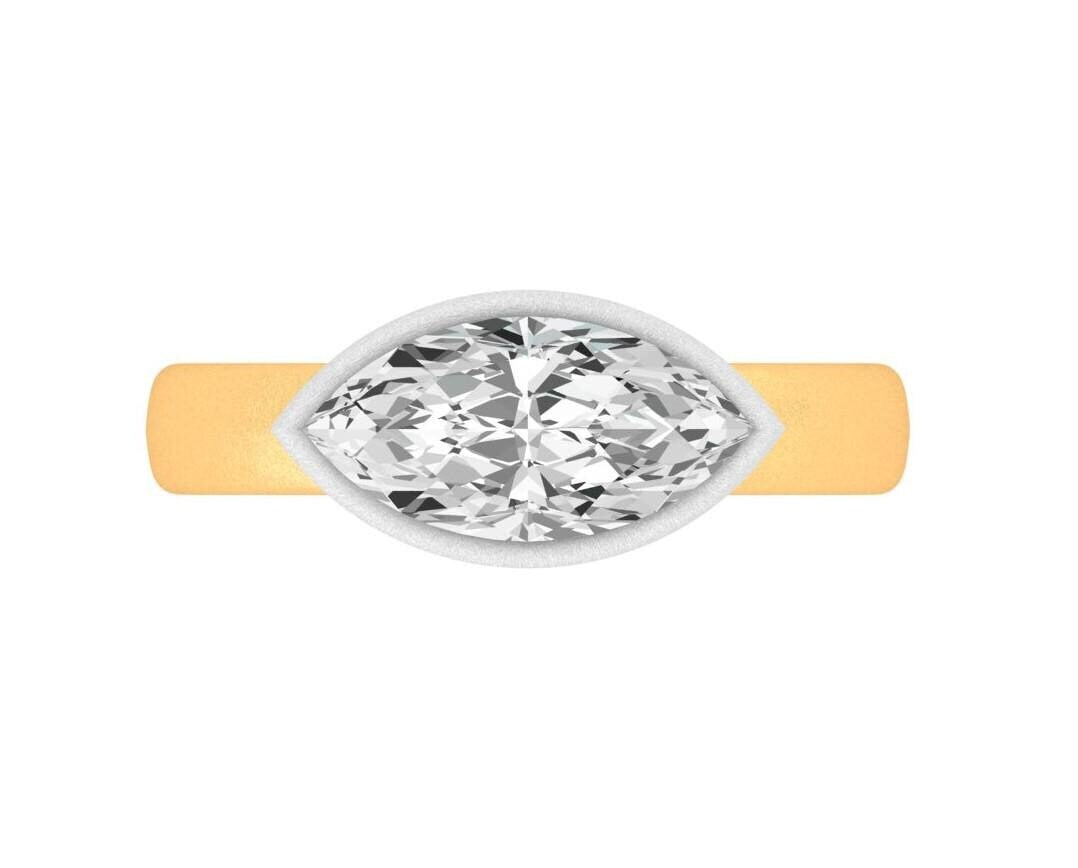 Marquise Brilliant Cut Lab Diamond/Moissanite East West Ring in 10k Solid Gold, Bezel Set Dual Tone Ring, Bezel Set Engagement Ring