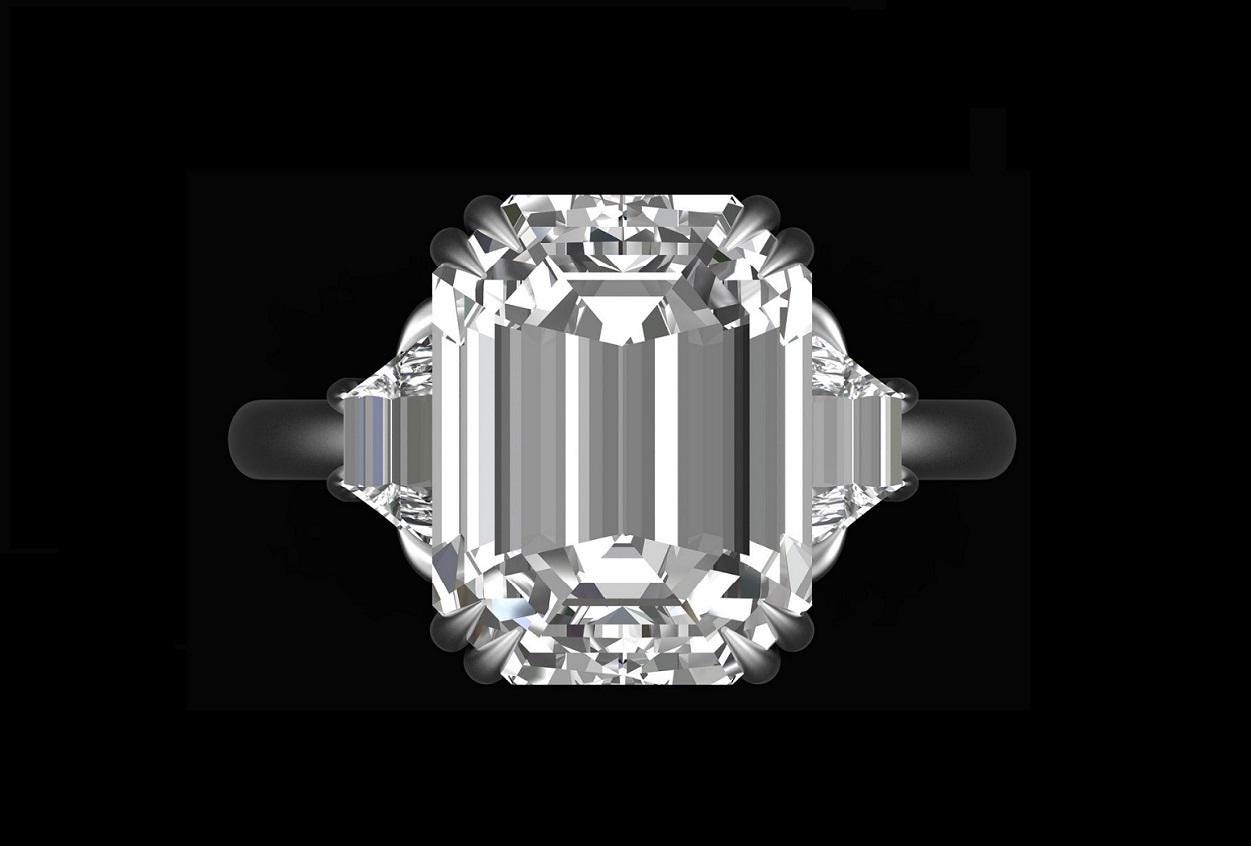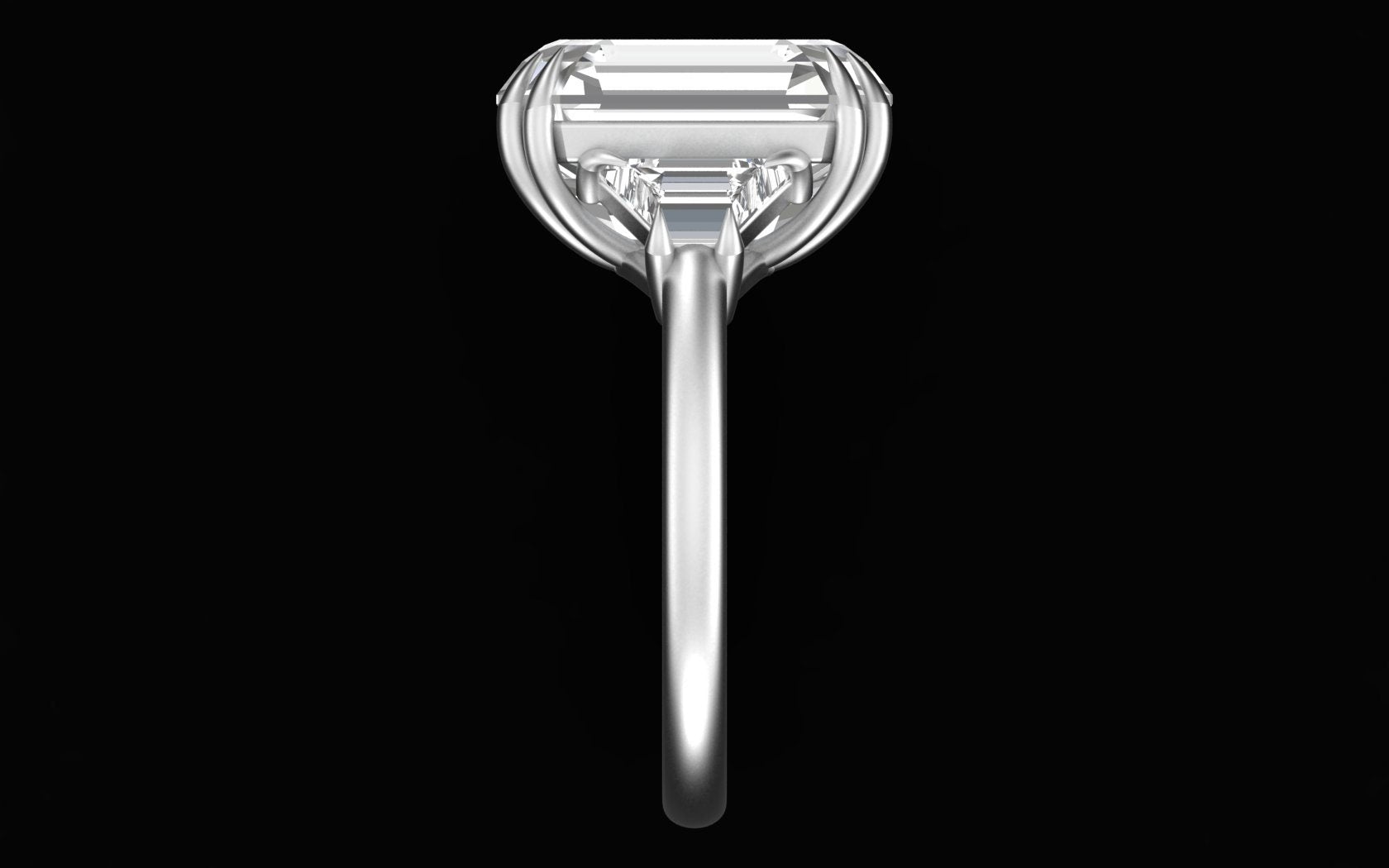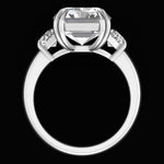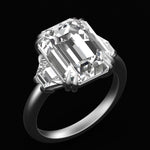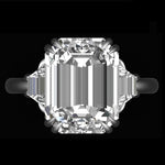 Emerald Shaped Krupp Cut Moissanite Engagement Ring, 14K White Gold Ring With Step Trapezoids, Three Stone Ring, Solitaire Ring