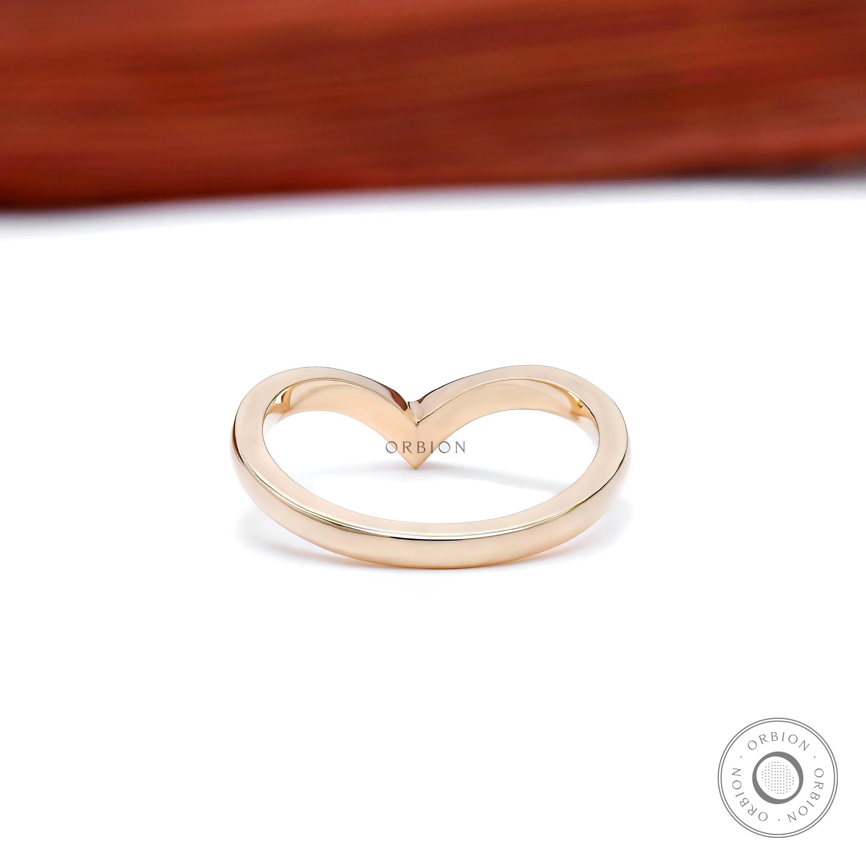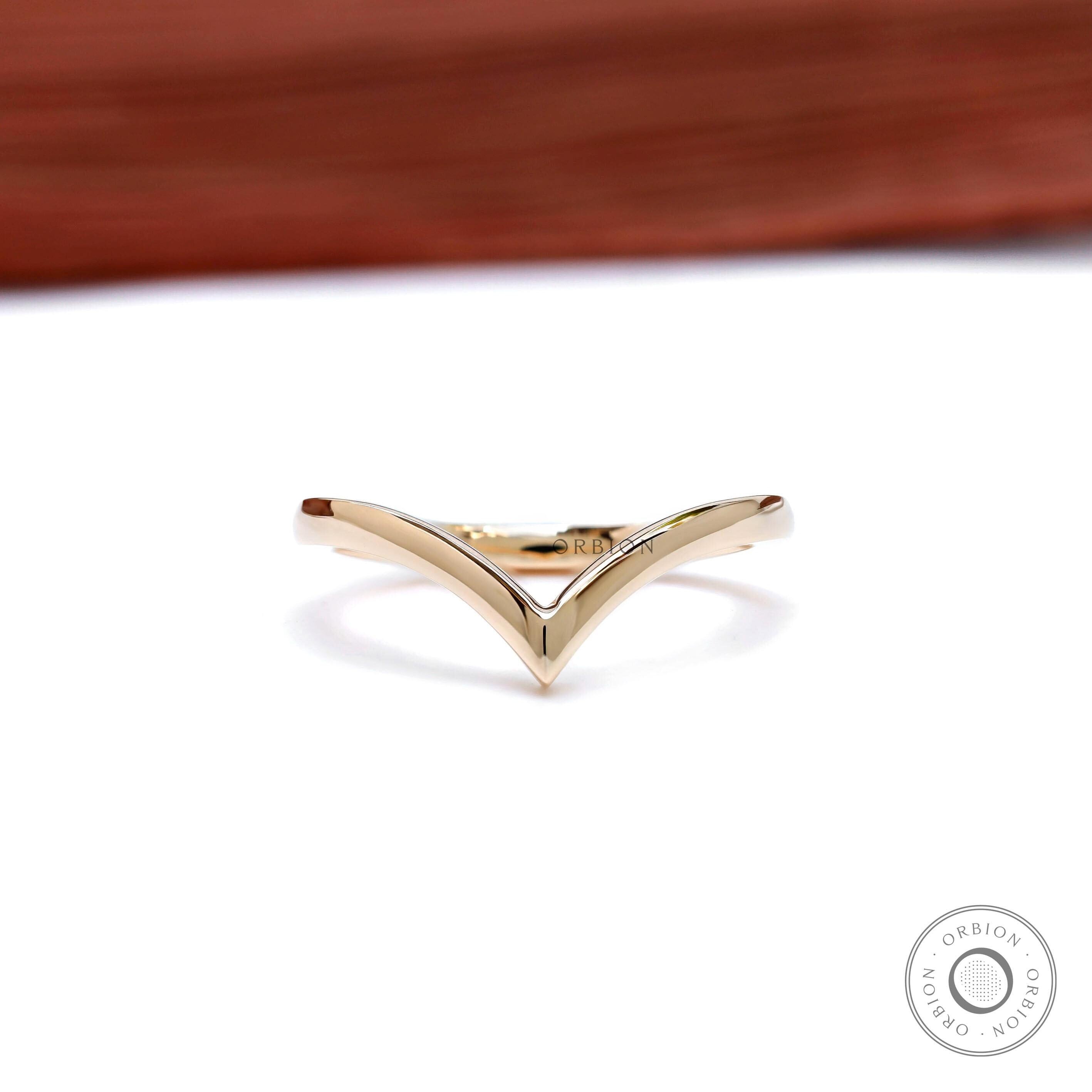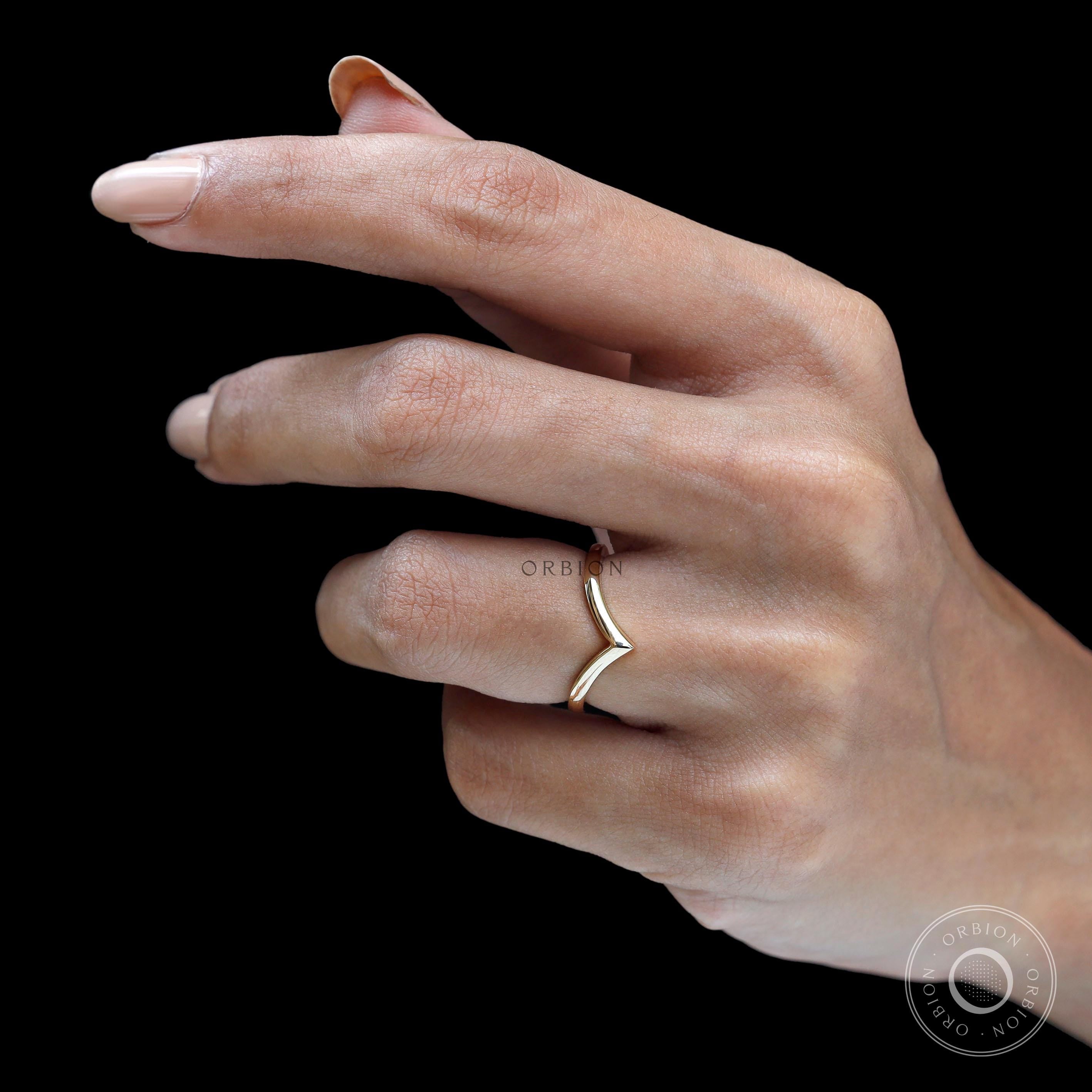 14k Gold Wishbone Ring, Solid Gold Chevron Stacking Ring, Curved Wedding Band, Womens V Shaped Ring, Stackable Thin Gold Band, Contour Ring