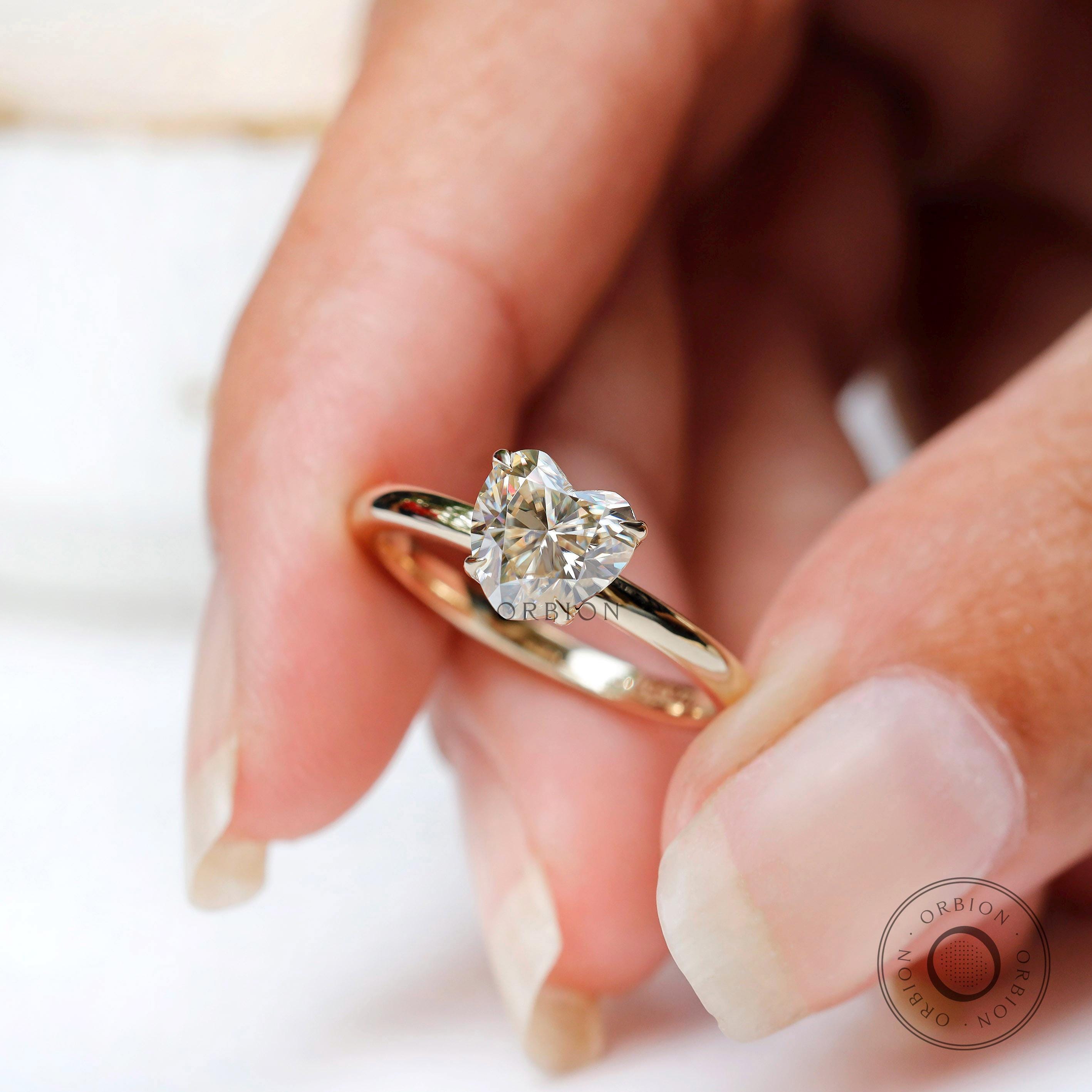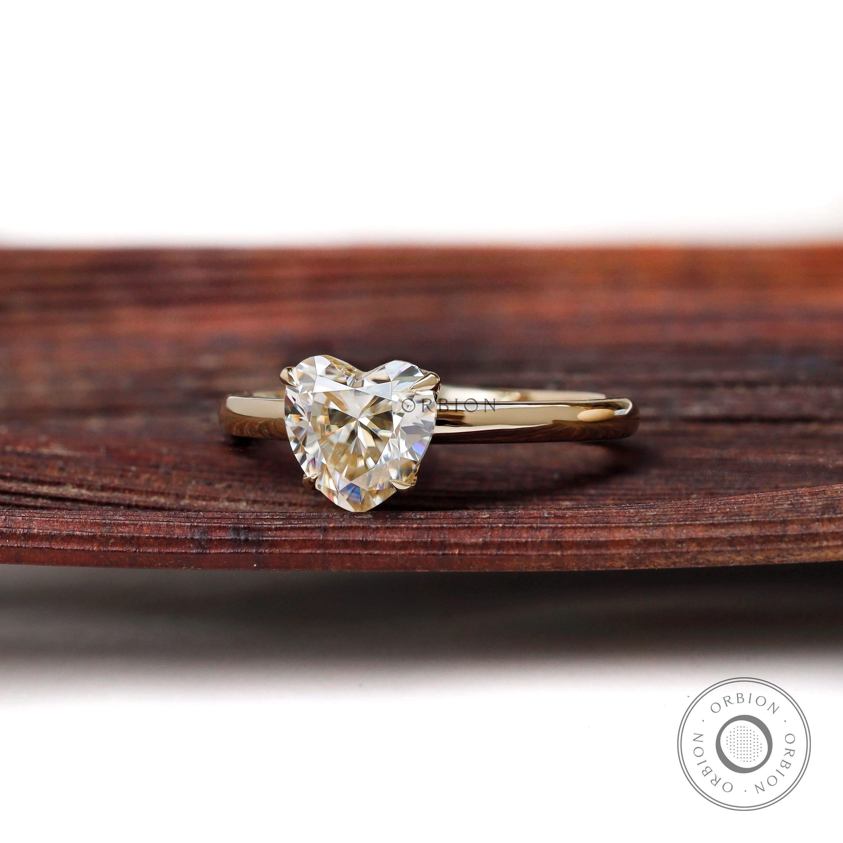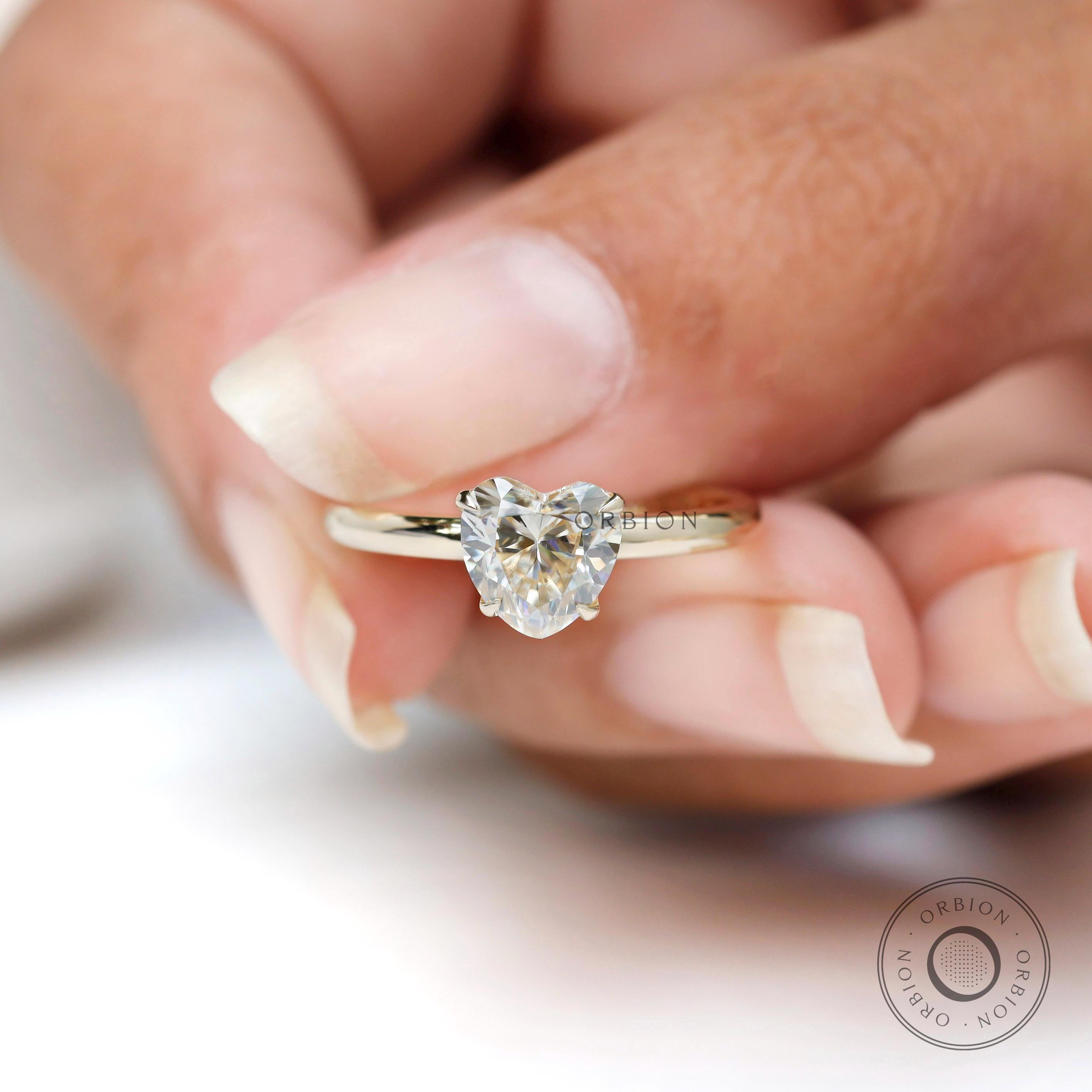 Heart cut off white moissanite ring, Heart engagement ring, 10k,14k,18k Solid yellow gold ring, Proposal ring for her, Anniversary gift, Warm color ( GHI ) moissanite ring, Heart rings for women, Unique wedding ring, Solitaire moissanite ring, Promise ring for her, Best gift for wife