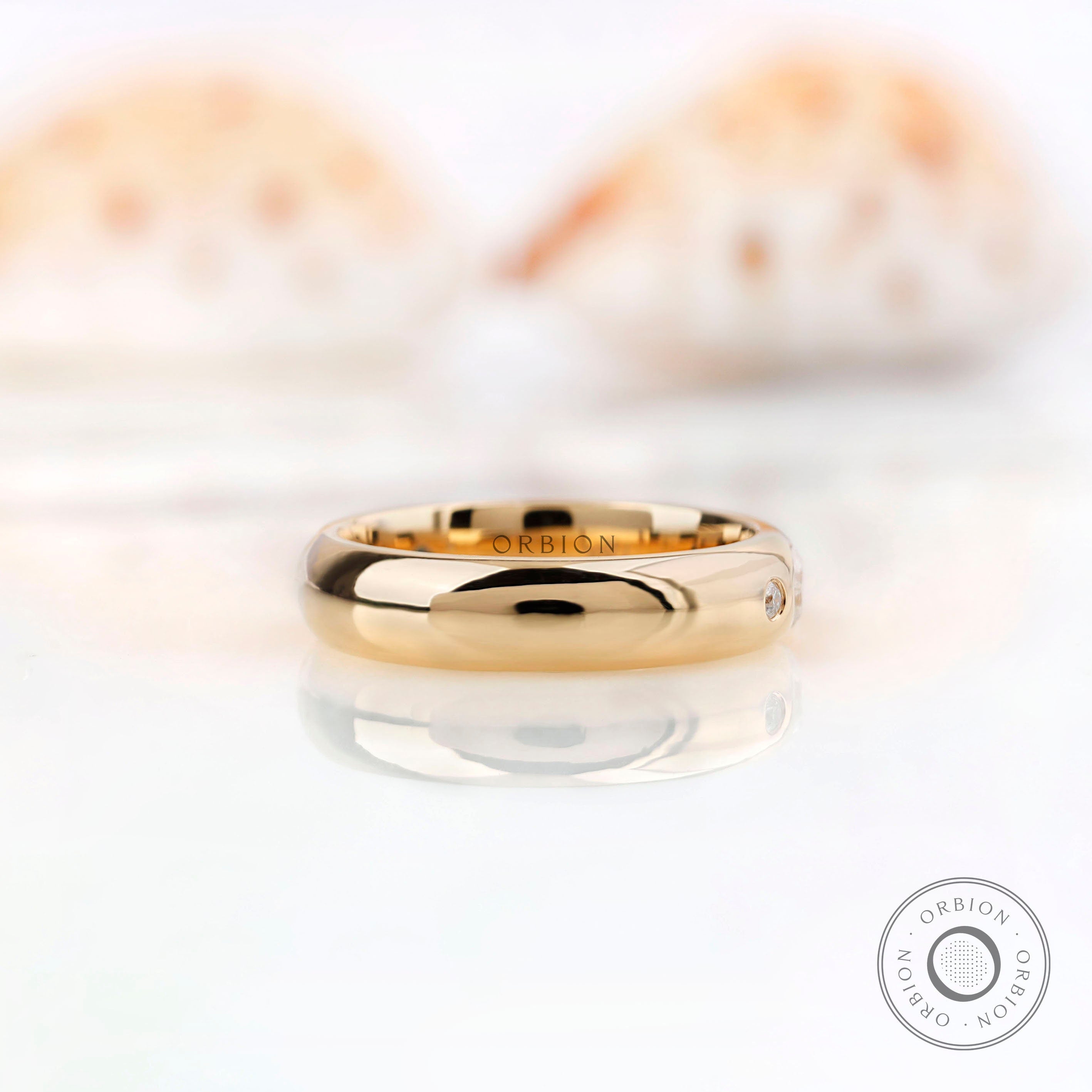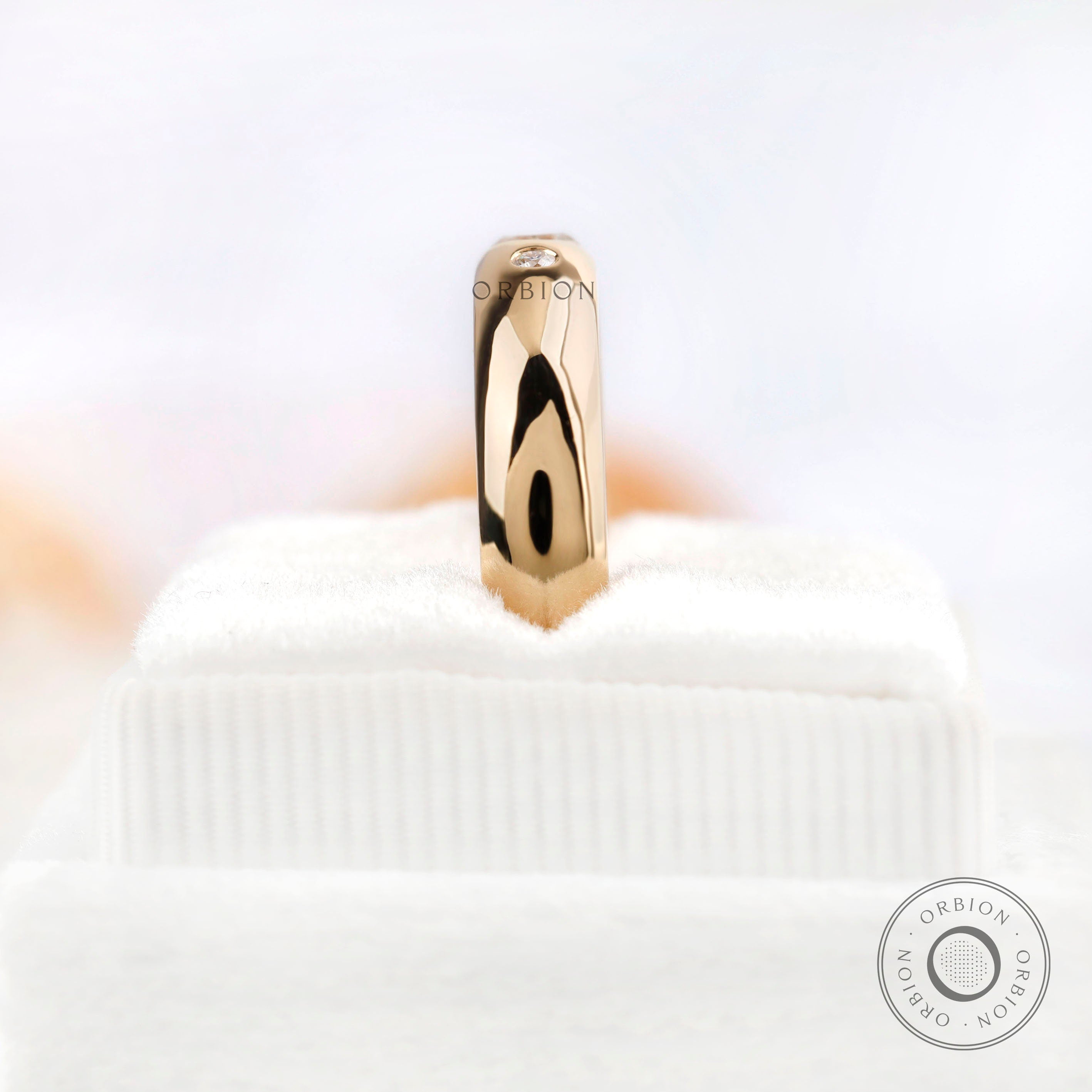 14k Solid Gold Flush Set Asscher Cut Moissanite Wedding Band, Unique Multi Stone Thick Wedding Band, Delicate Unisex Band Ring, Custom Band, Mens Wedding Band, Gold Wedding Band, Β 14k Yellow Gold Band, Anniversary Gift, Wide Moissanite Band, Solid Gold Domed Band