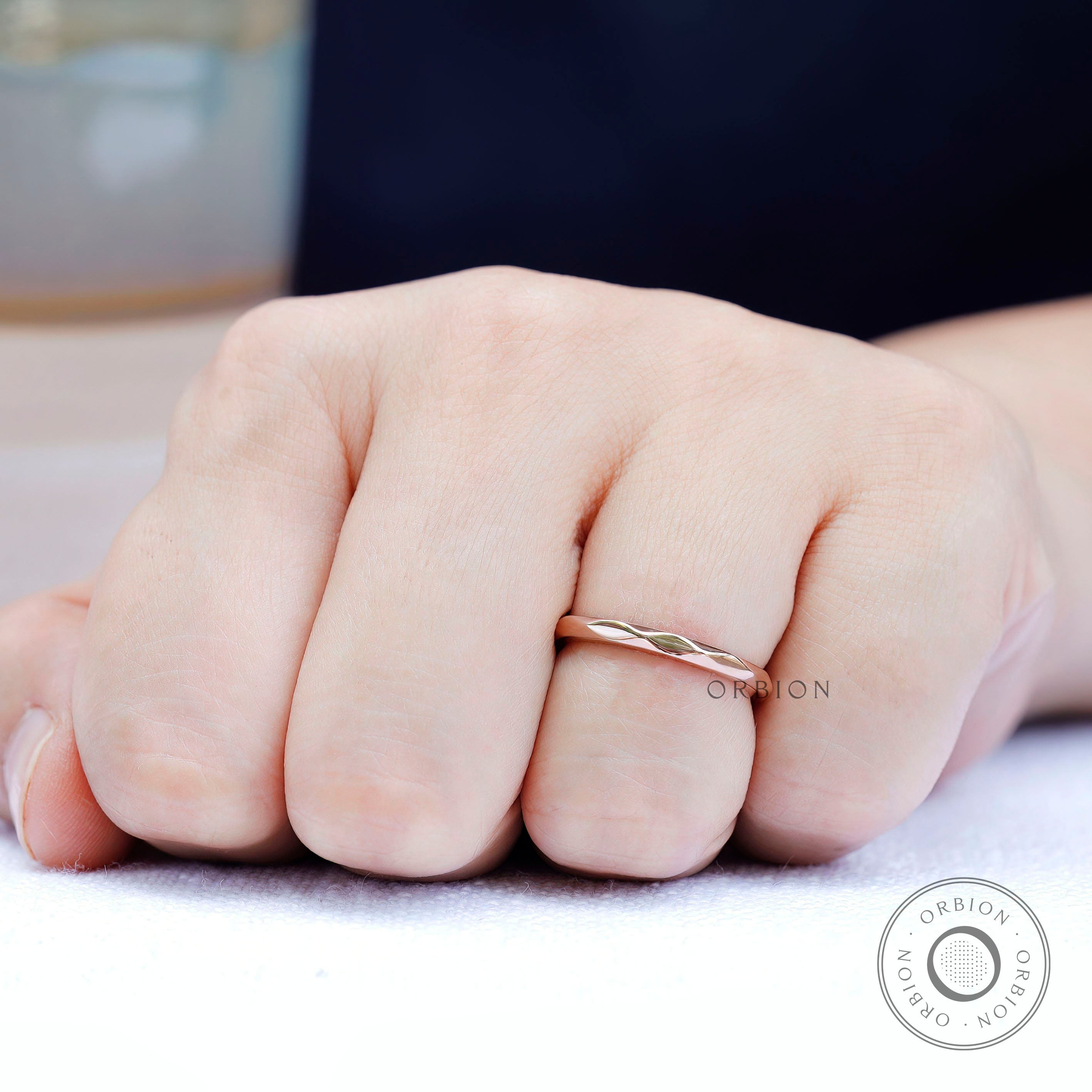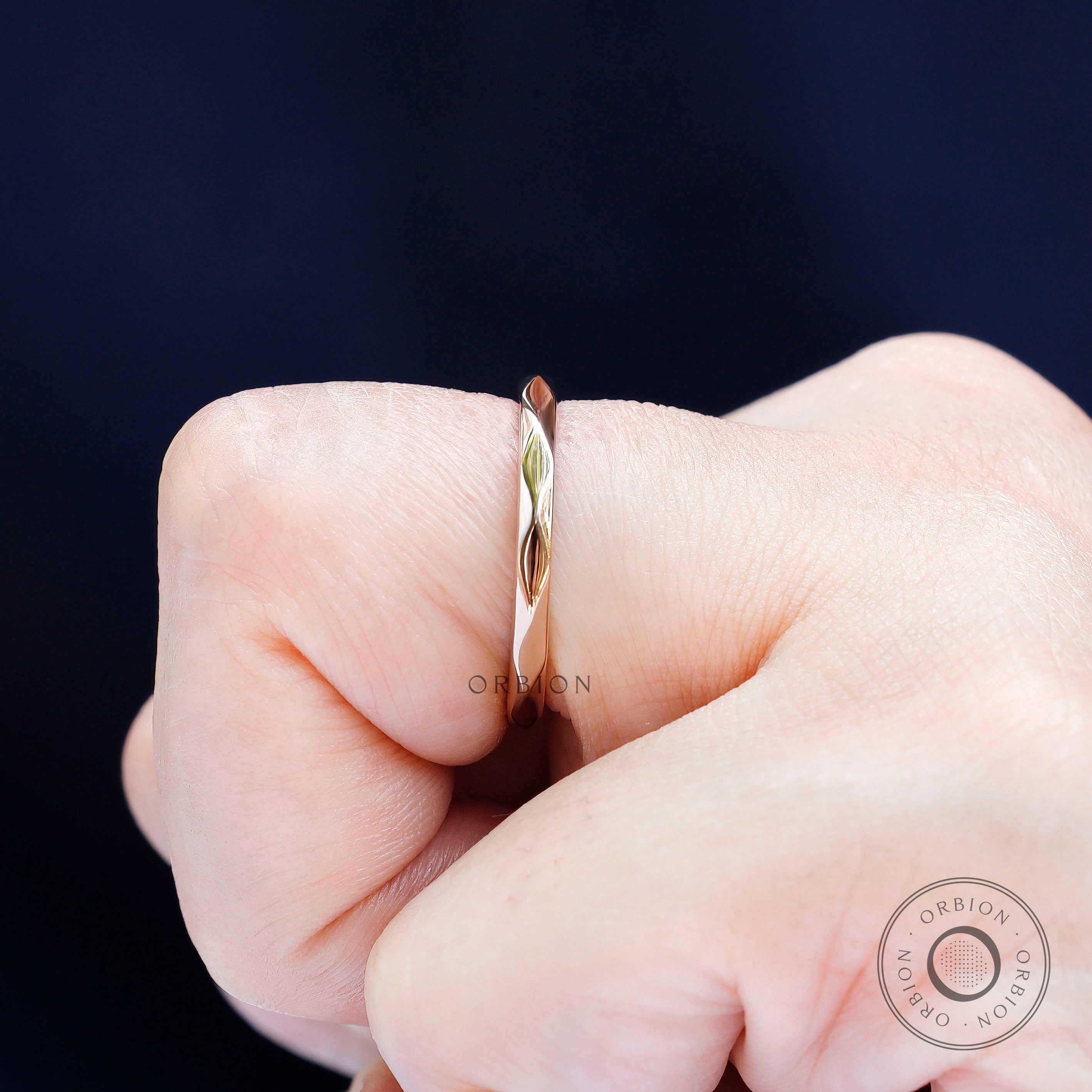 10K Rose Gold Hammered Wedding Band, Geometric Faceted Ring, Solid Gold Patterned Stacking Band Ring, Minimalist Unisex Everyday Band, Simple Wedding Band, Delicate Band, Unique band, Gift for him her, Danity Handmade Band
