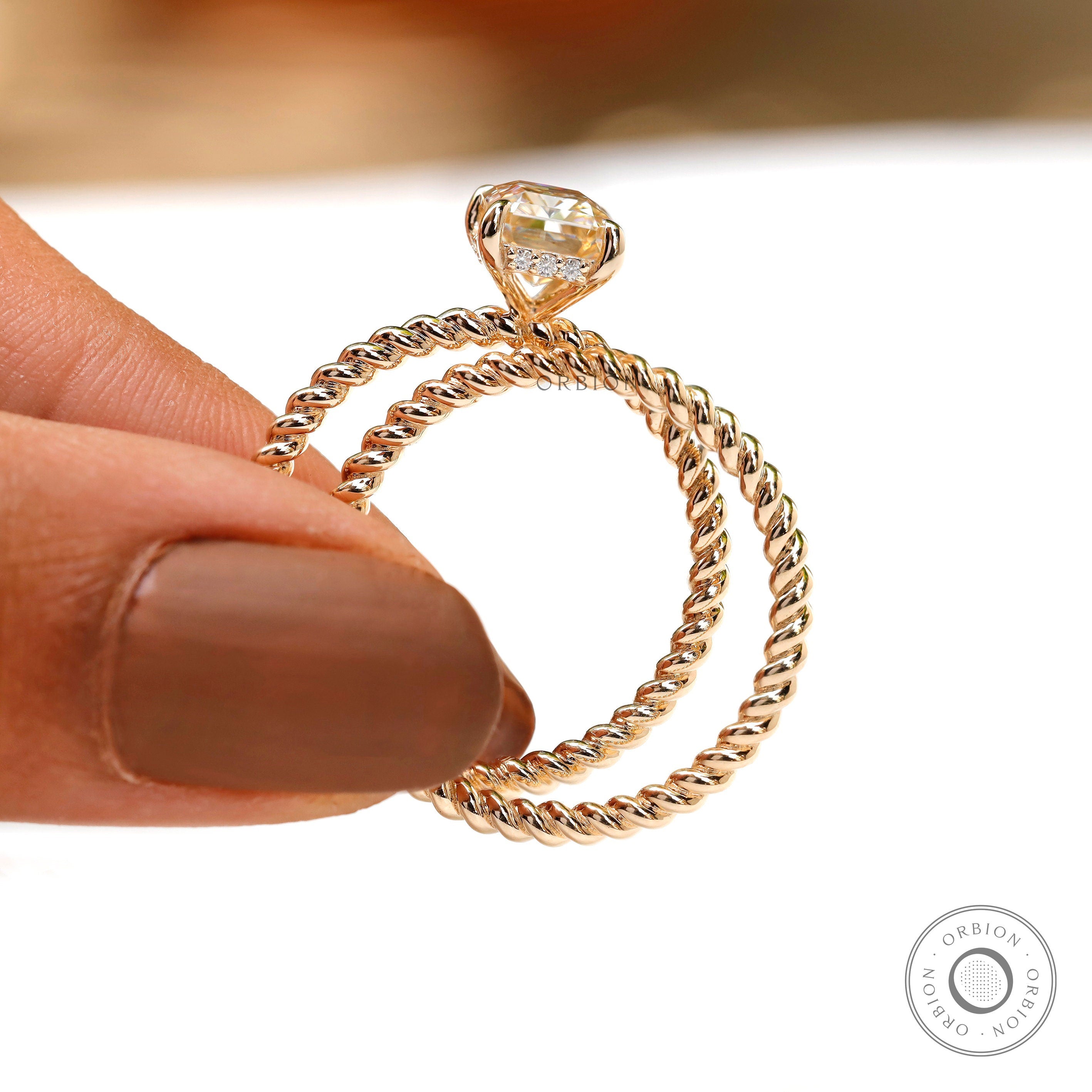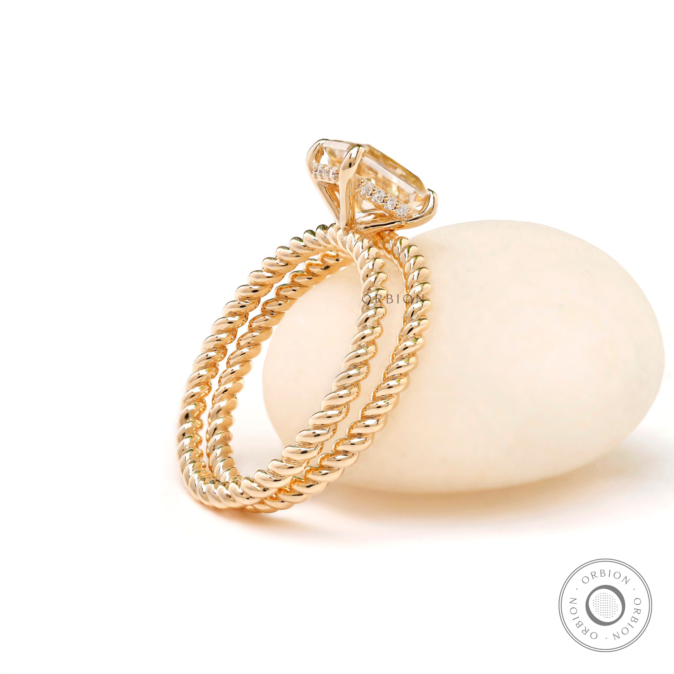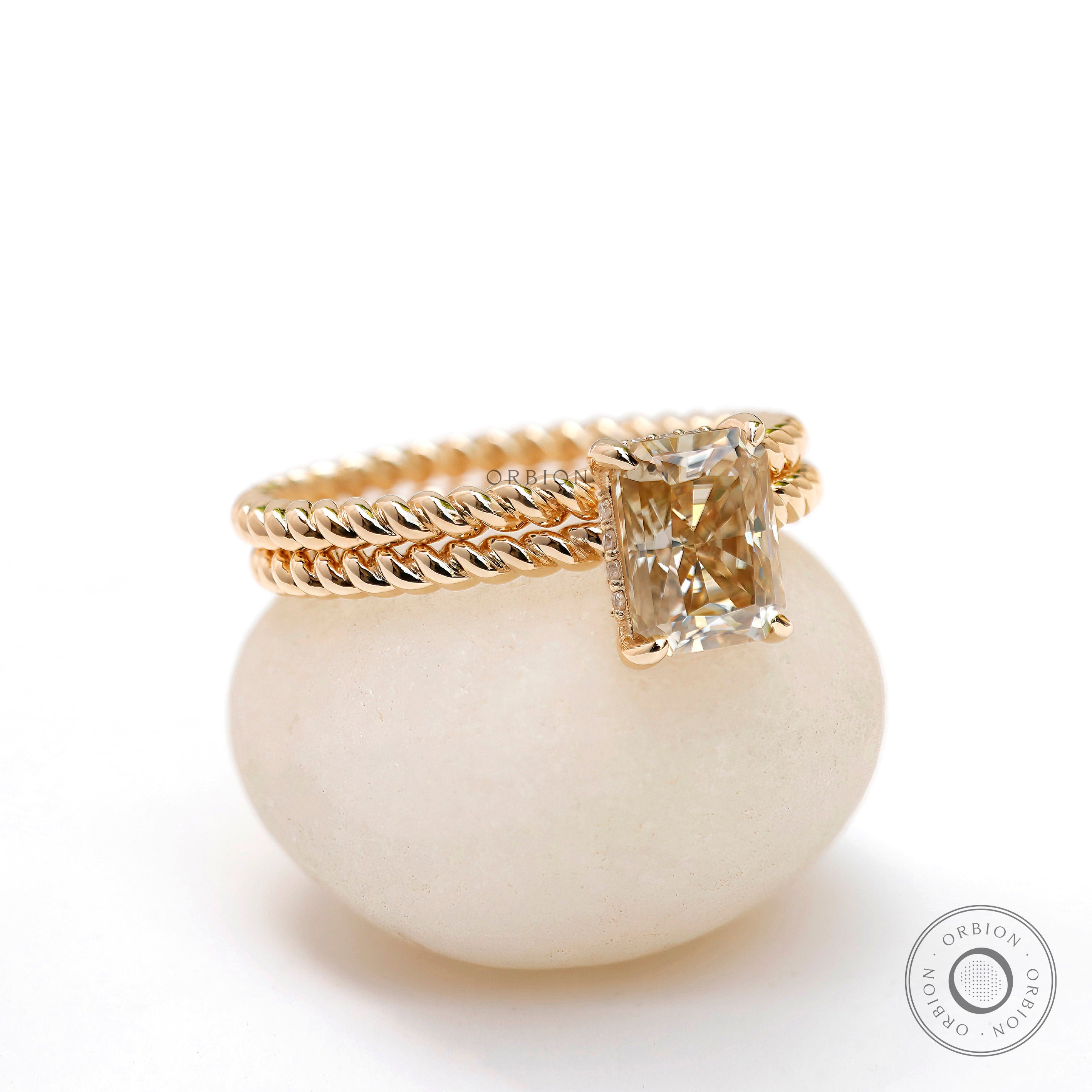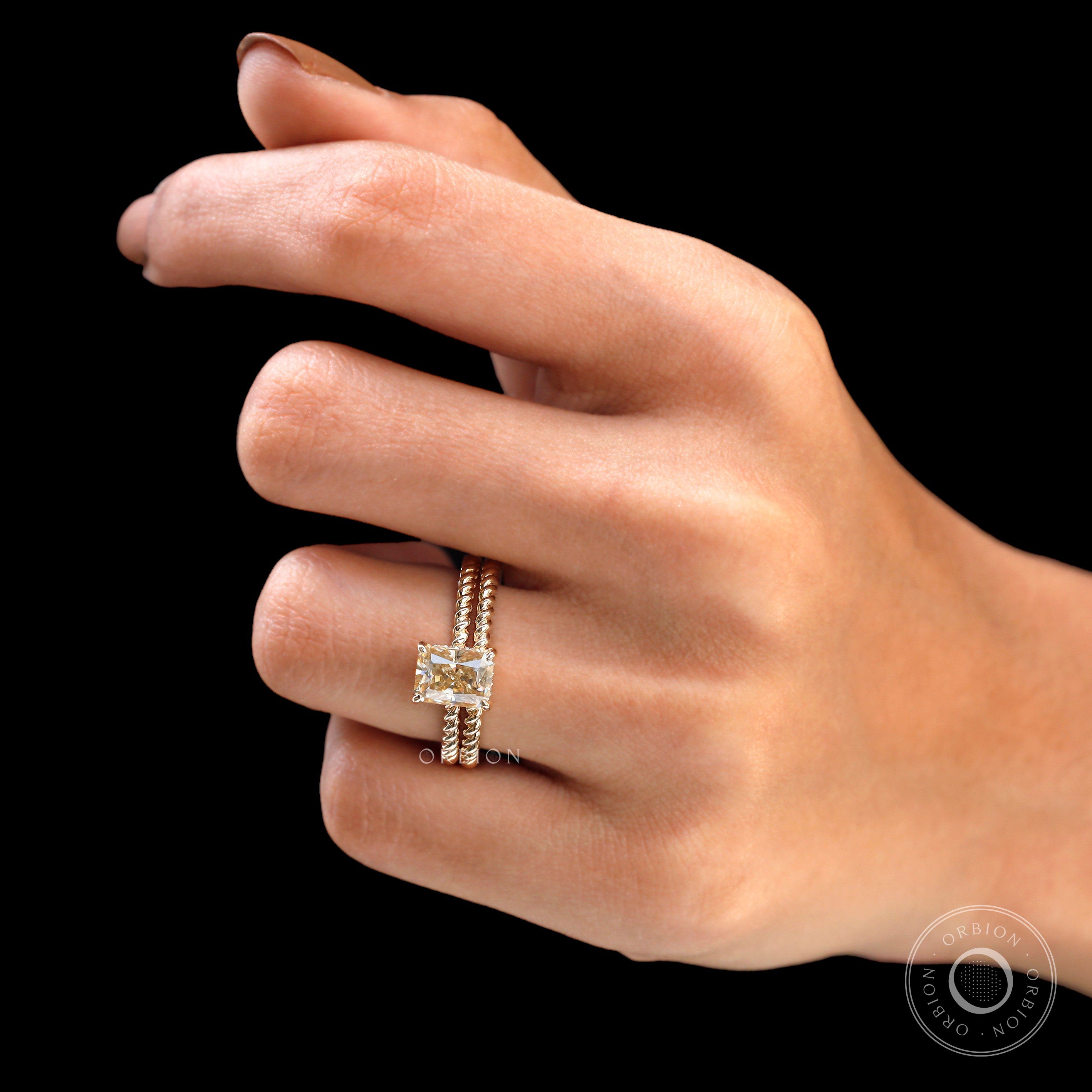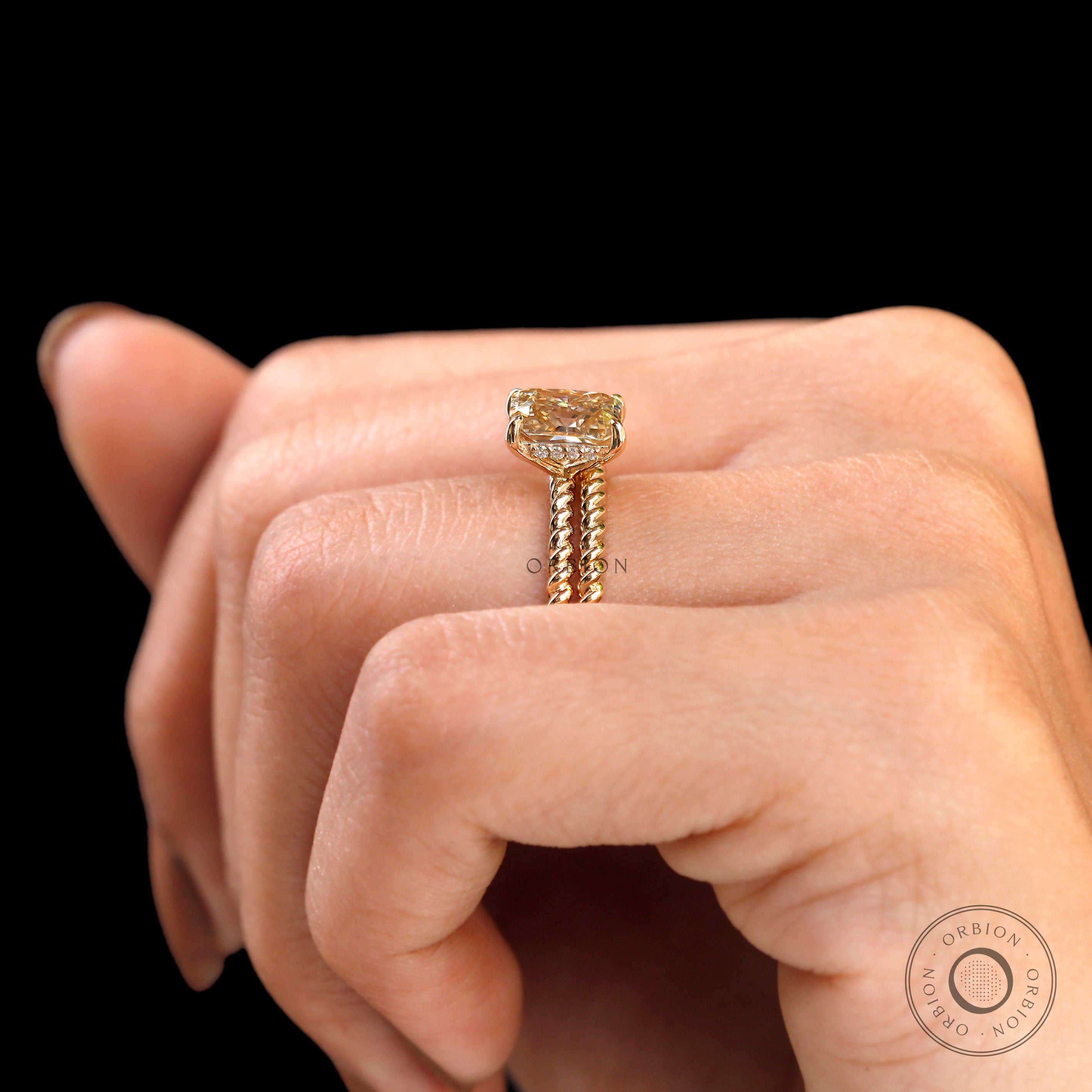 1.7 CT Radiant Cut Champagne Moissanite Bridal Set | 14K Solid Gold Engagement Ring with Twisted Matching Band | Hidden Halo Wedding Ring Set for Women