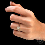 14K Solid Gold Radiant Cut Moissanite Bridal Ring Set, Hidden Halo Engagement Ring Set, Modern Champagne Moissanite Ring Set Bridesmaid Gift