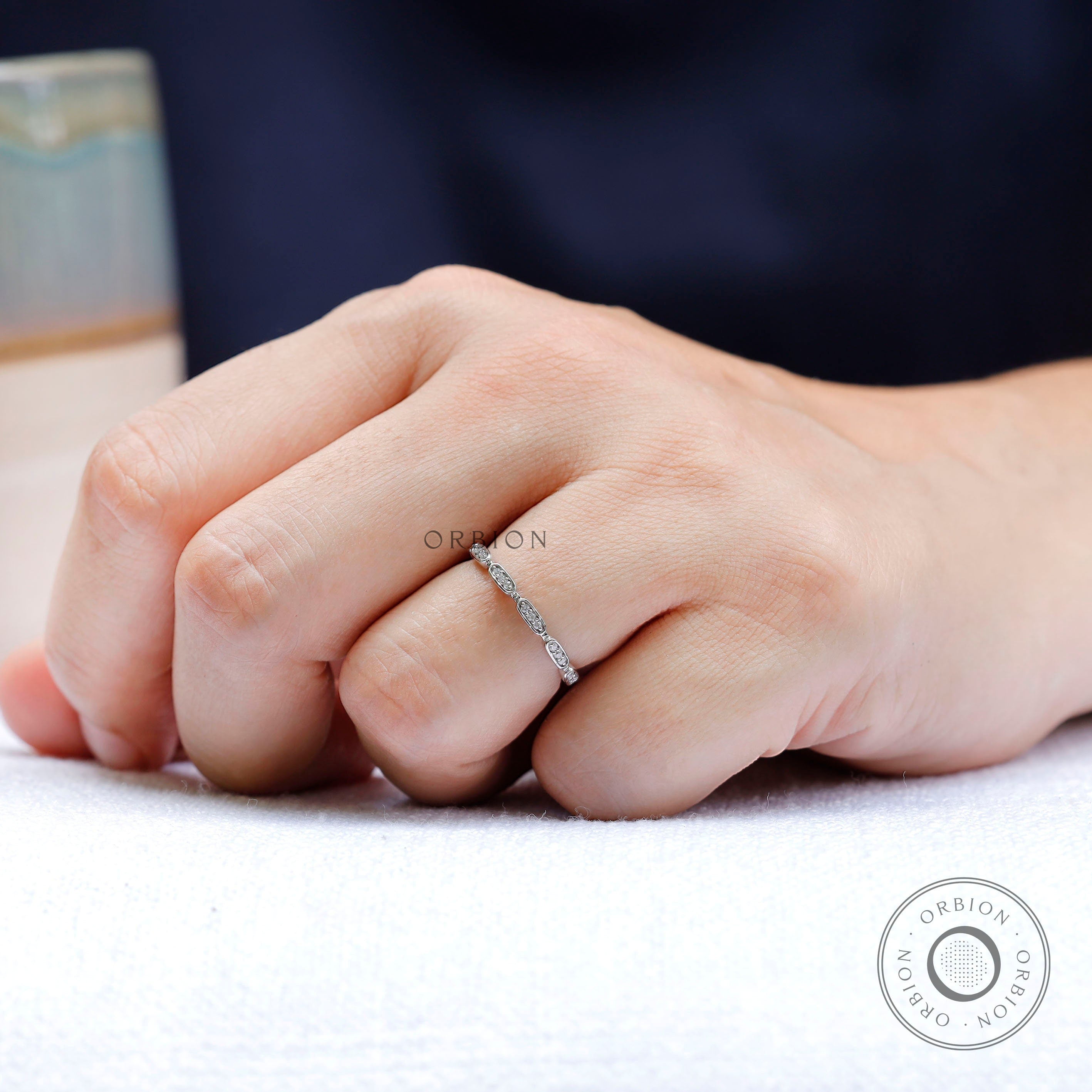 10k/14K/18k White Gold Moissanite Wedding Band, Half Eternity Lab Diamond Ring, Delicate Stacking Matching Band, Vintage Wedding Band, Gift For Her, Simple Wedding Band, Gold Wedding Band, Dainty Wedding Band, Unique Wedding Band, Thin Gold Band, Diamond Wedding Band, Round Diamond Band