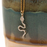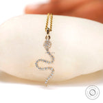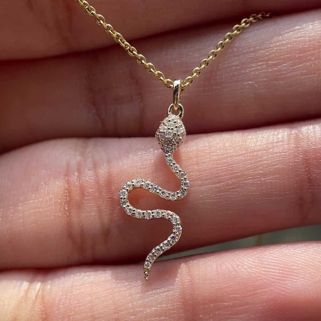 18k Solid Yellow Gold Moissanite Snake Pendant, Animal Pendant, Delicate Snake Charm Pendant, Diamond Studded Minimal Serpent Pendant