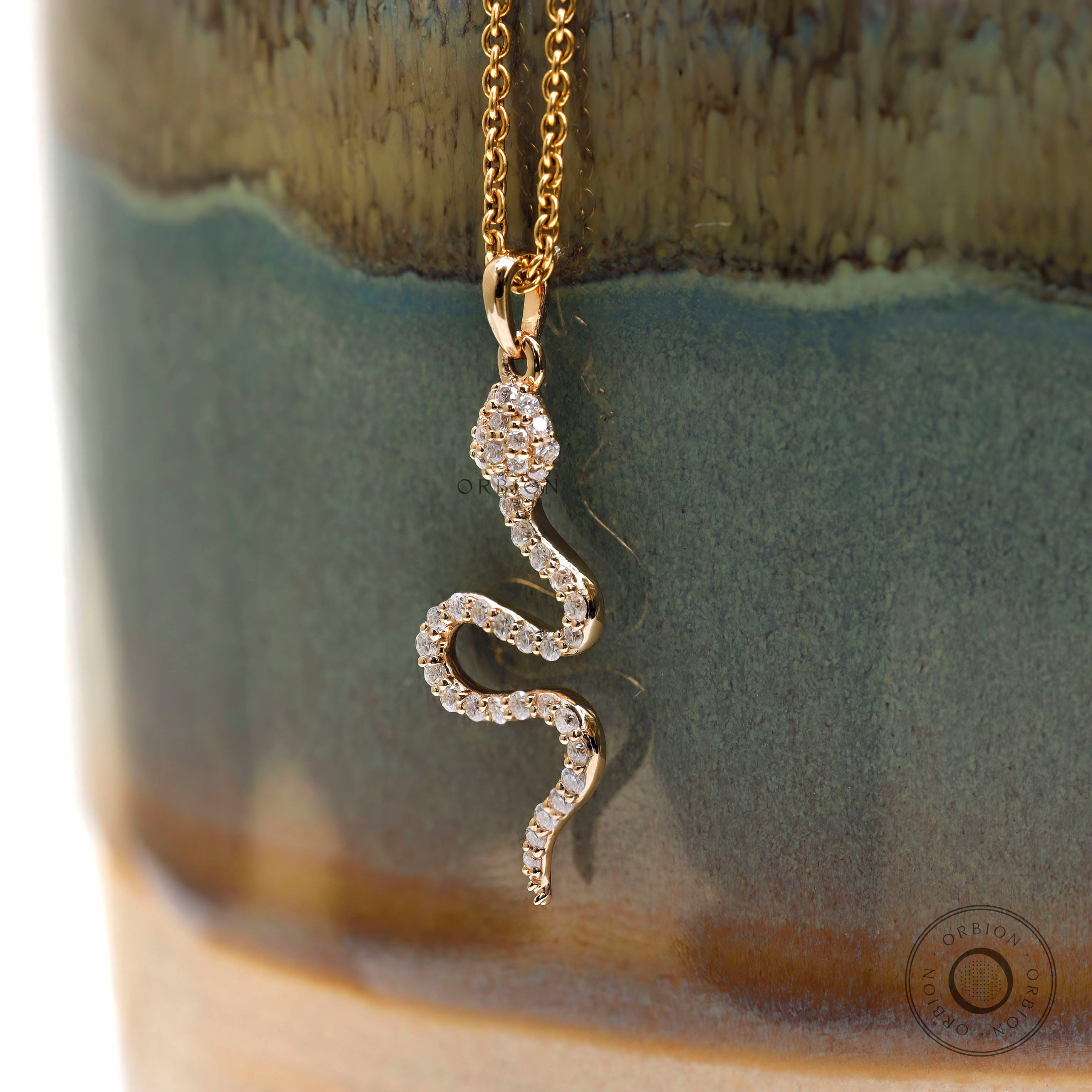 10k/14k/18k Solid Yellow Gold Moissanite Snake Pendant, Delicate Snake Chain, Delicate Charm Necklace, Vintage Style Serpent Pendant, Gold Snake Pendant, Diamond Pendant, Pave Diamond Pendant, Hip Hop Pendant, Handmade Jewellery, Wedding Gift, Gift For Her, Anniversary Gift