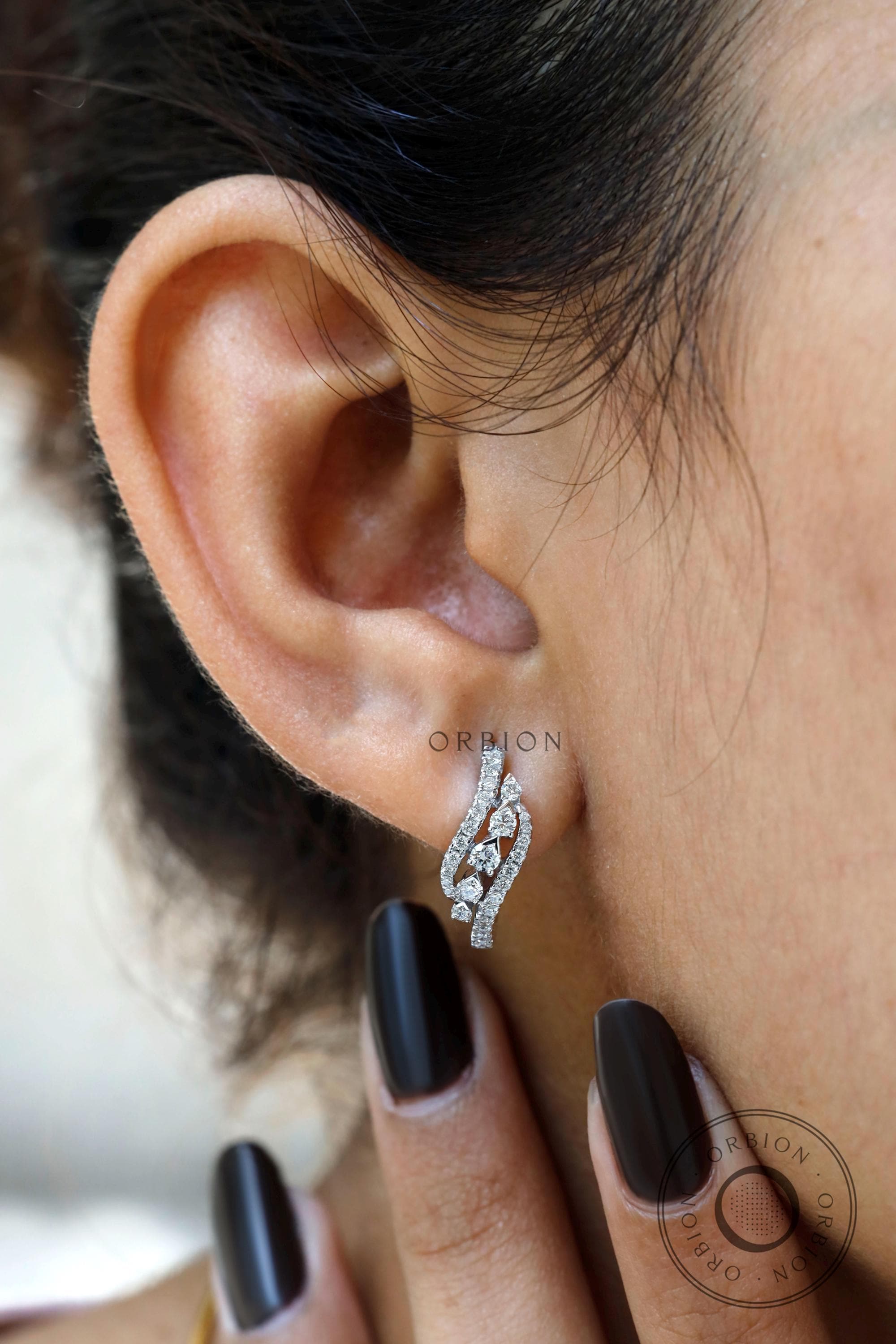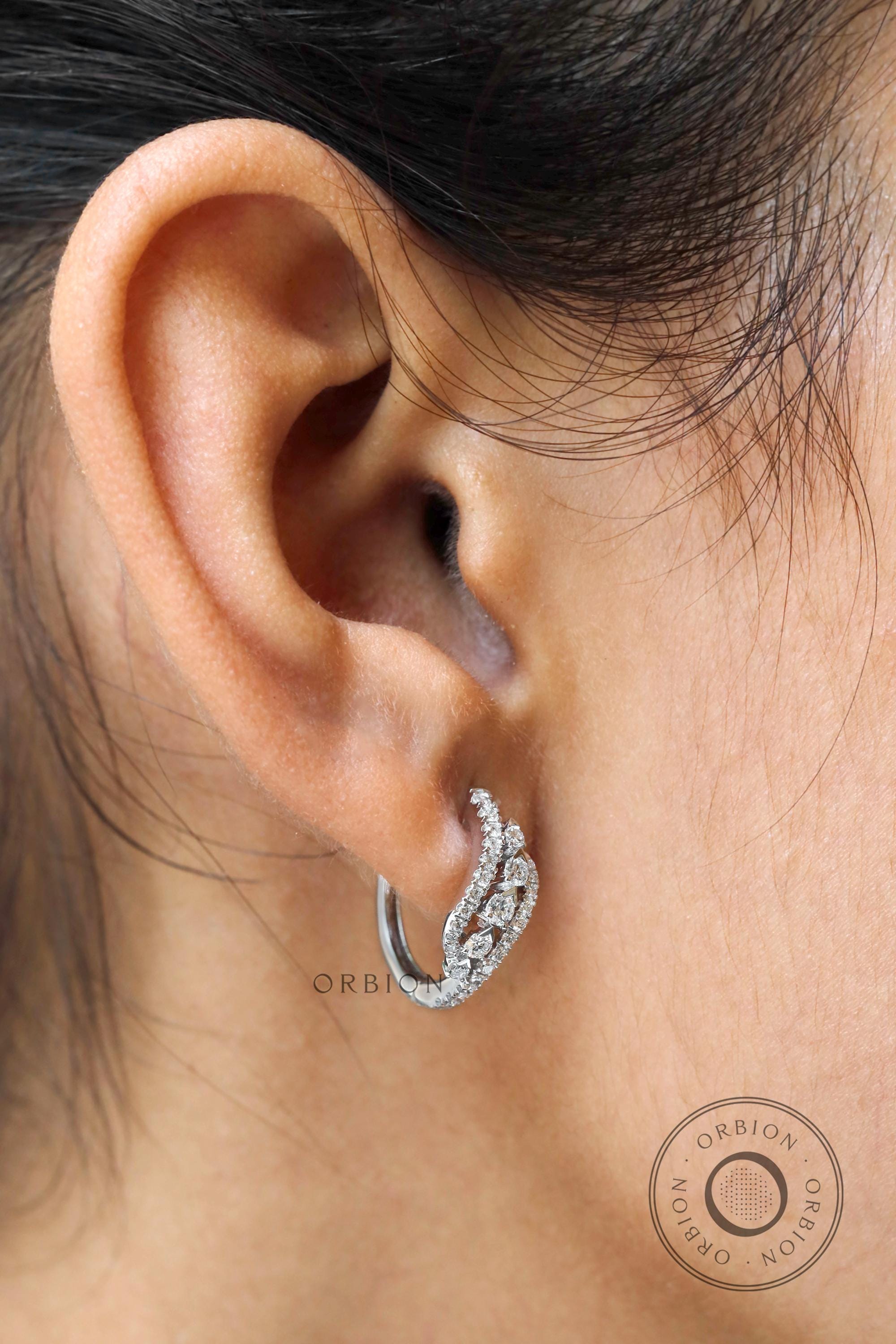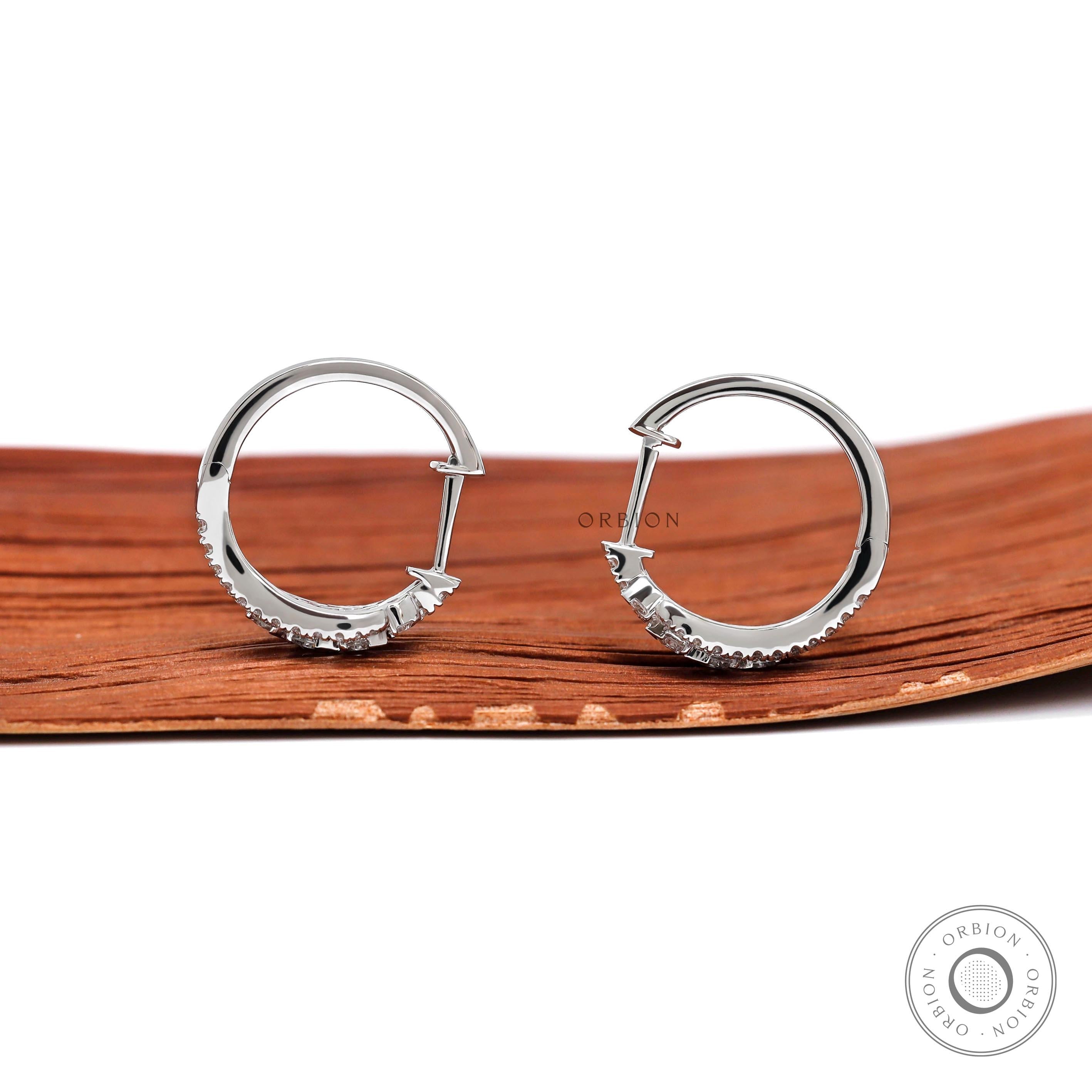 18k White Gold Round Lab Grown Diamond Hoop Earrings For Women, Statement Earrings, Diamond Huggie Hoop Earrings, Cluster Diamond Earrings