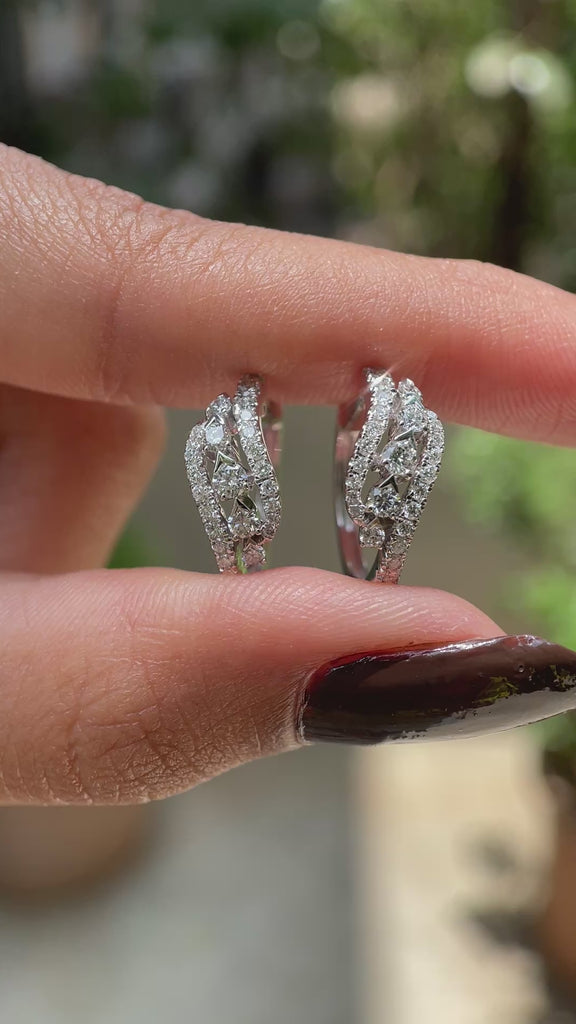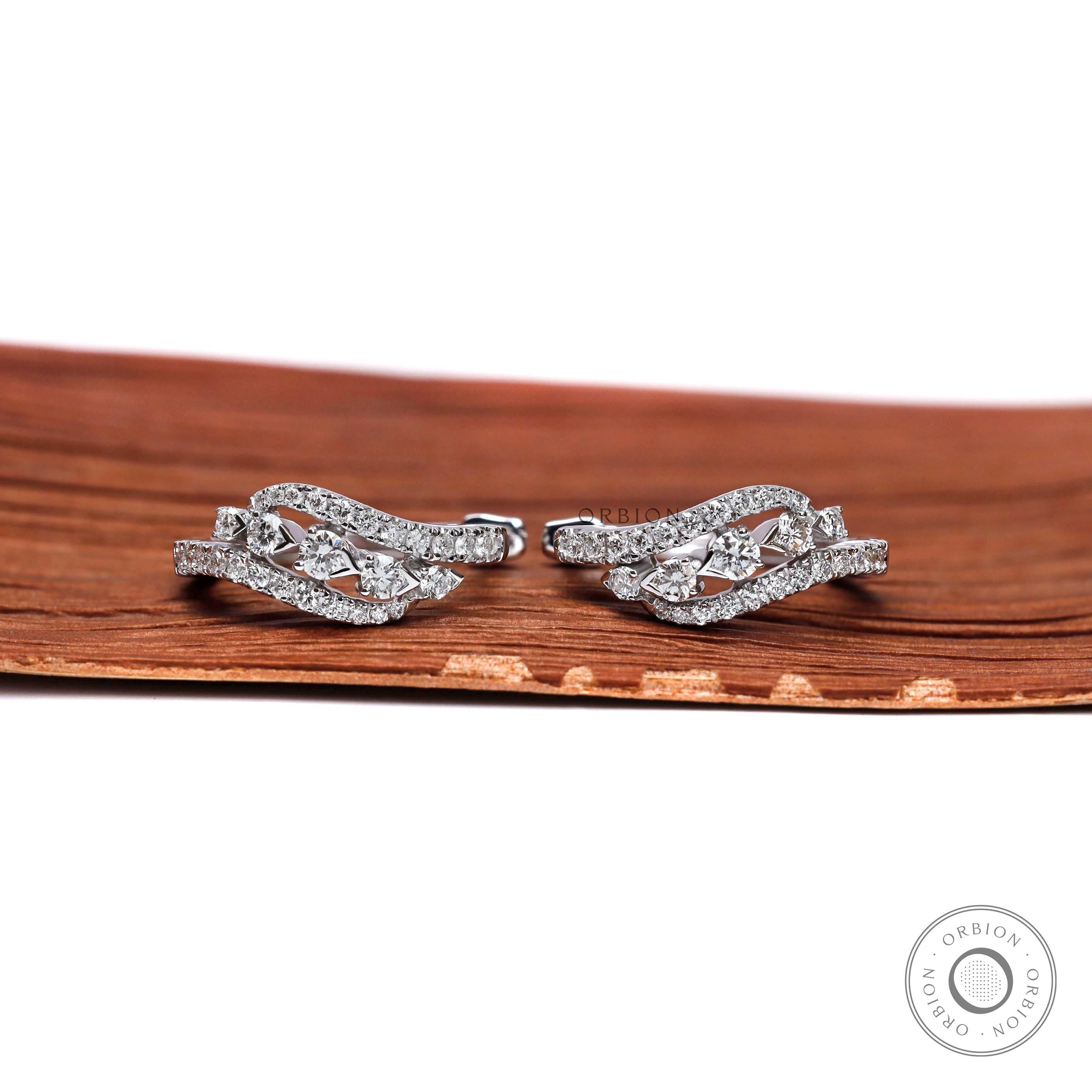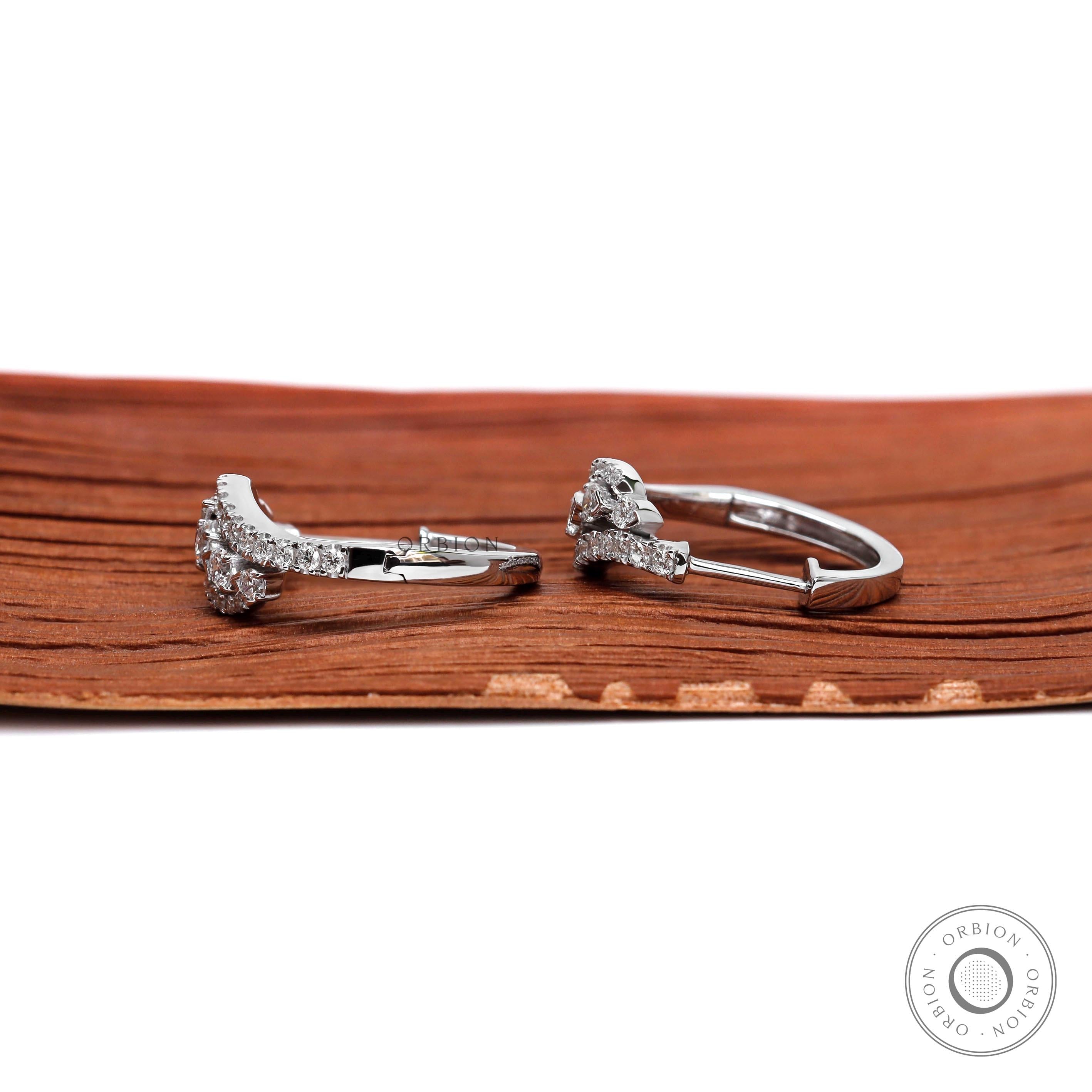18k White Gold Round Lab Grown Diamond Hoop Earrings For Women, Statement Earrings, Diamond Huggie Hoop Earrings, Cluster Diamond Earrings