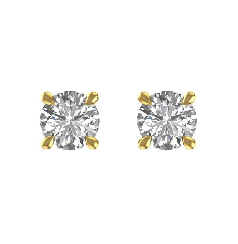 1CT 14k Yellow Gold Round Cut Moissanite Stud Earrings For Women, Moissanite Earrings, Gold Earrings For Wedding, Stud Earrings For Her