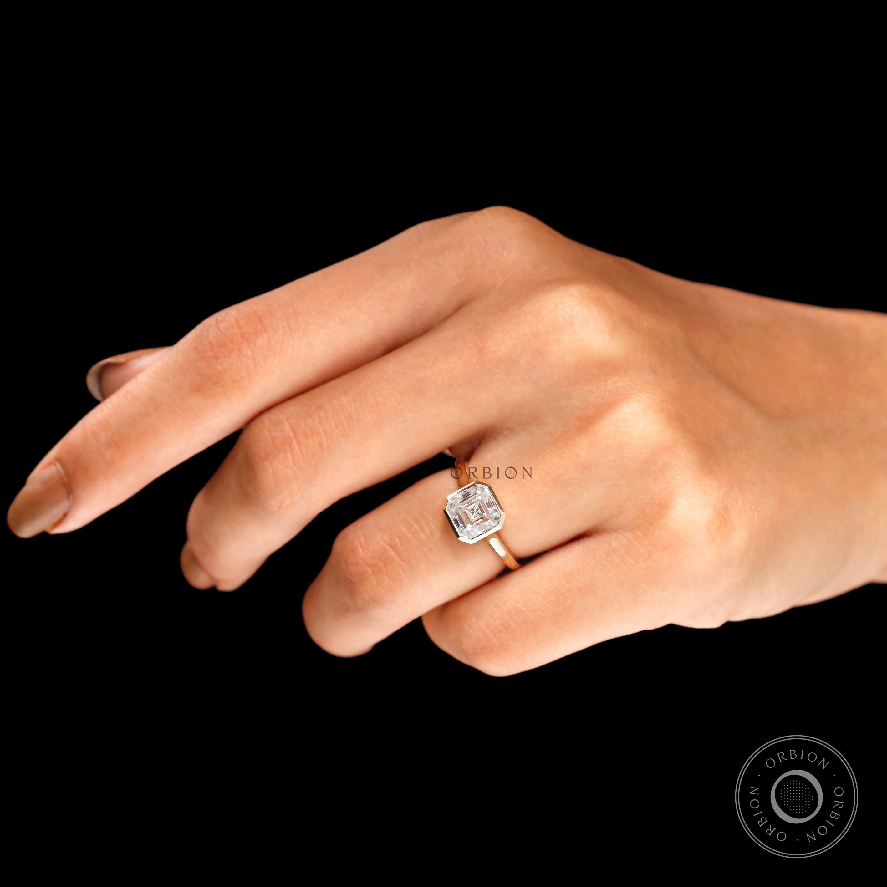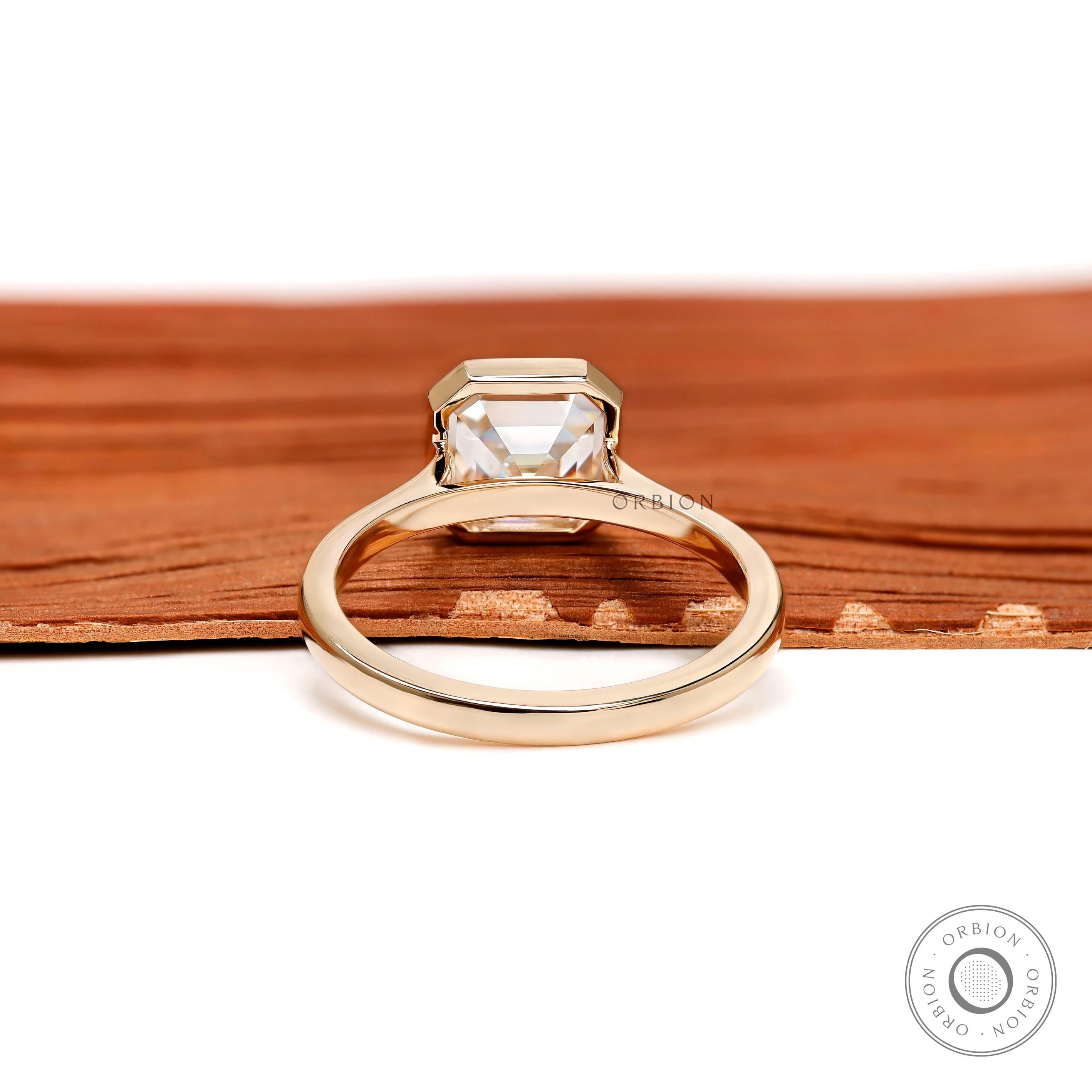 2 Ct Asscher Cut Moissanite Bezel Engagement Ring 14k Yellow Gold Solitaire Step Cut Cathedral Wedding Promise Ring For Women