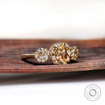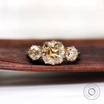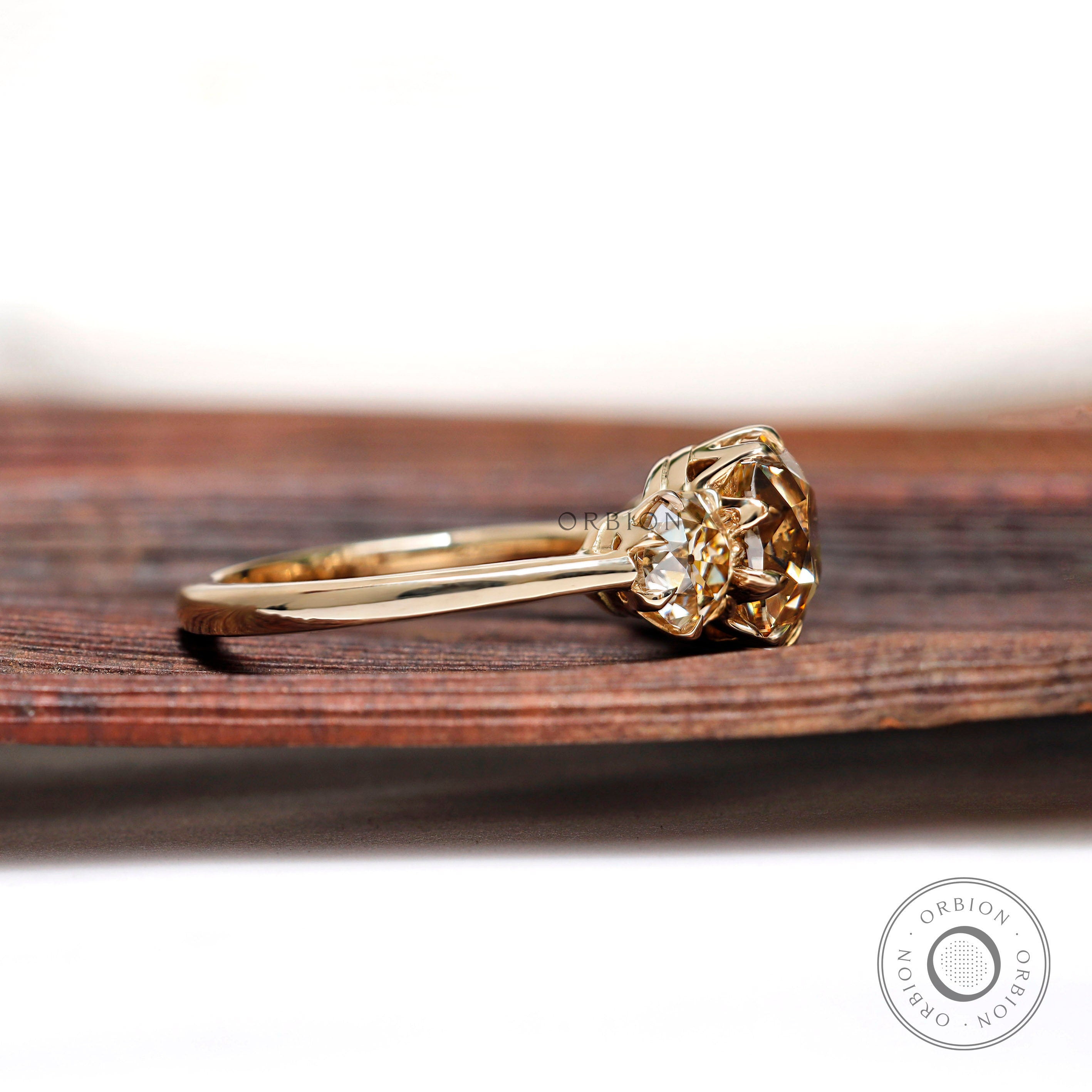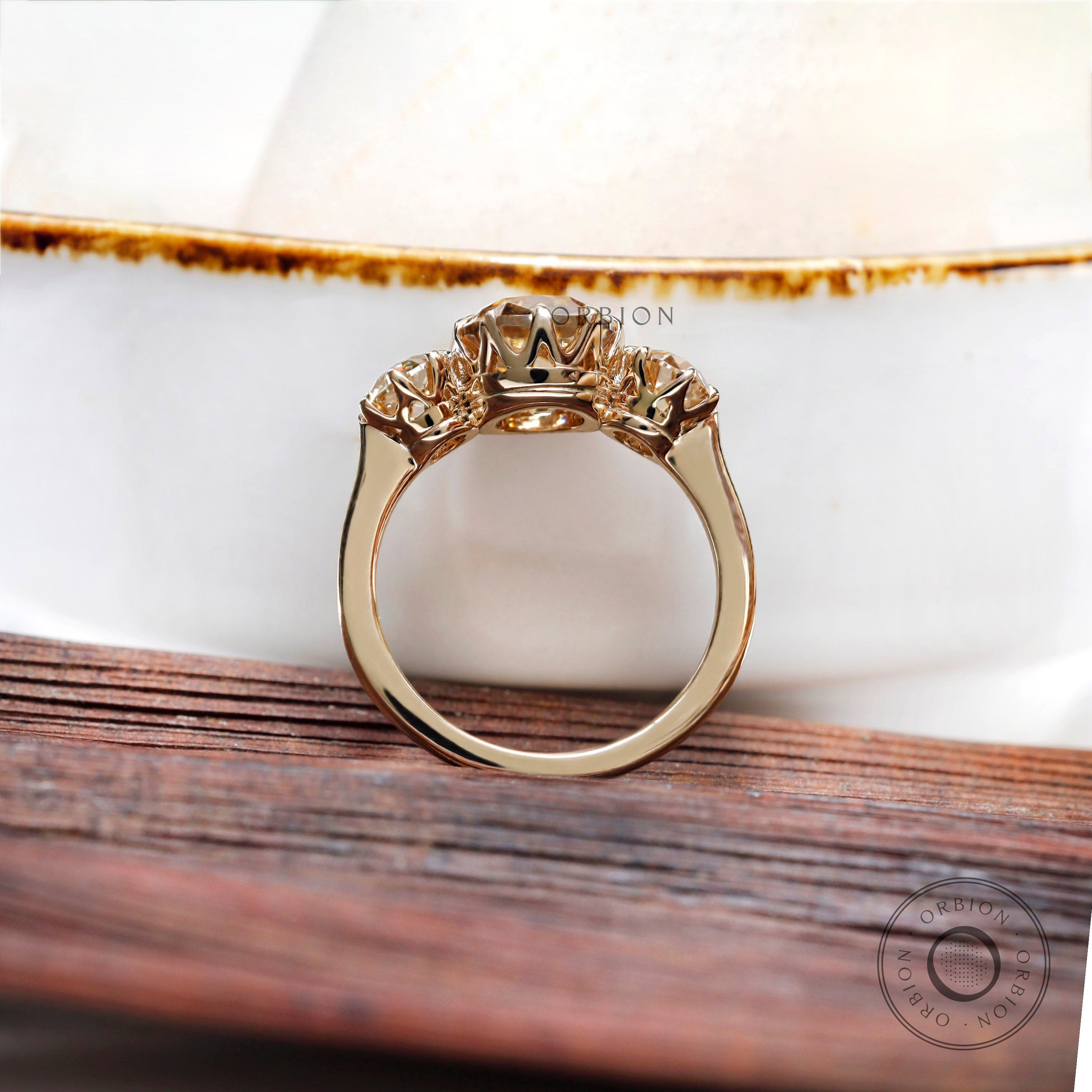3 Stone moissanite engagement ring, 3 stone vintage ring, 3 Stone color ring, Trilogy moissanite ring, Trilogy engagement ring, Old cut rings, Georgian ring, 3 Stone antique ring, Champagne moissanite ring, Champagne diamond ring, Anniversary ring for her, OEC Side stone ring, Vintage style ring, OMC Moissanite ring, Old european cut ring.