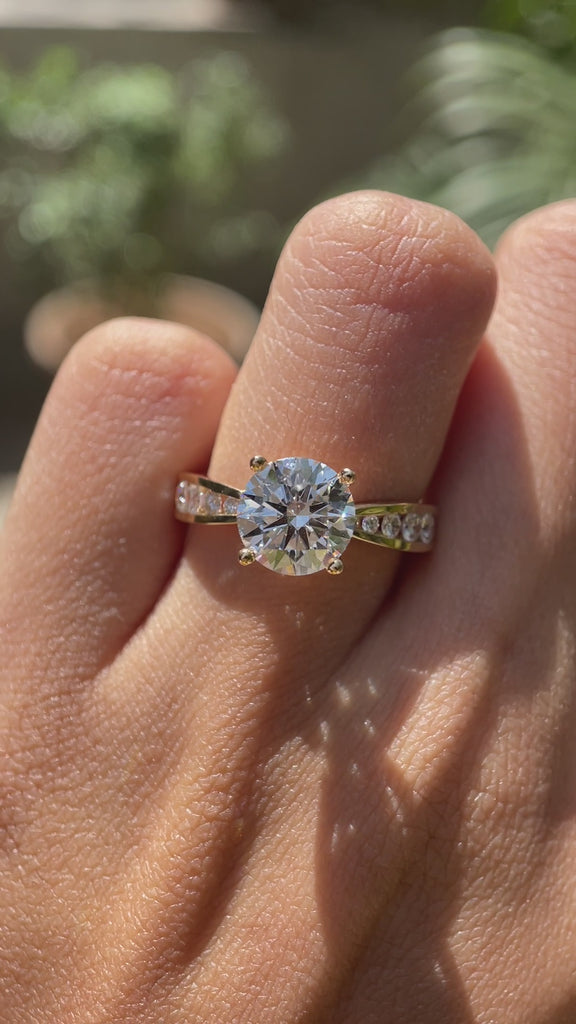 2 Carat Diamond Ring, Round Lab Diamond Ring, Channel Set Ring, Solitaire Diamond Ring, Solitaire Engagement Ring, Yellow Gold Engagement Ring, Yellow Gold Promise Rings, Lab Diamond Engagement Ring, Lab Grown Diamond Ring, Lab Created Diamond Ring, Round Moissanite Engagement Ring, 2 Carat Moissanite Engagement Ring, 2 Ct Round Moissanite Ring