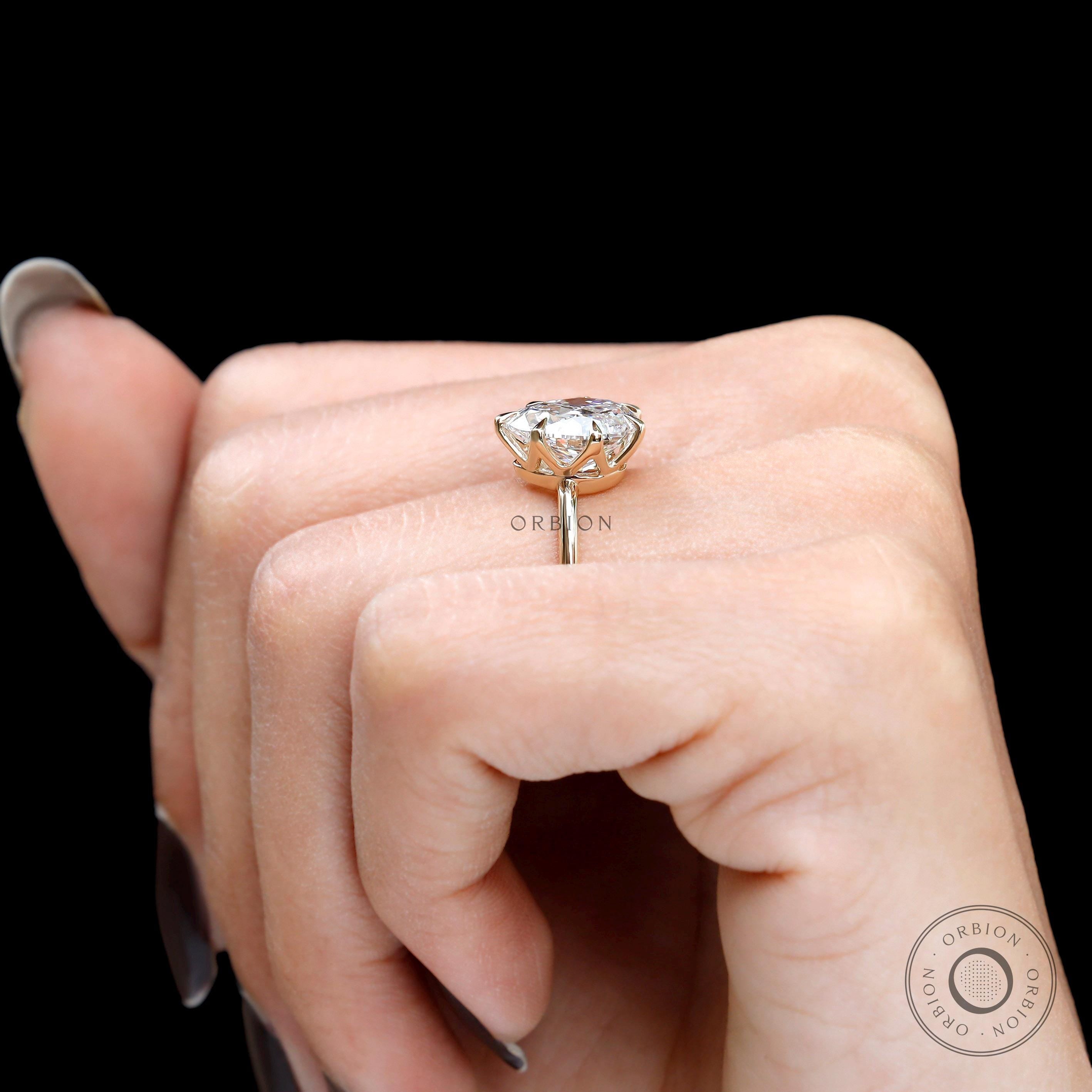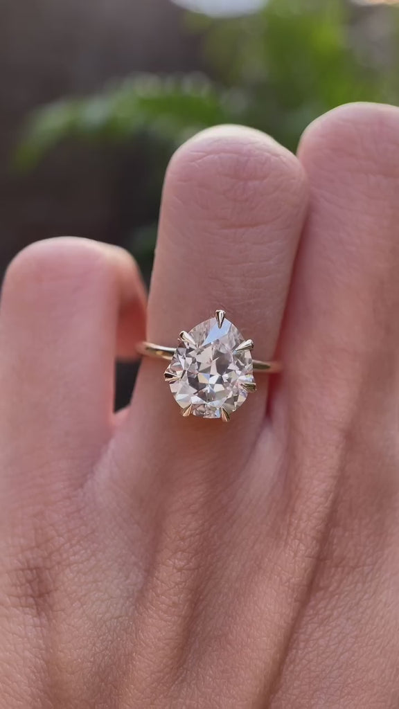 3 CT Fat Pear Unique Custom Cut Lab Grown Diamond Ring, Georgian Style Round Shank Vintage Ring in Yellow Gold, Antique Engagement Ring