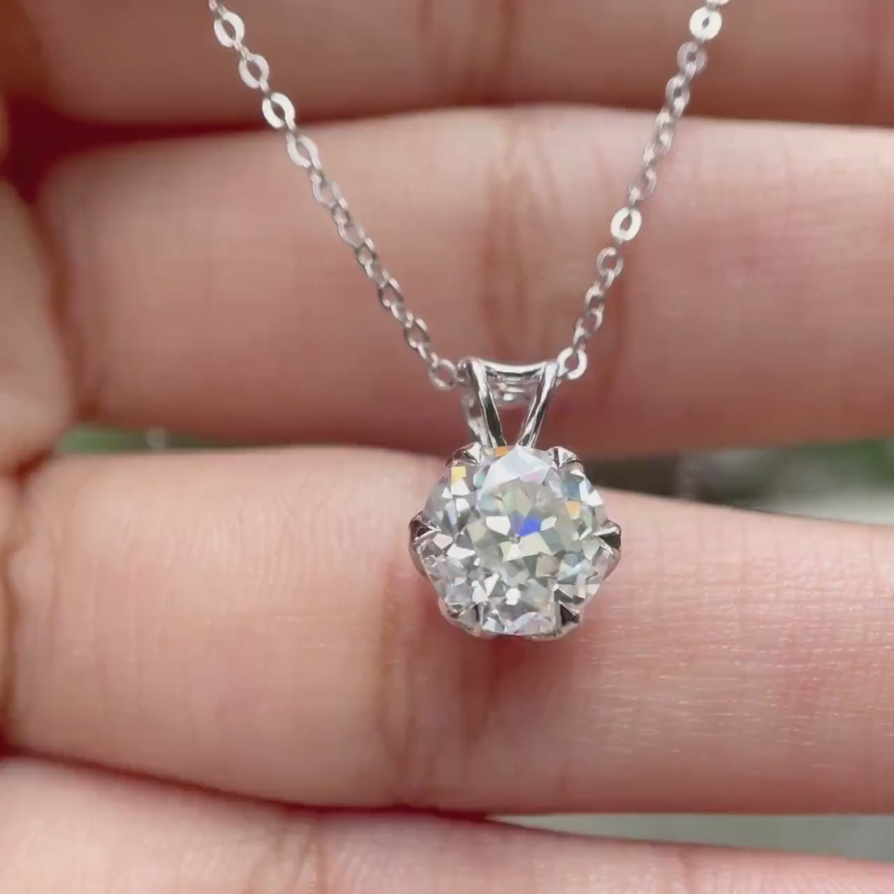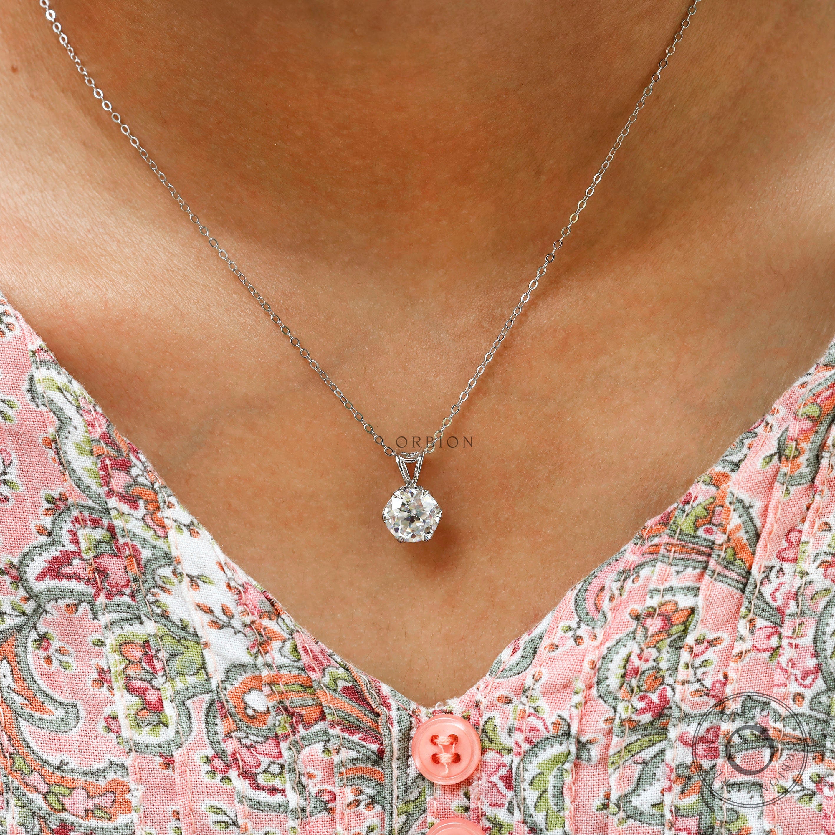 2 CT Tulip Set Old European Cut Moissanite Pendant, Solitaire Antique White Gold Pendant, Claw Prong Set Vintage Pendant, Georgian Jewelry