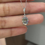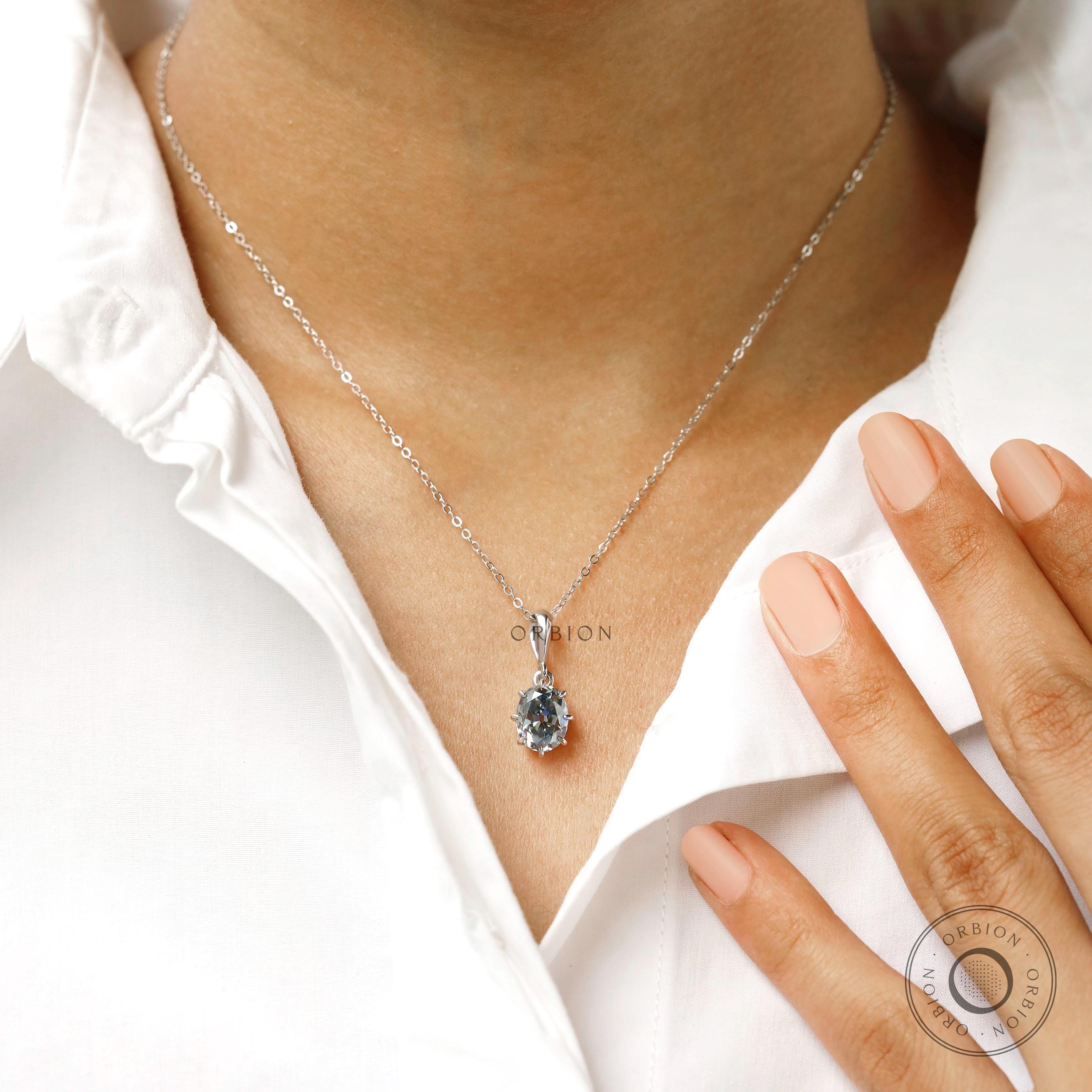 OMC Greyish Blue Moissanite Pendant, Pendant For Necklace, 10k/14k/18k Solid White Gold Pendant, Single Stone Pendant, Pendant For Chain, Statement Pendant, Unique Color Stone Pendant, Moissanite Pendant White Gold, Oval Moissanite Pendant, 2 CT Pendant 14k, Grey Stone Pendant, Perfect Fit For Chain Up To 3 MM Wide, Best Gift For Anniversary.