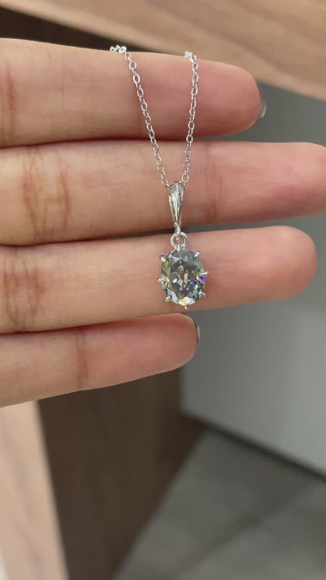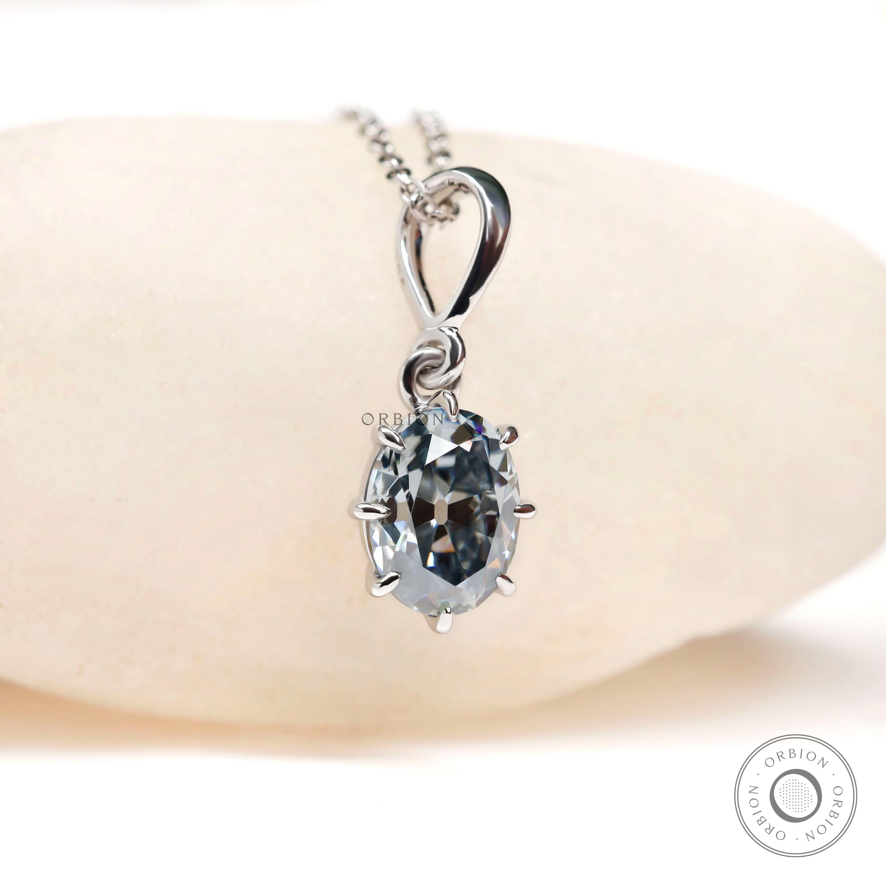 2ct Old Mine Cut Oval Greyish Blue Moissanite Pendant For Her, Bathtub Style Moderns Pendant, Grey Moissanite Pendant, Everyday/ Daily Wear