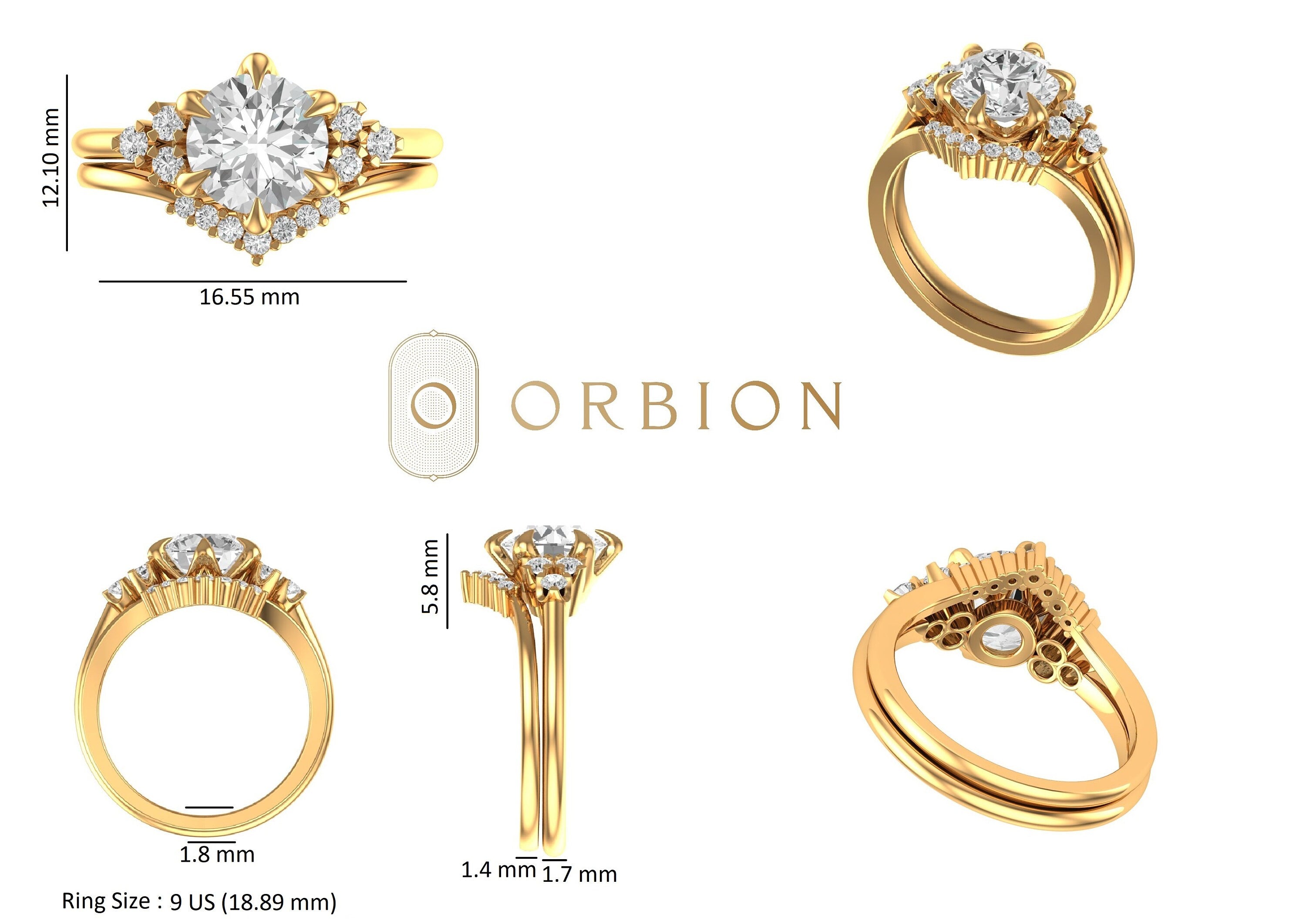 2Ct Solitaire Round Cut DEF Moissanite Ring Set With Matching Band, 10K/14K/18K Solid Gold Engagement Rings, Promise Rings, Wedding Ring Set