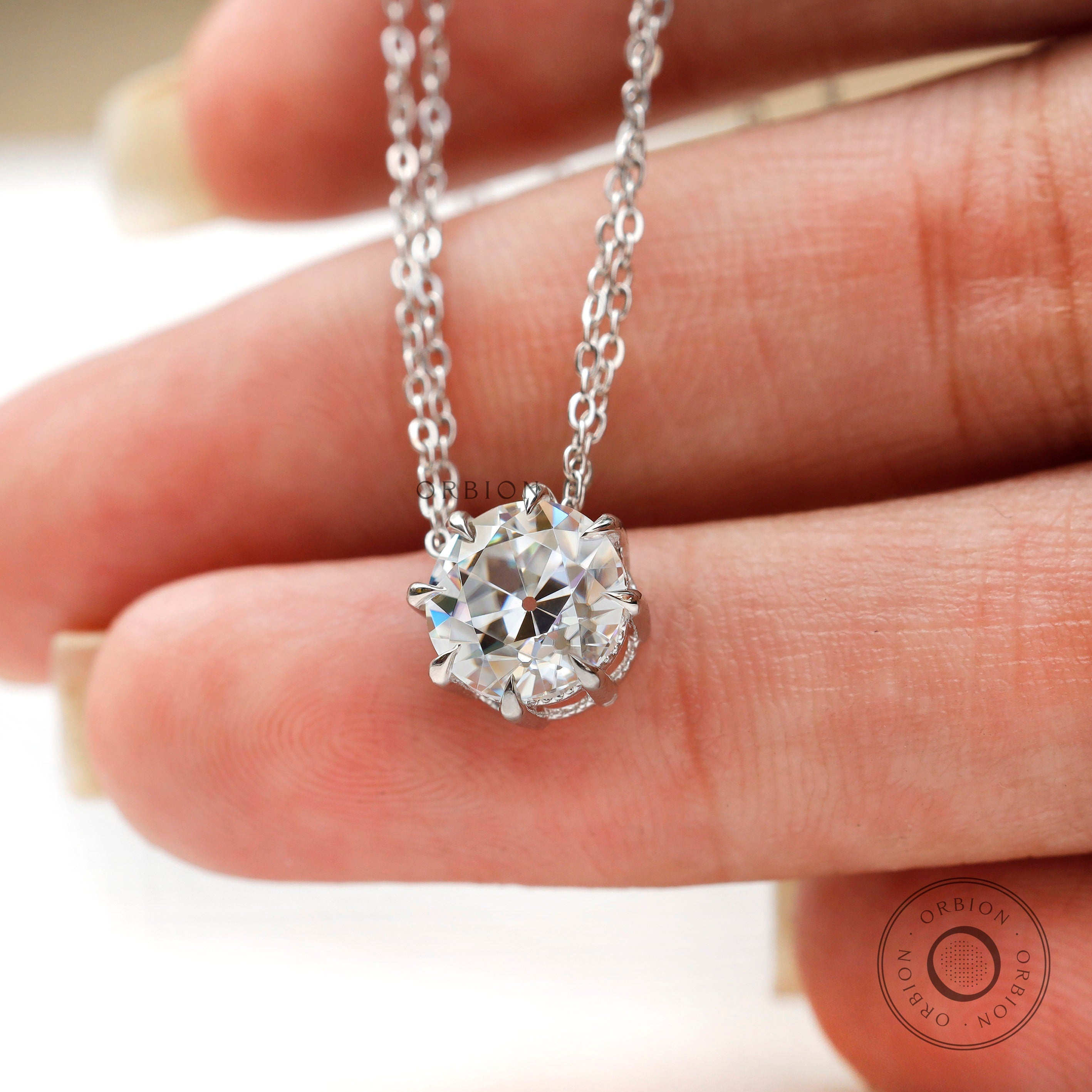 Moissanite Pendant, 2 CT DEF Round OEC Moissanite Wedding Pendant, 10K Solid White Gold Charm Pendant, Basket Set Solitaire Pendant, Old Cut Diamond Pendant, Round Solitaire Pendant, Necklace Pendant, Vintage Style Pendant, Custom Pendant, Solid Gold Pendant