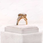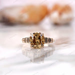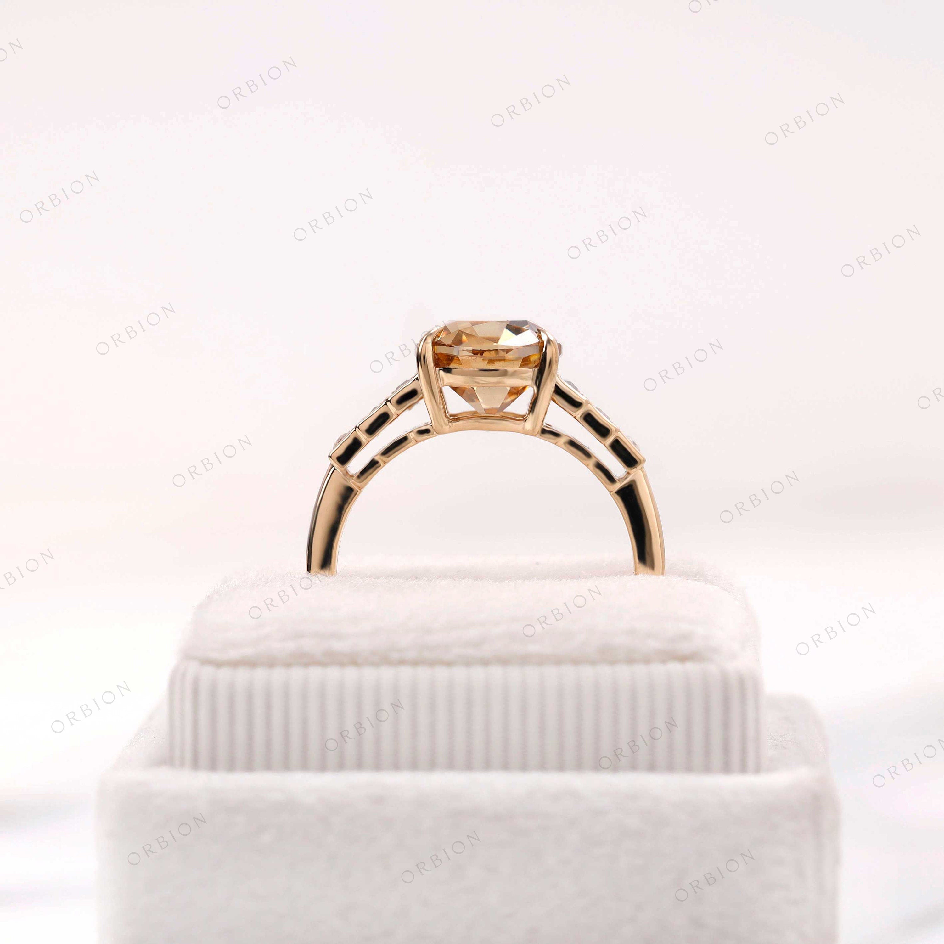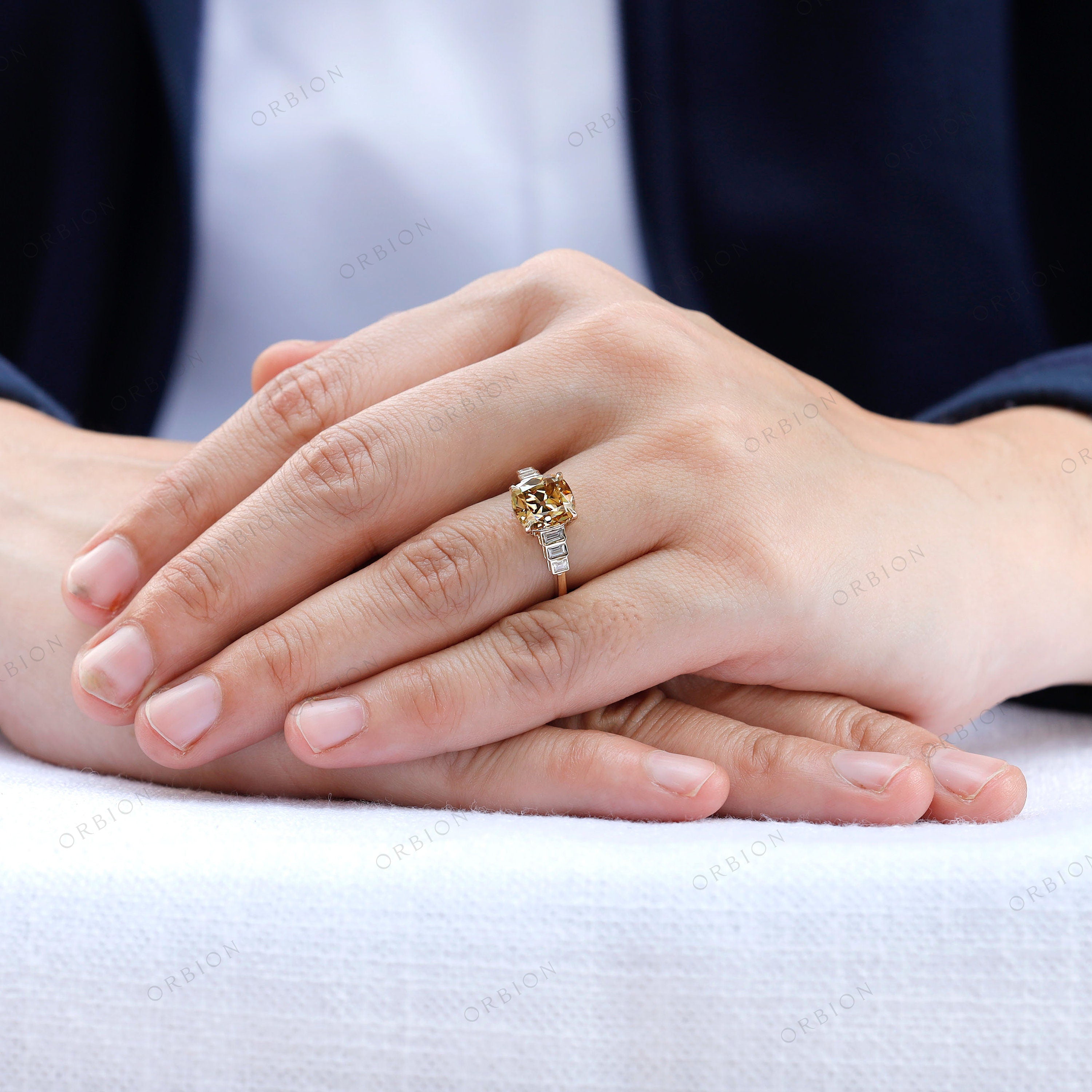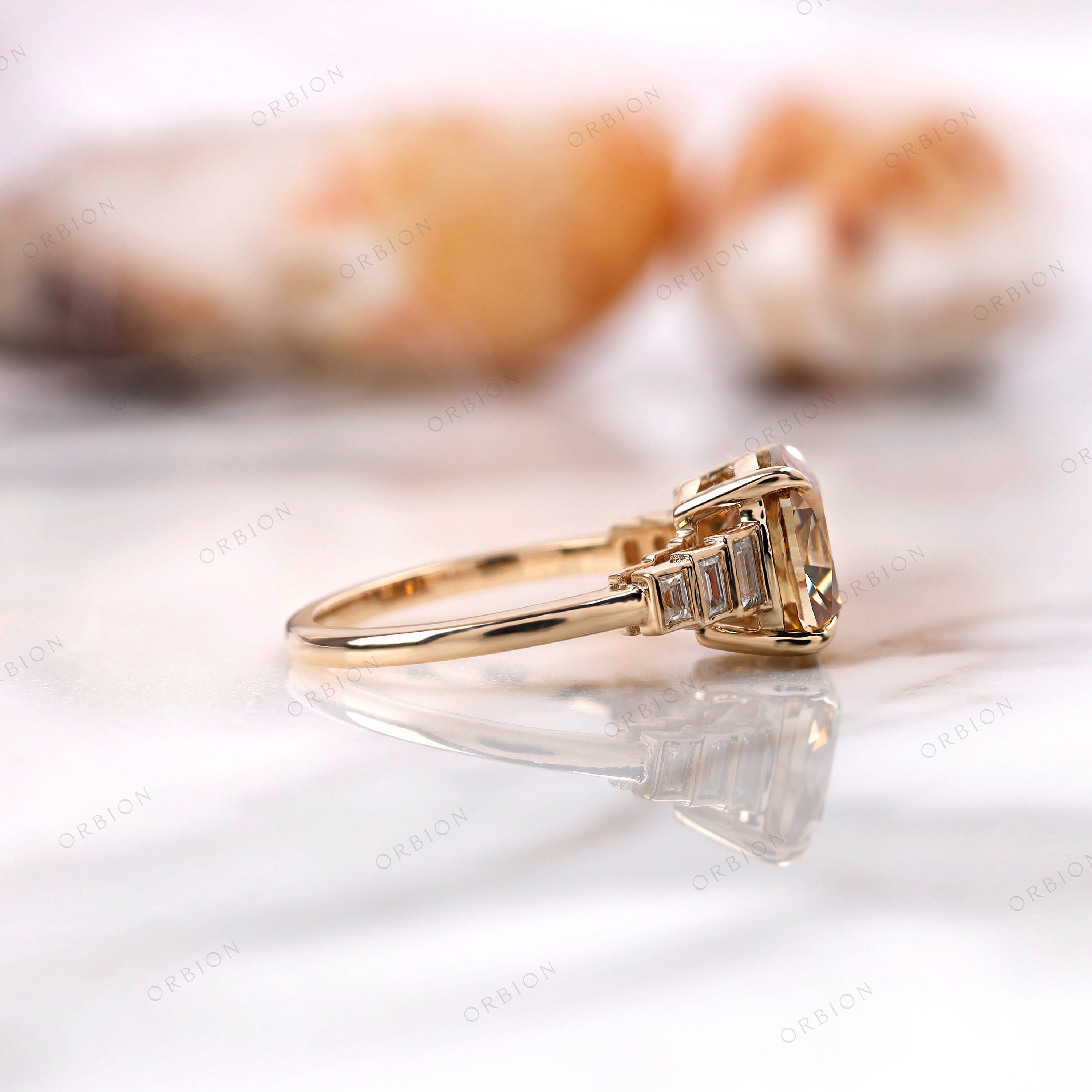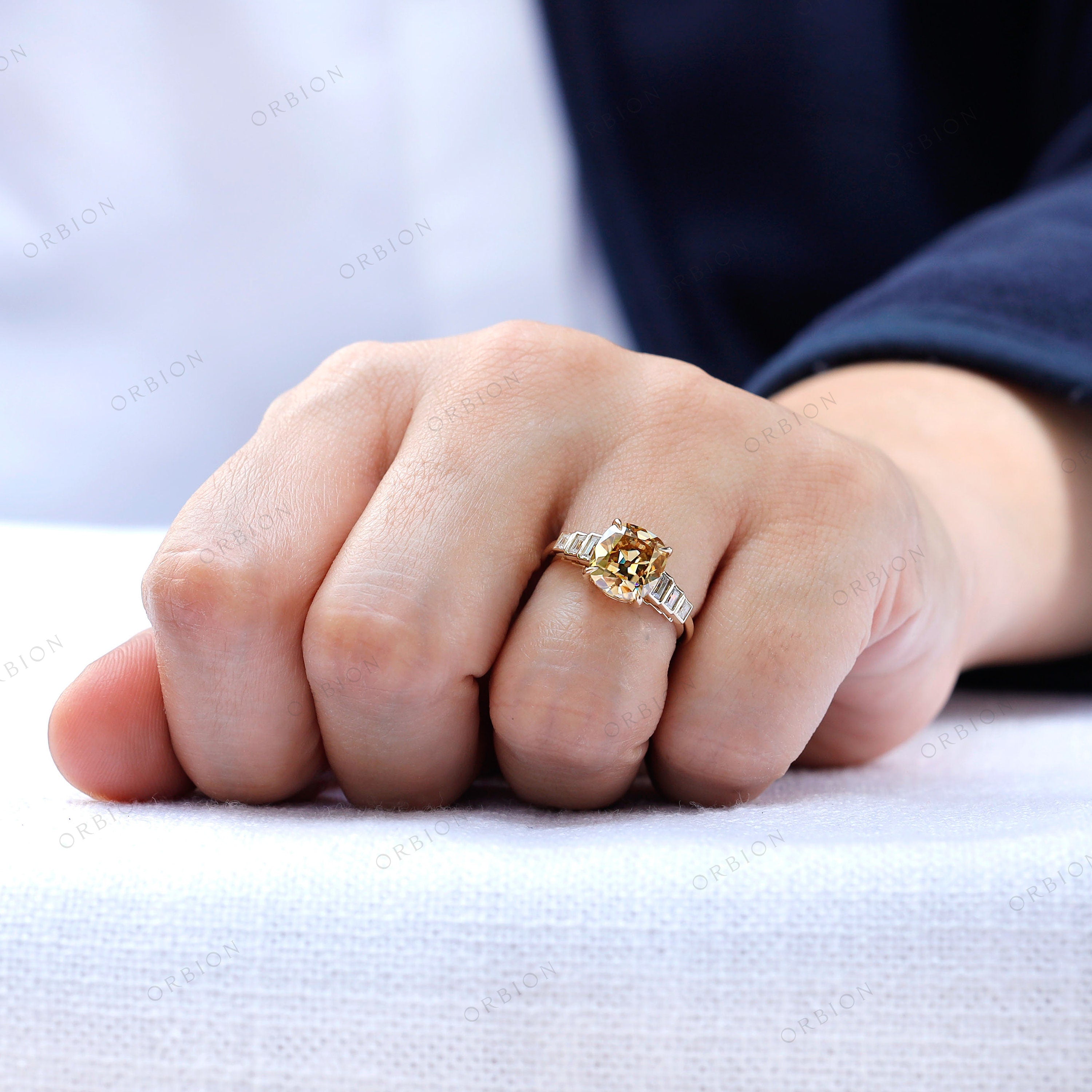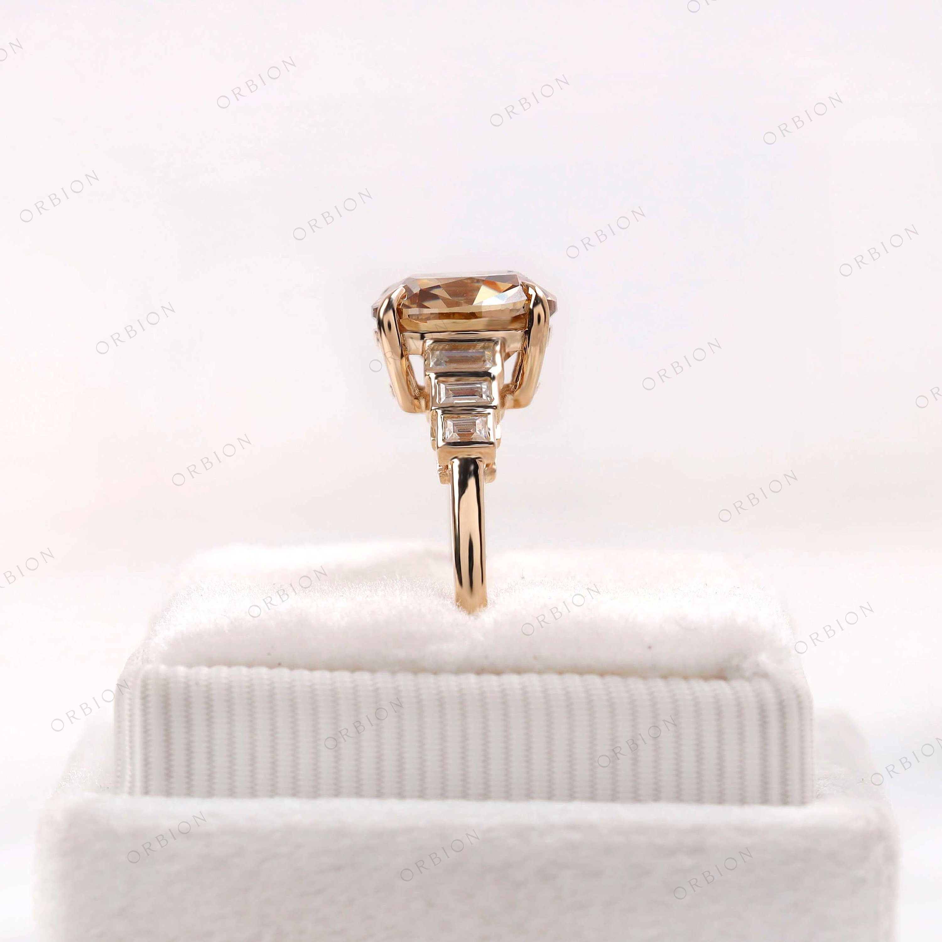 Elongated Cushion Dark Champagne Moissanite Engagement Ring With Side Baguette Stones 14k Yellow Gold Color Moissanite Wedding Bridal Ring