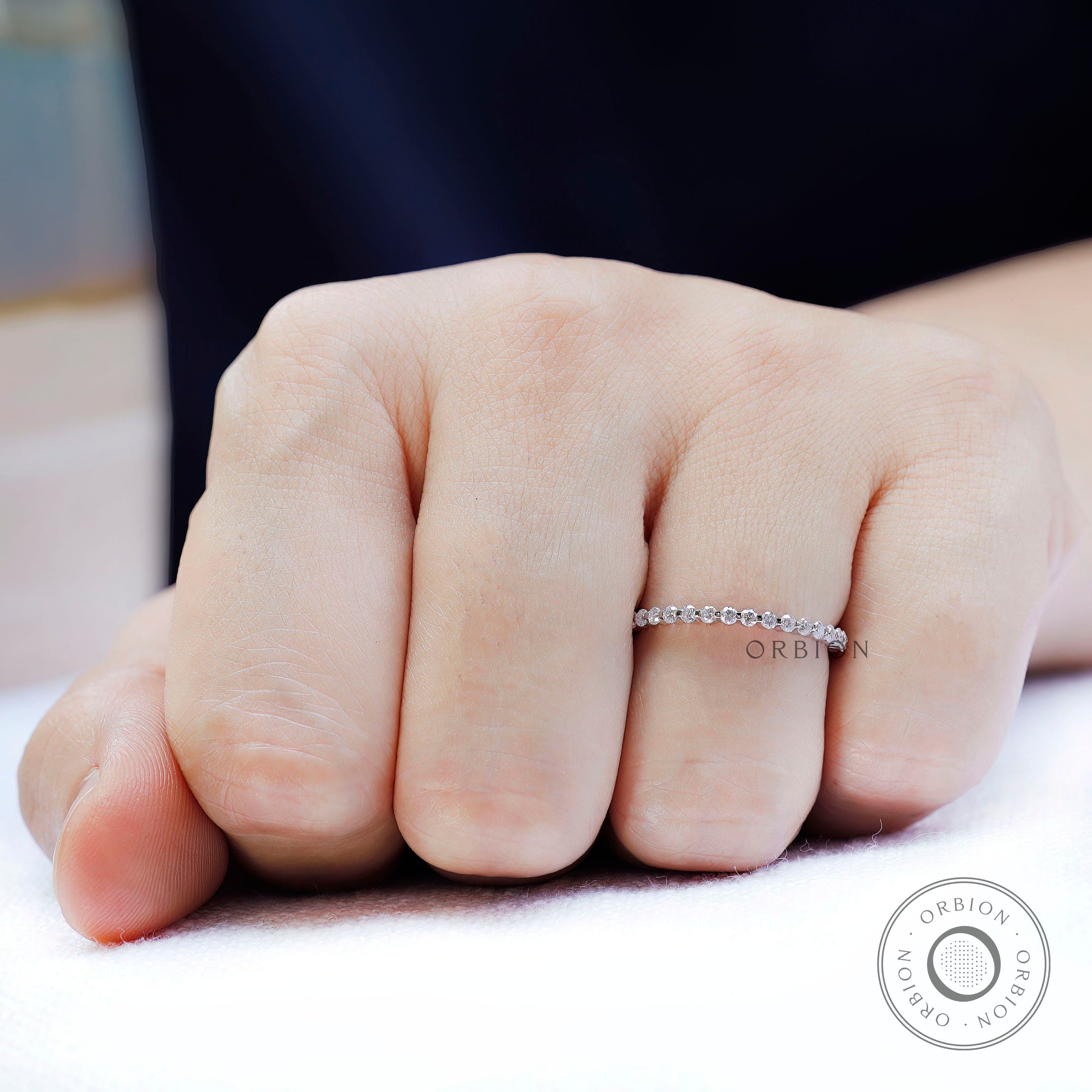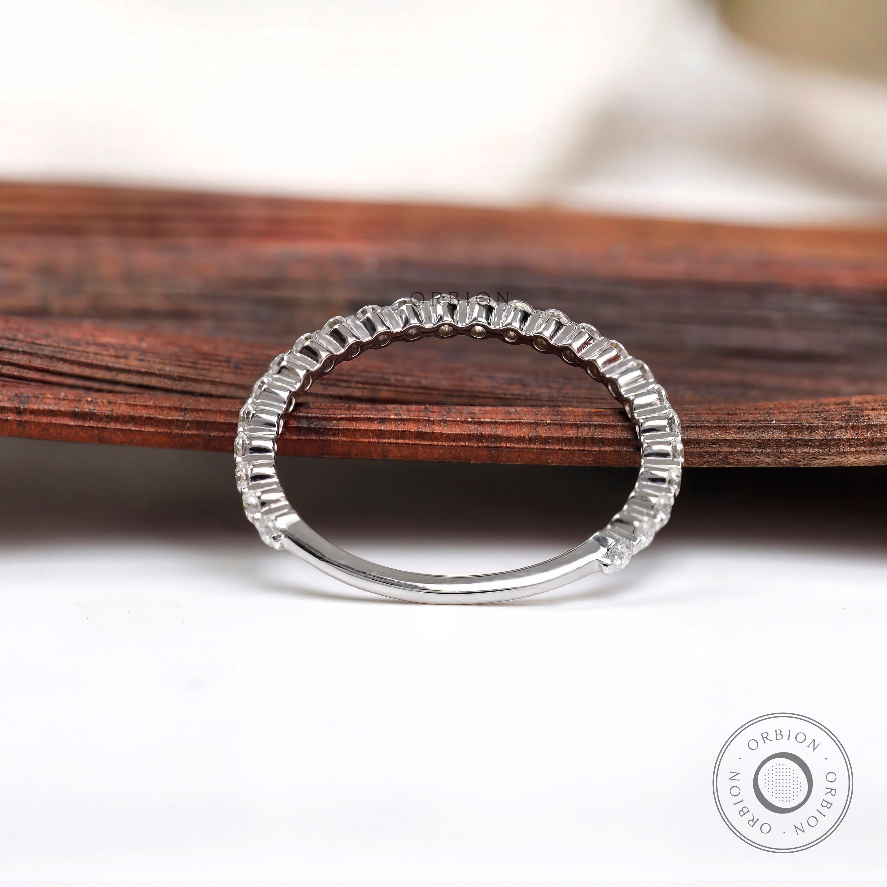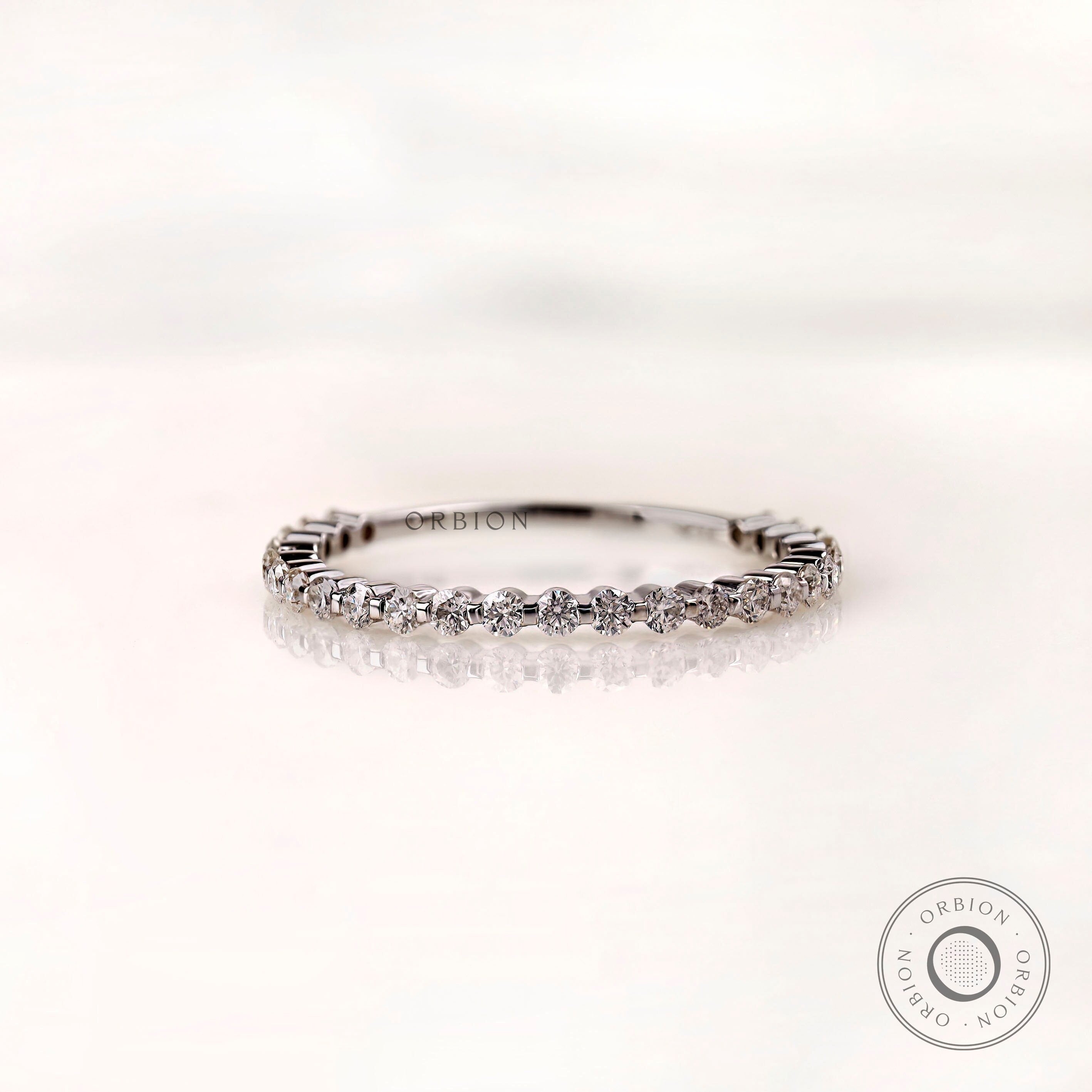 3/4 Eternity Moissanite Diamond Bubble Ring/ 1.6mm Women Floating Diamond Shared Prong Band/ Unique Wedding Diamond Stacking/ Gift For Her
